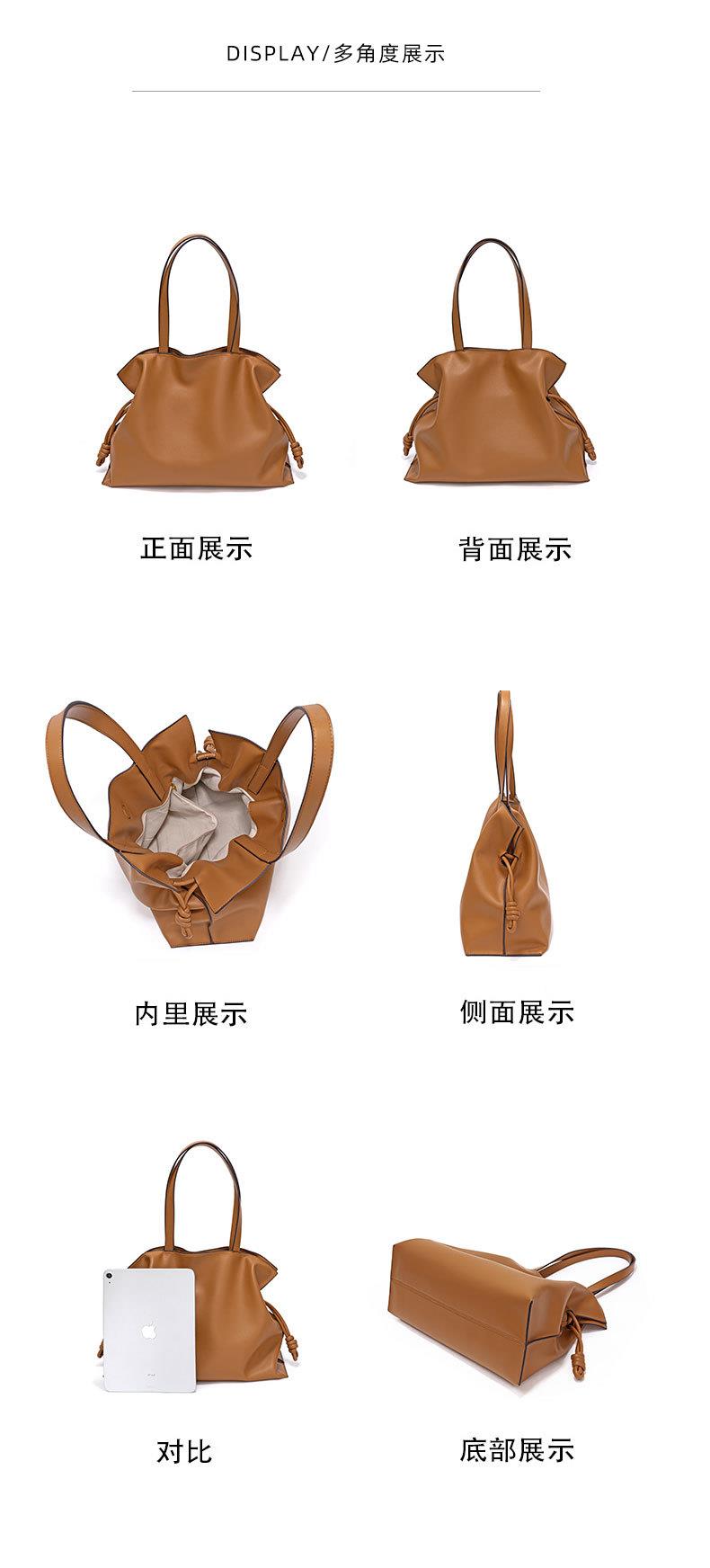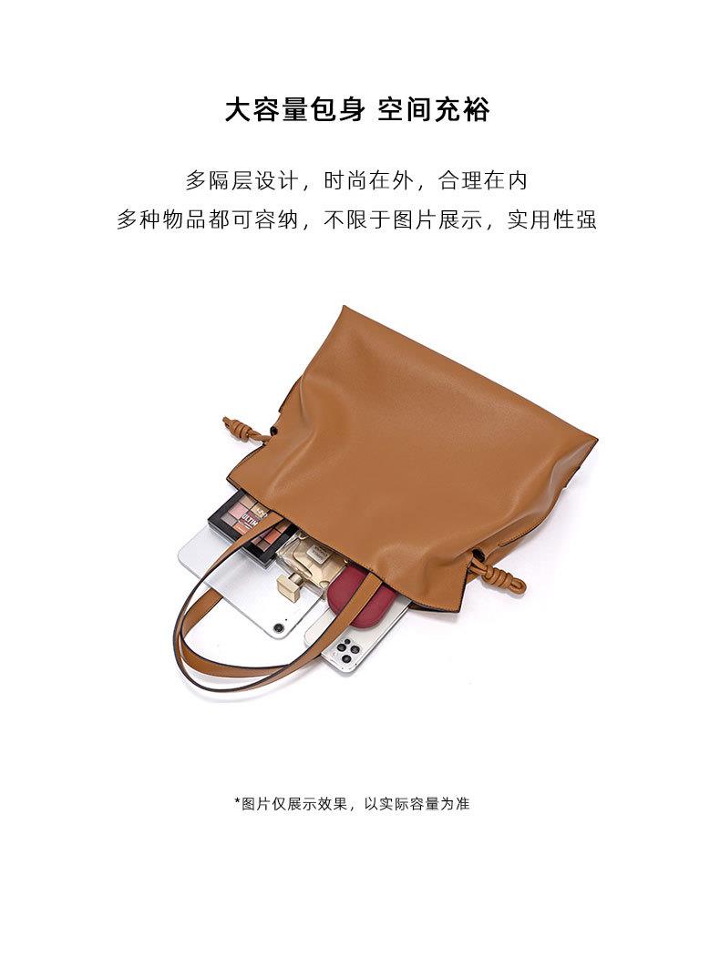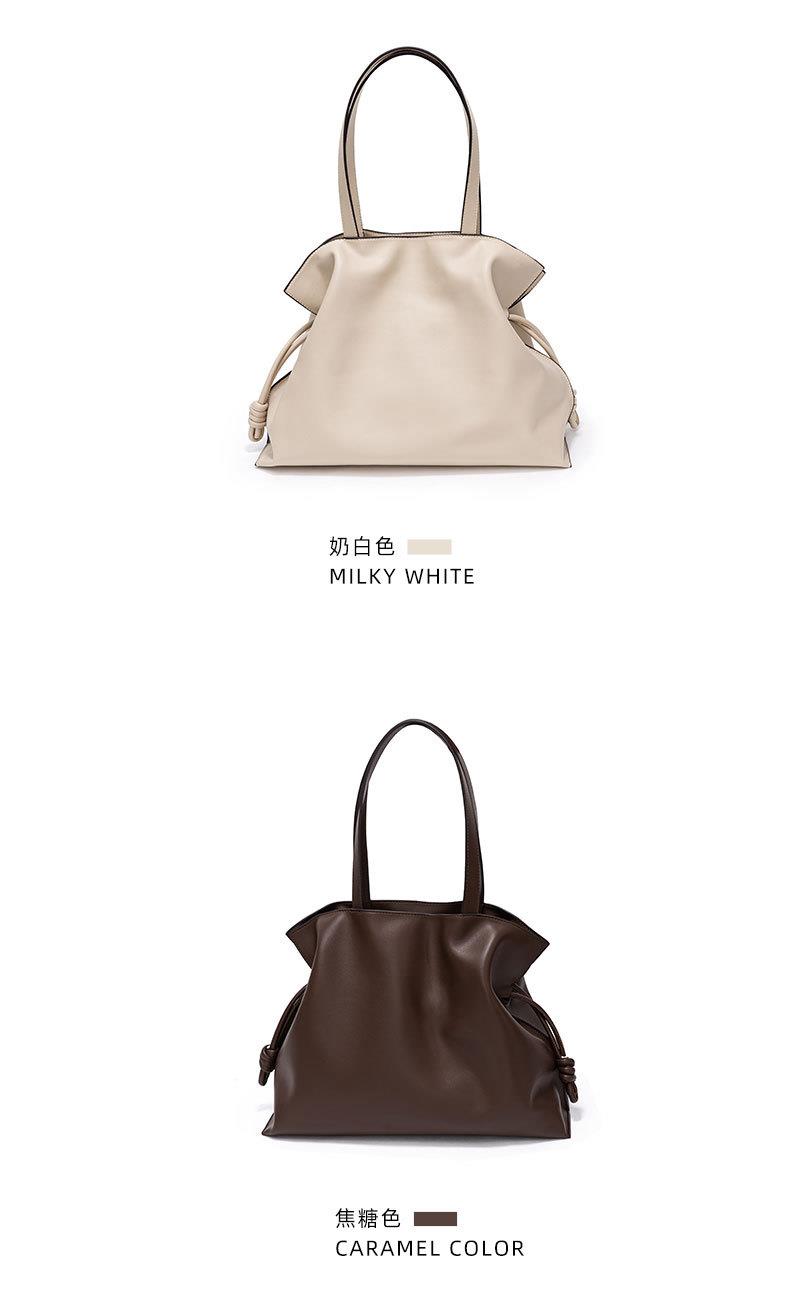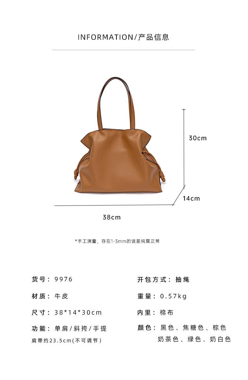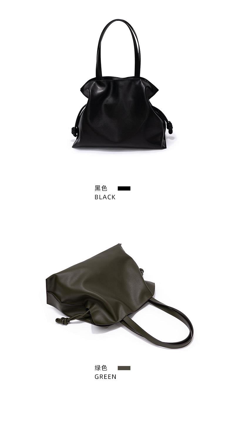 简约新款韩系时尚牛皮包包小众真皮女包褶皱包单肩包抽绳托特包大