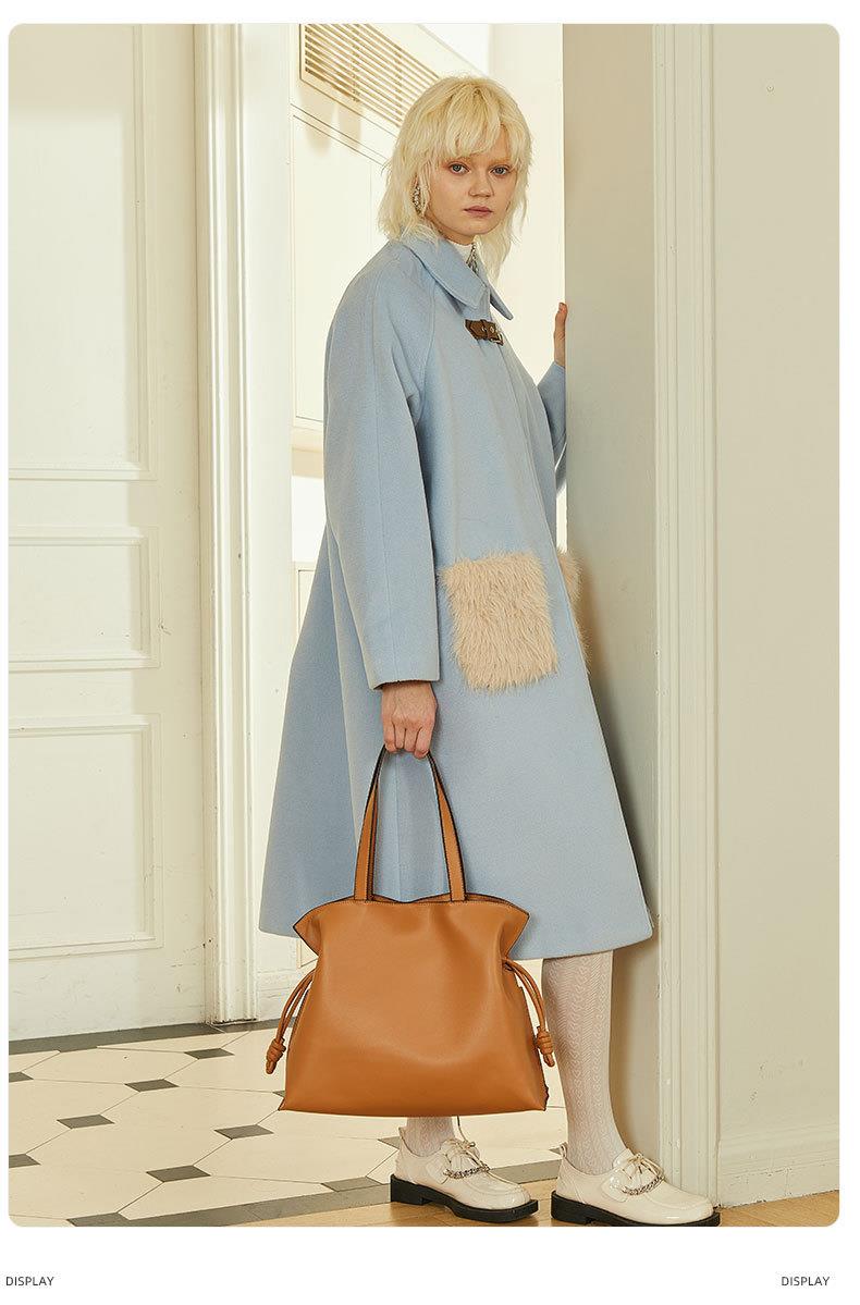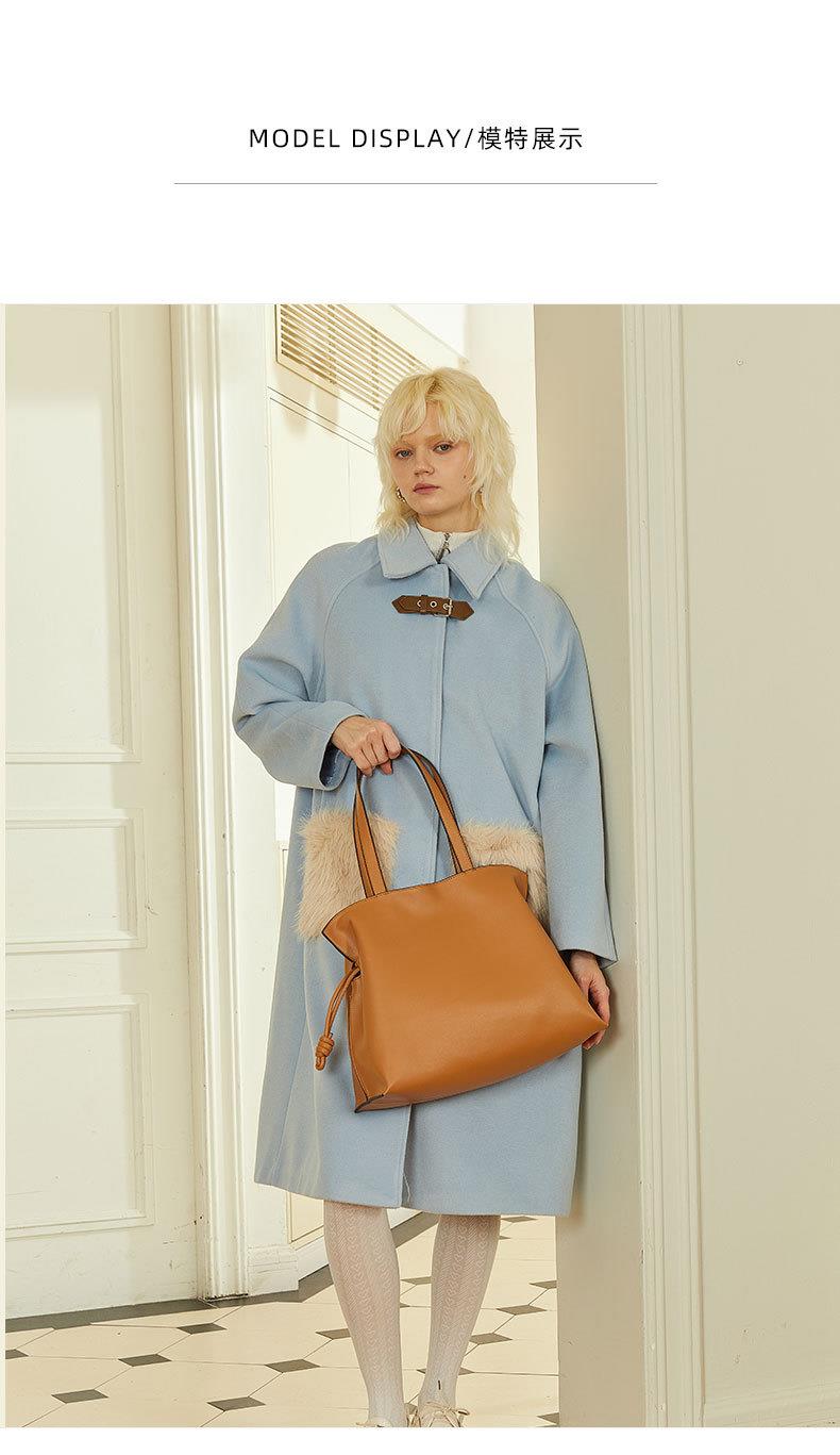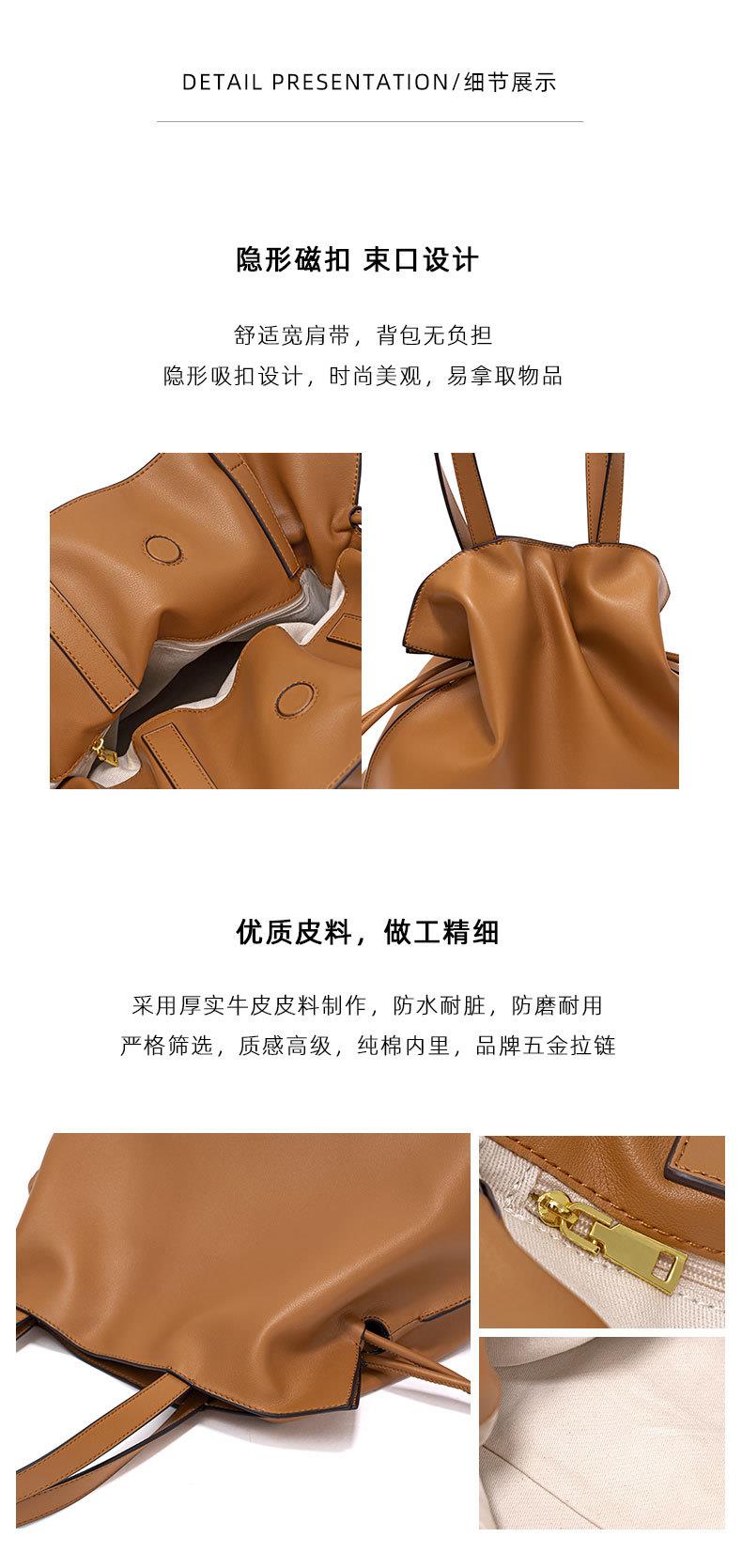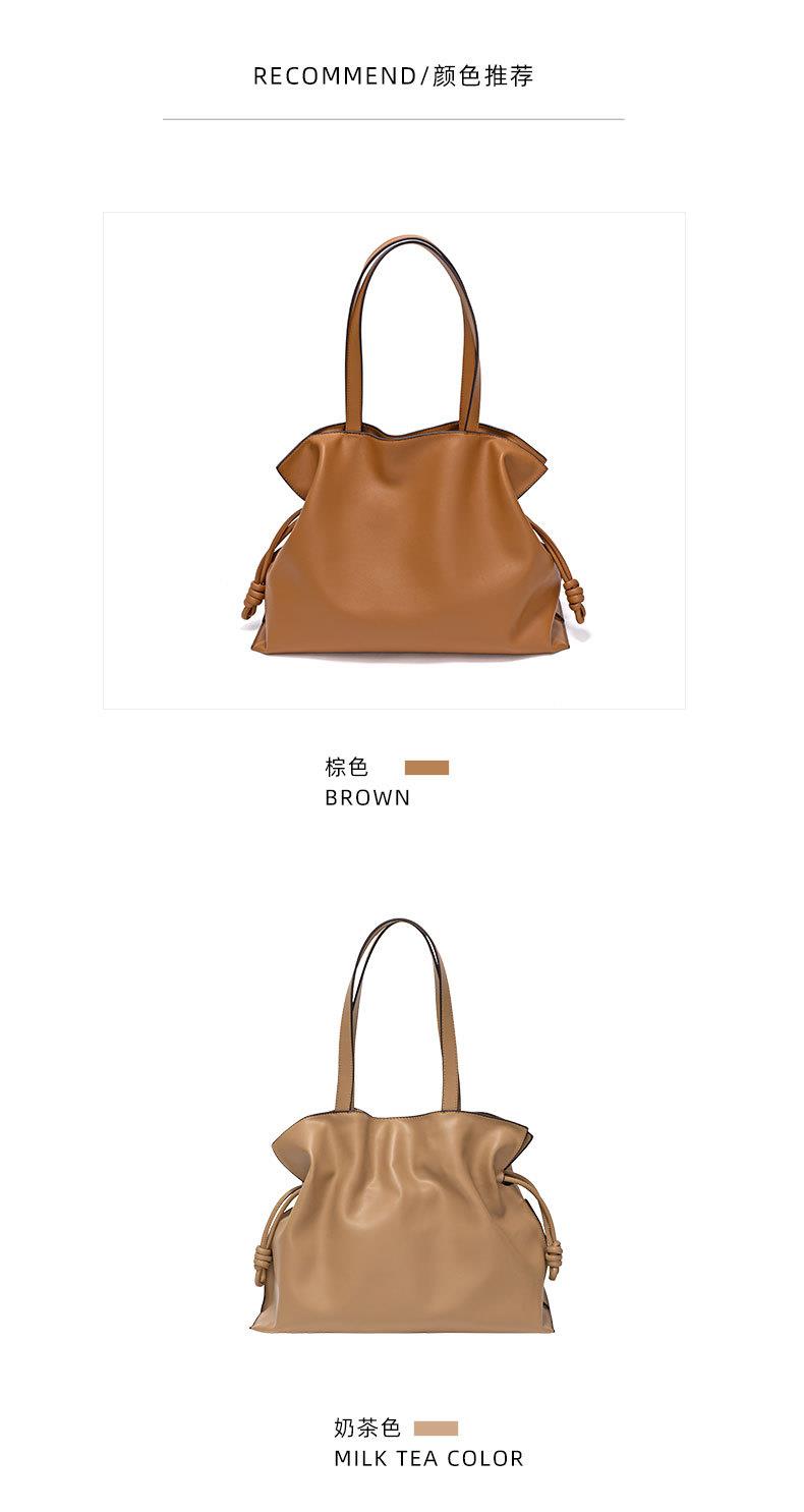 简约新款韩系时尚牛皮包包小众真皮女包褶皱包单肩包抽绳托特包大