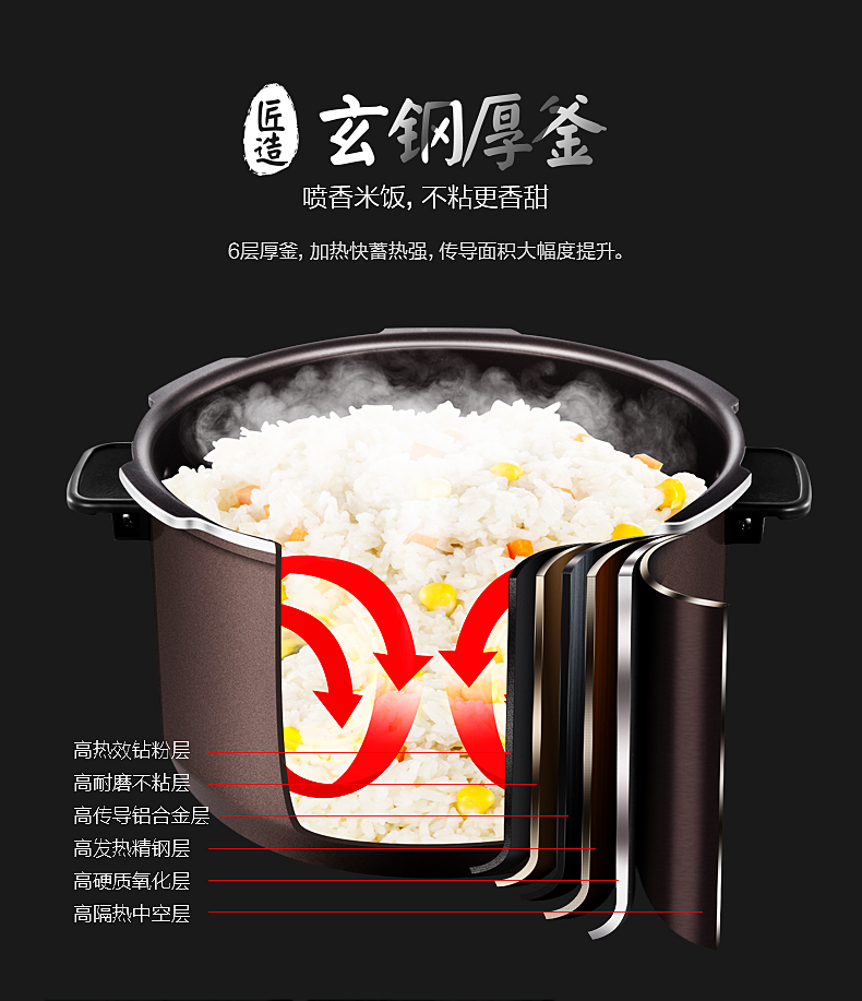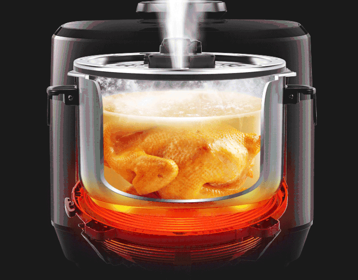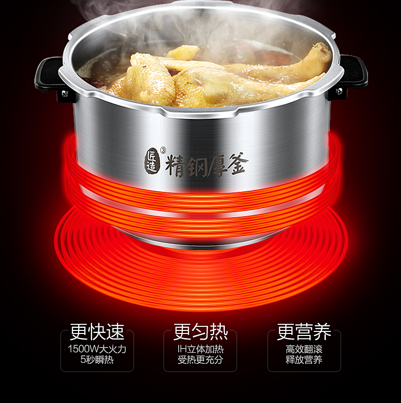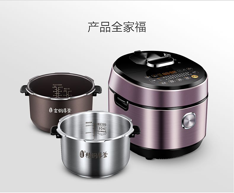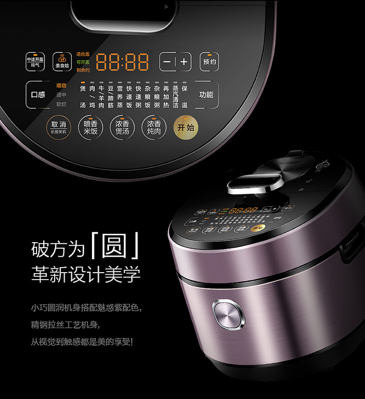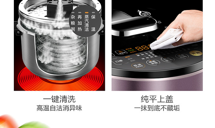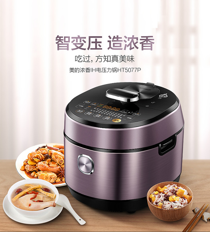 美的(507786)电压力锅 HT5077P IH电磁加热 5升5L 可中途加菜 一锅双胆 钢胆 保温预约 高压锅