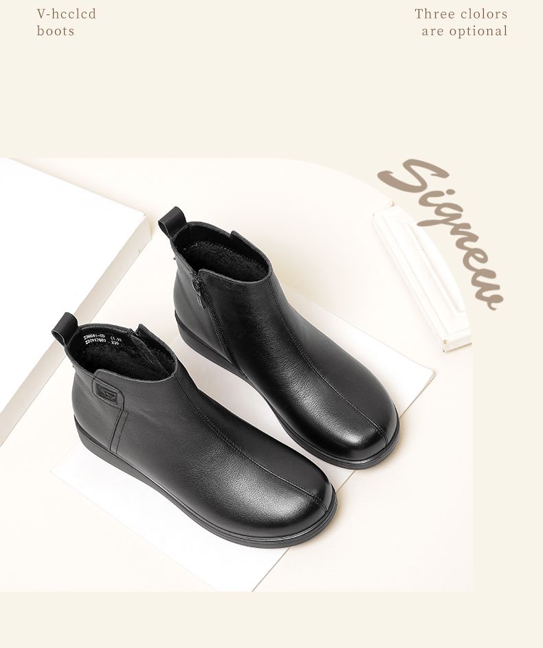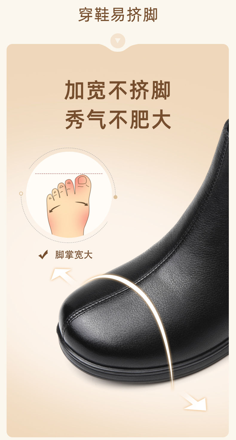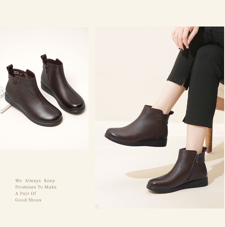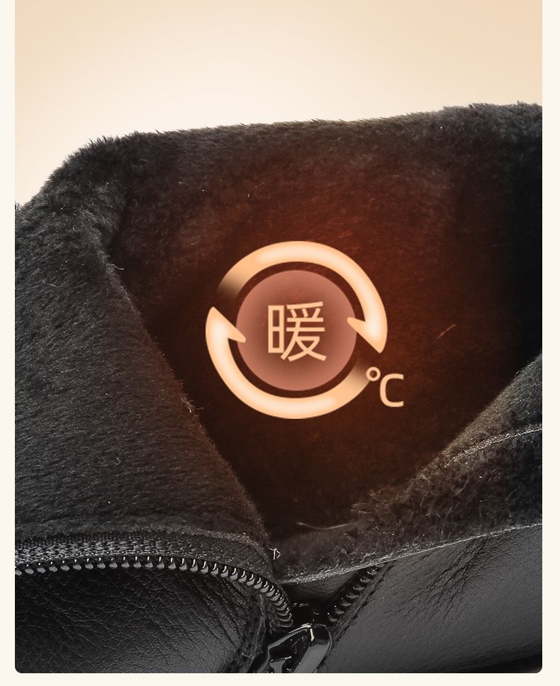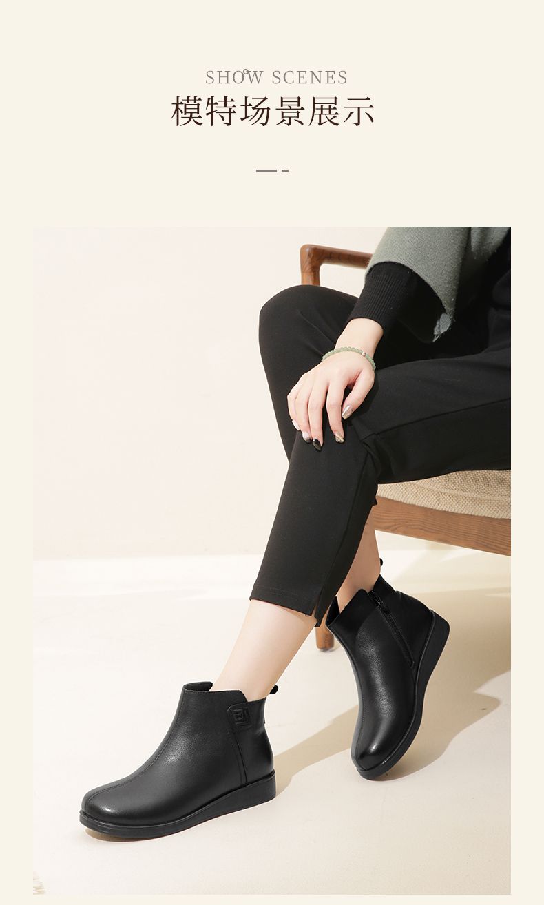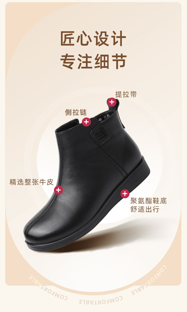 信诺真皮加绒妈妈鞋秋冬季中老年皮鞋女平底防滑软底老人奶奶棉鞋23M681-5D
