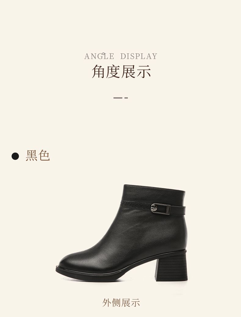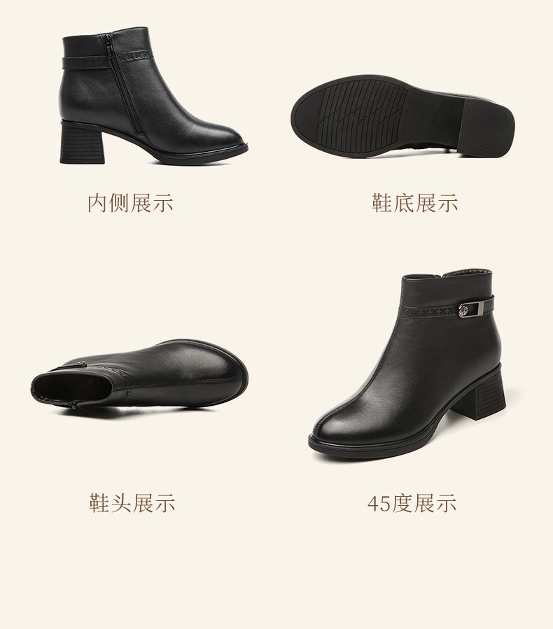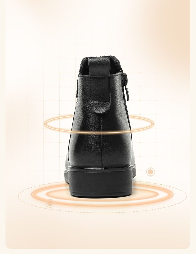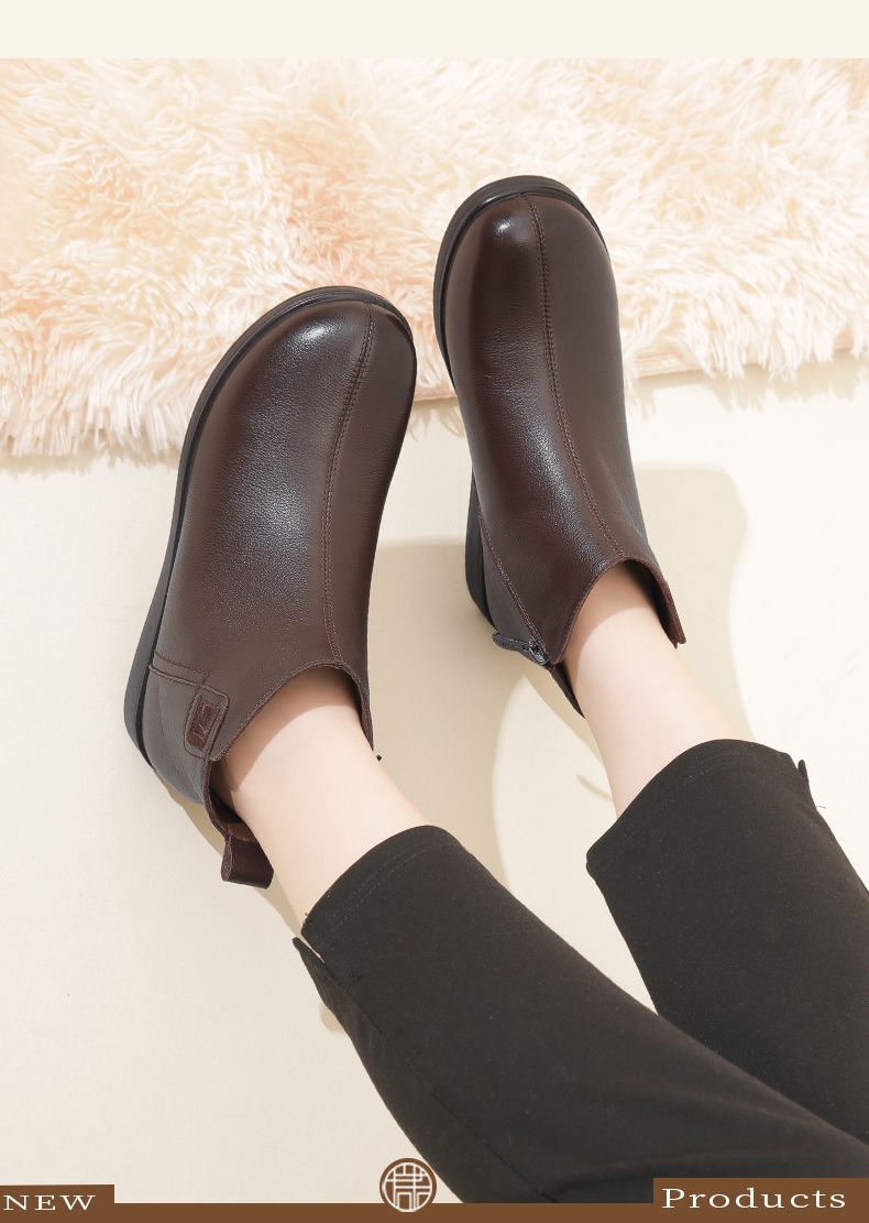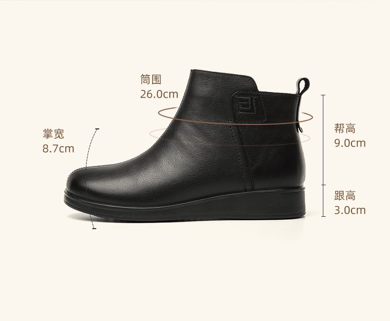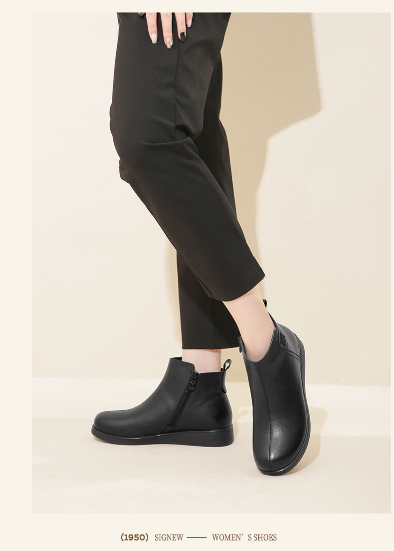信诺真皮加绒妈妈鞋秋冬季中老年皮鞋女平底防滑软底老人奶奶棉鞋23M681-5D