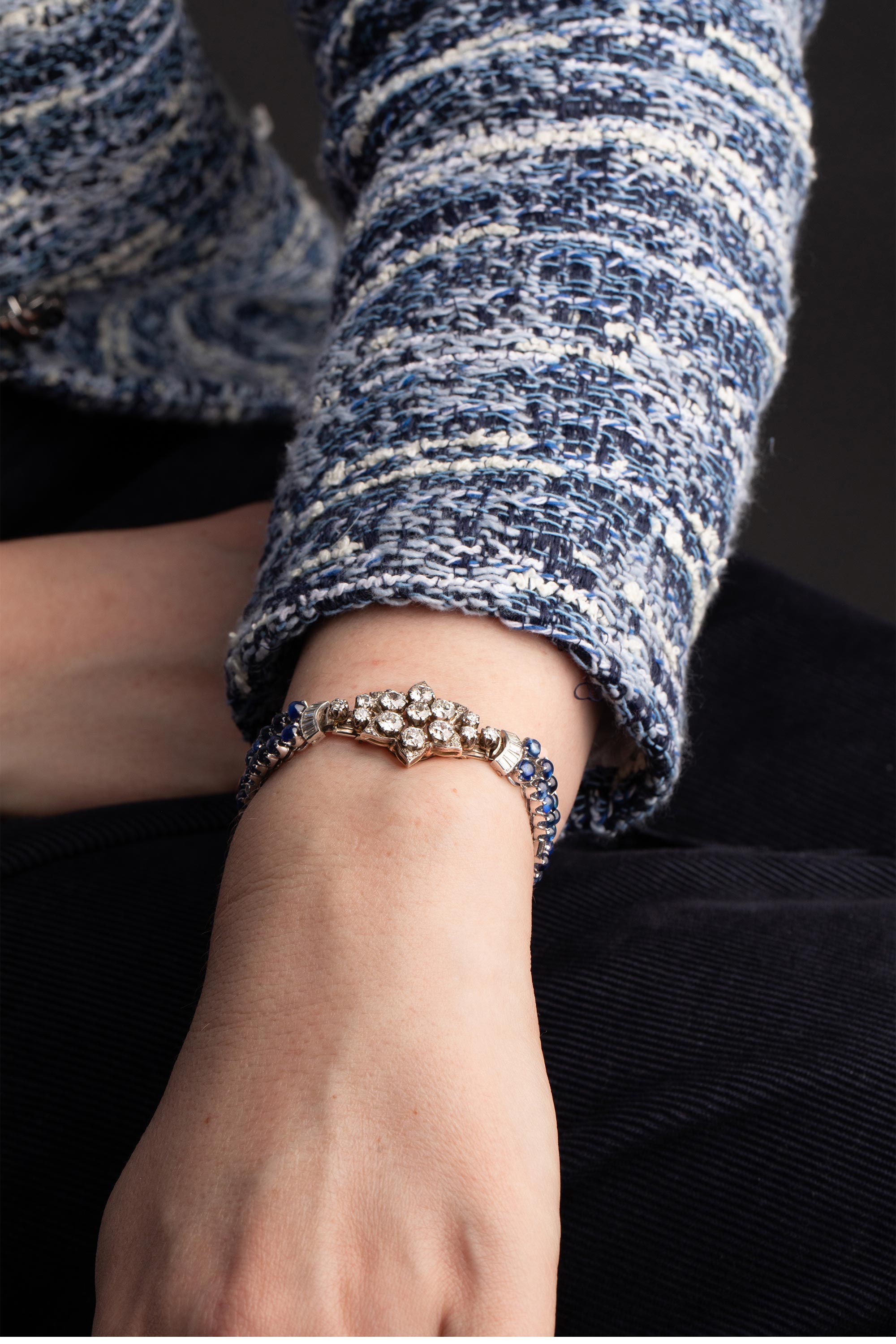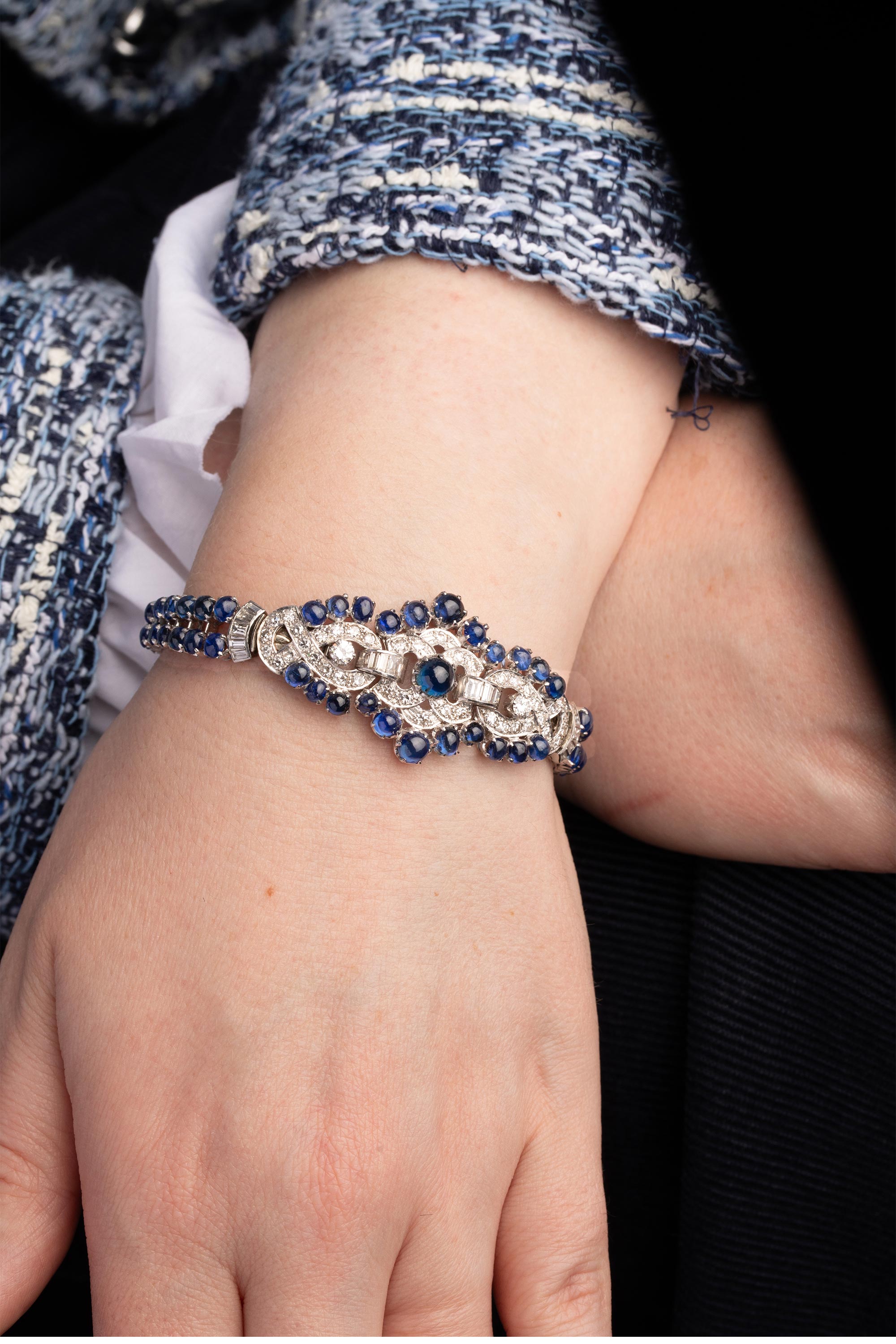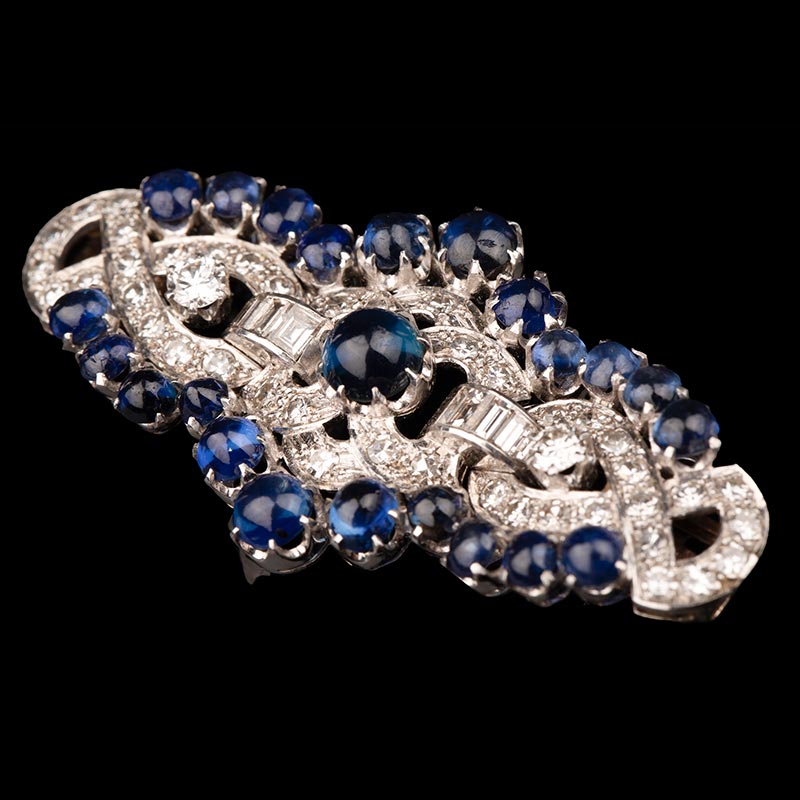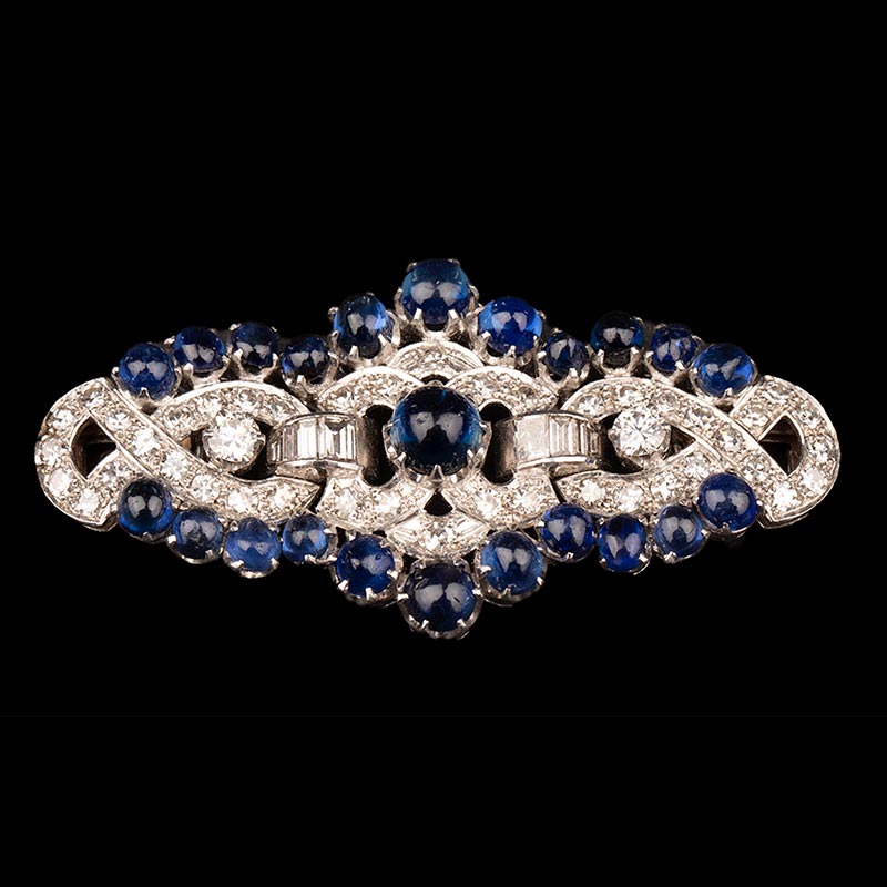 1940-1950年代澳大利亚出品珠串花缎造型铂金白金镶嵌蓝宝石及钻石可替换式手链套件