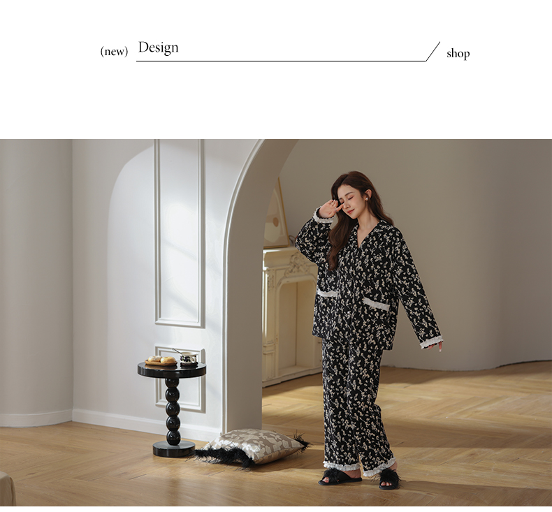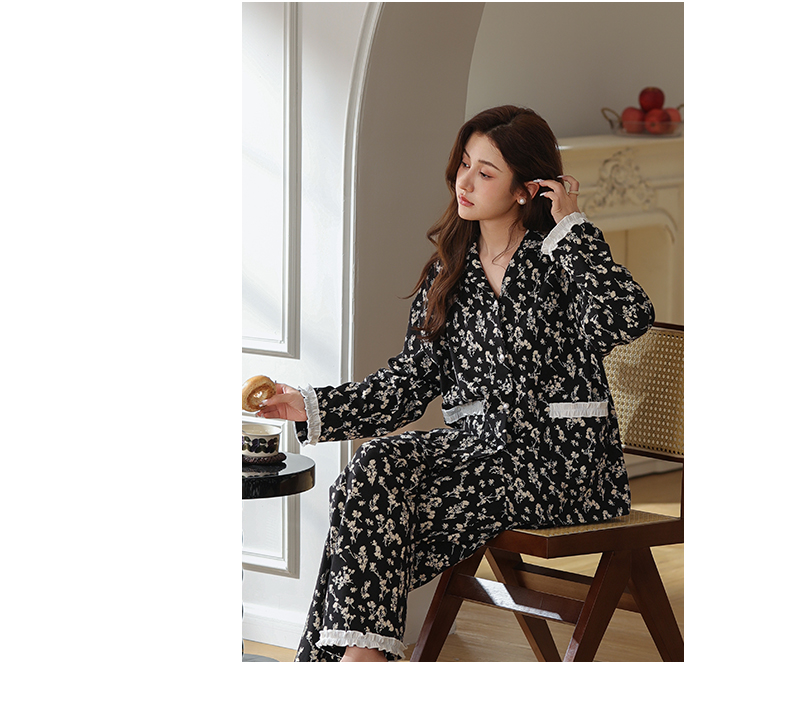 【可人儿&繁花似锦】春秋季纯棉家居服女士印花长袖全棉睡衣套装