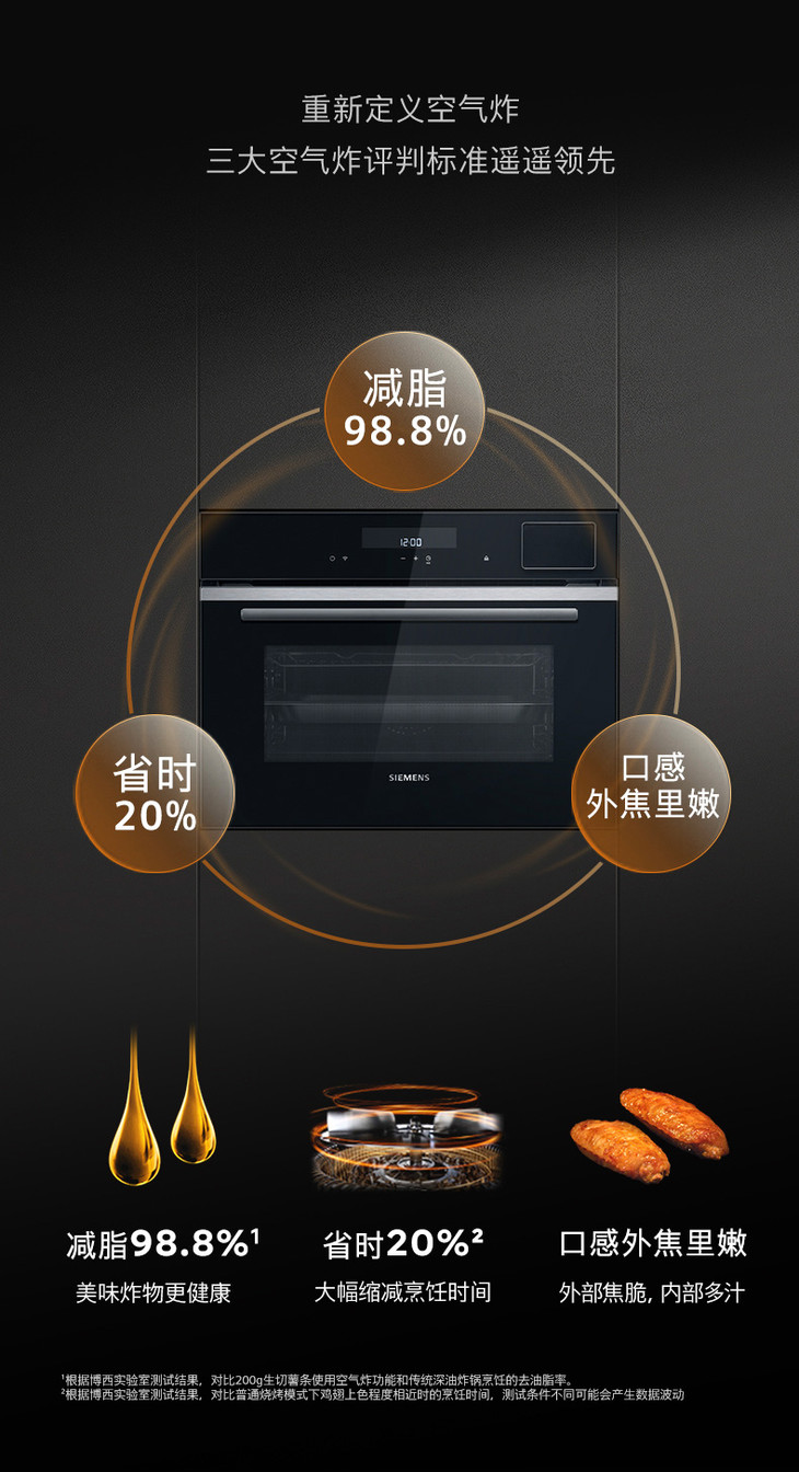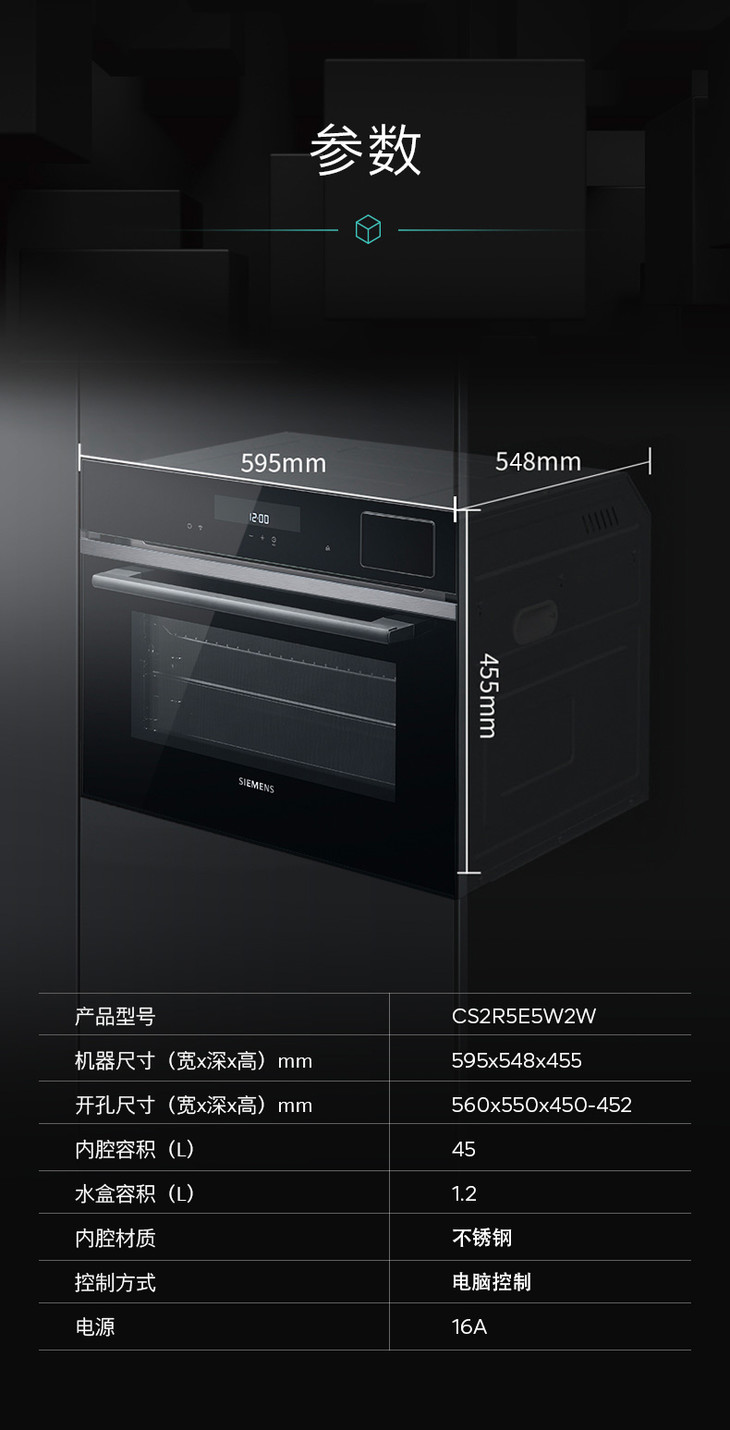 西门子(510273 )嵌入式五合一蒸烤一体机智能家用蒸烤一体机 45L 大容量CS2R5E5W2W