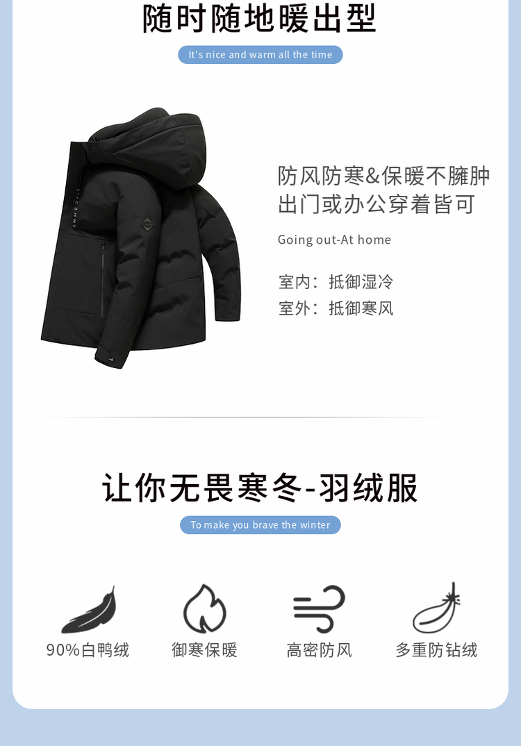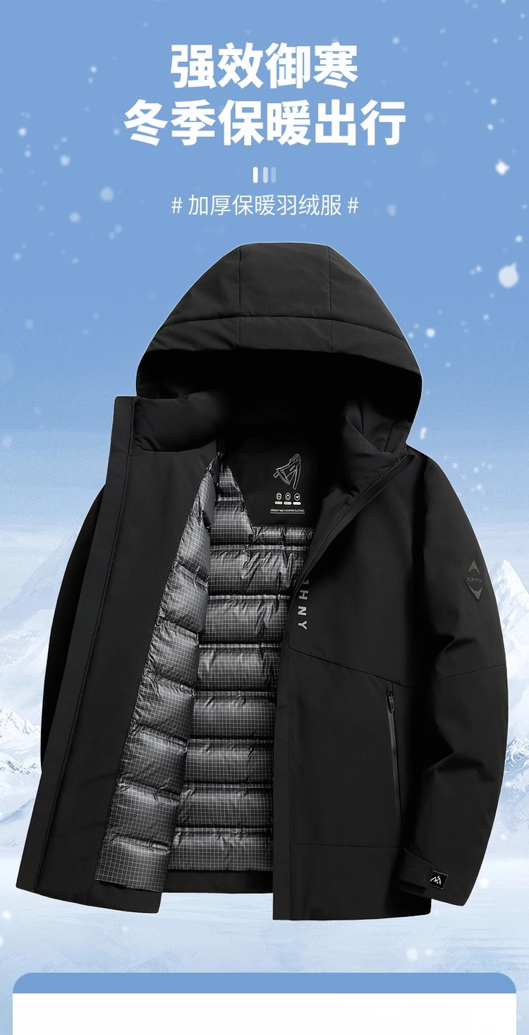 圣得西新国标羽绒服男冬季高充绒连帽加厚御寒保暖外套上衣
