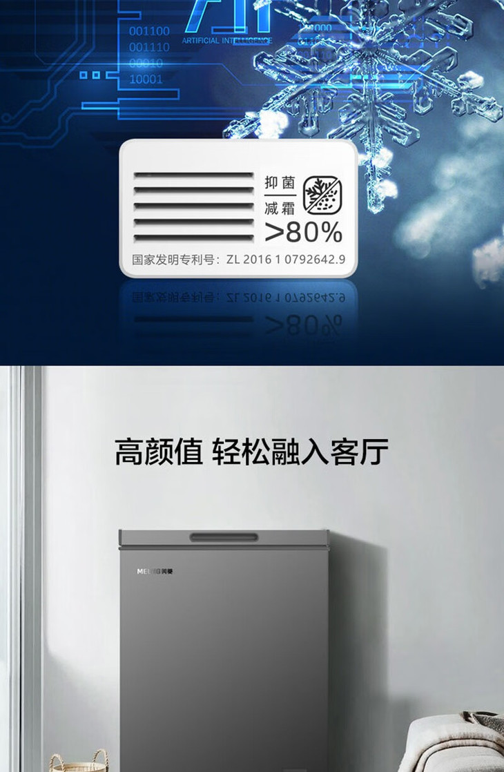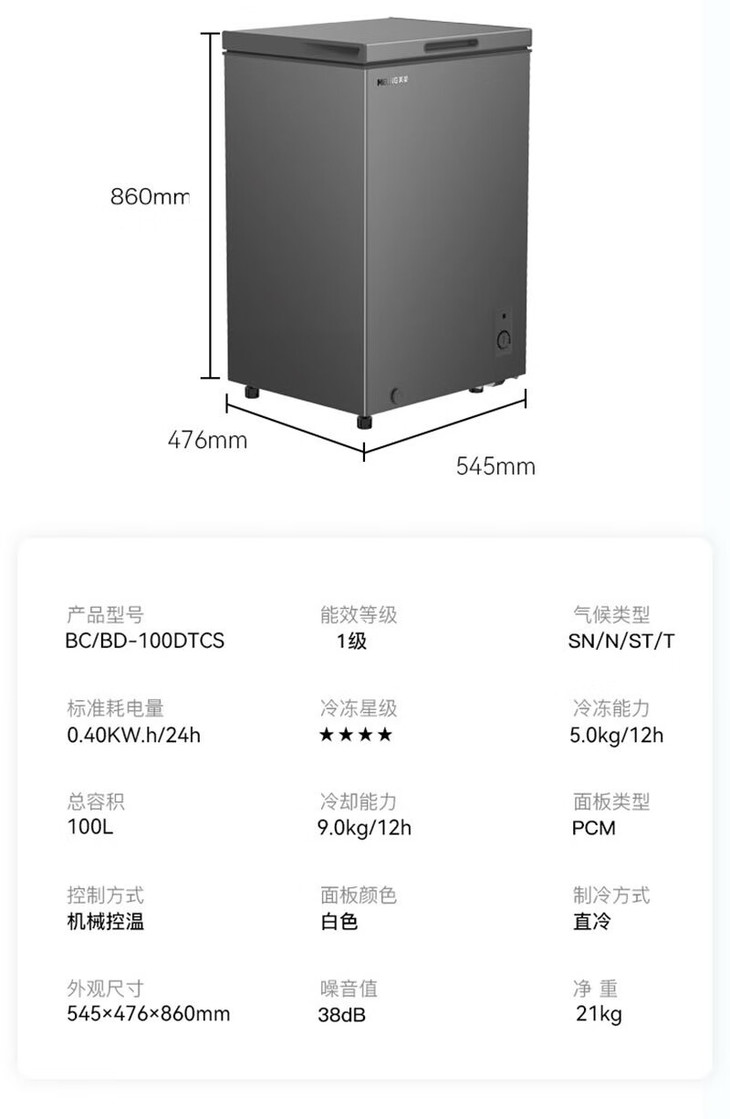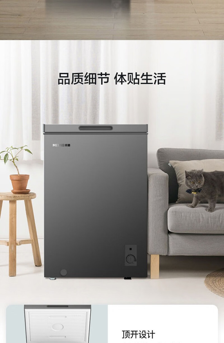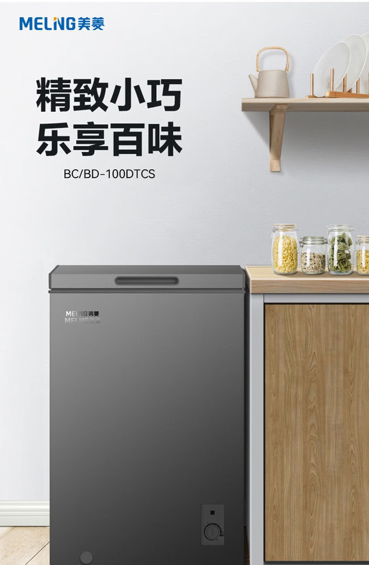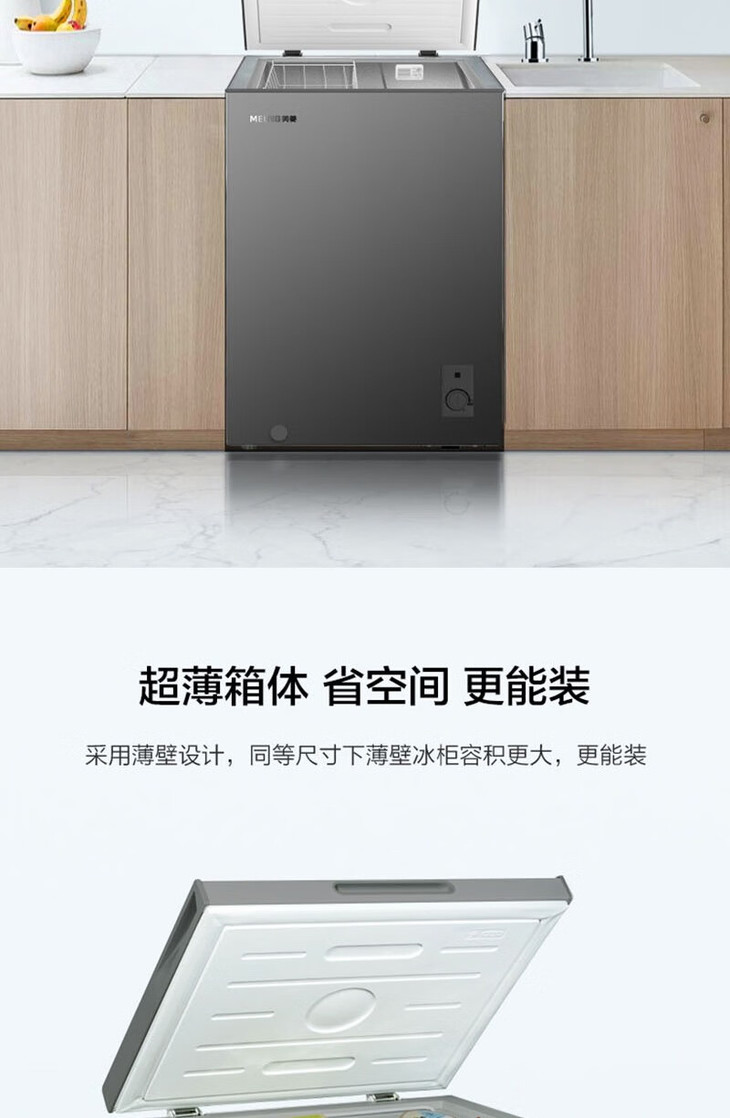 美菱(MeiLing)(202733 )100升冷柜冷藏冷冻单温转换 薄壁嵌入一级能效断电保护节能冰柜 BC/BD-100DTCS