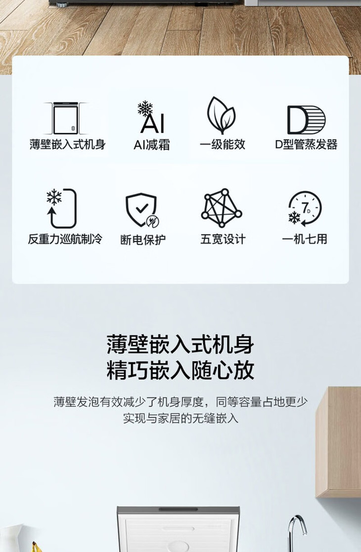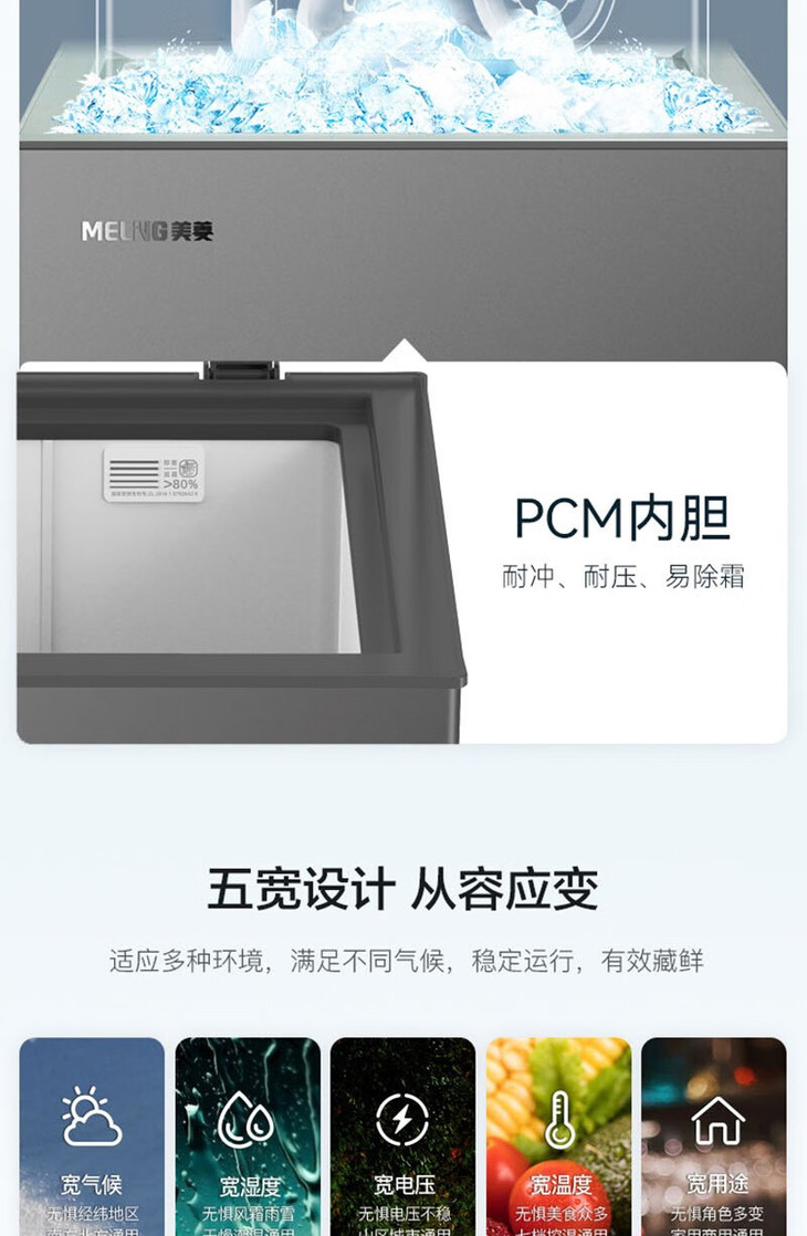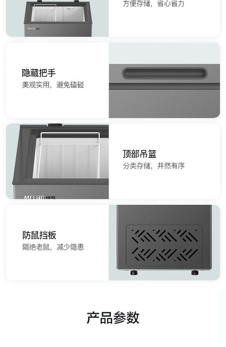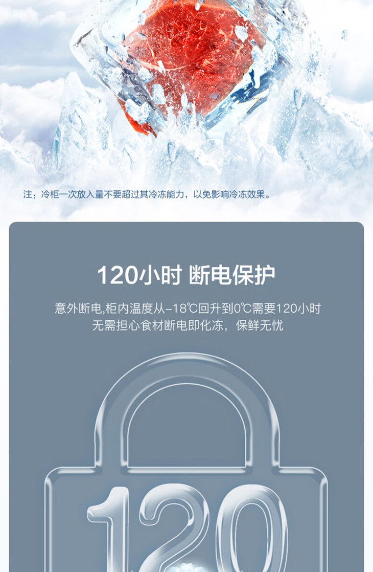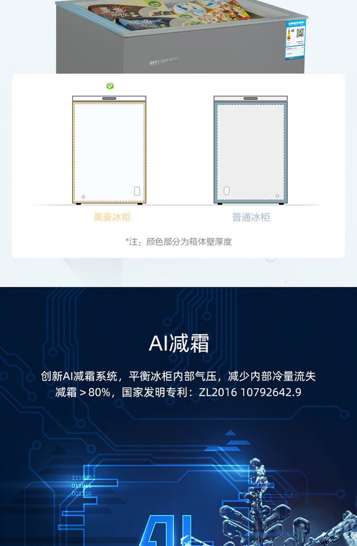 美菱(MeiLing)(202733 )100升冷柜冷藏冷冻单温转换 薄壁嵌入一级能效断电保护节能冰柜 BC/BD-100DTCS