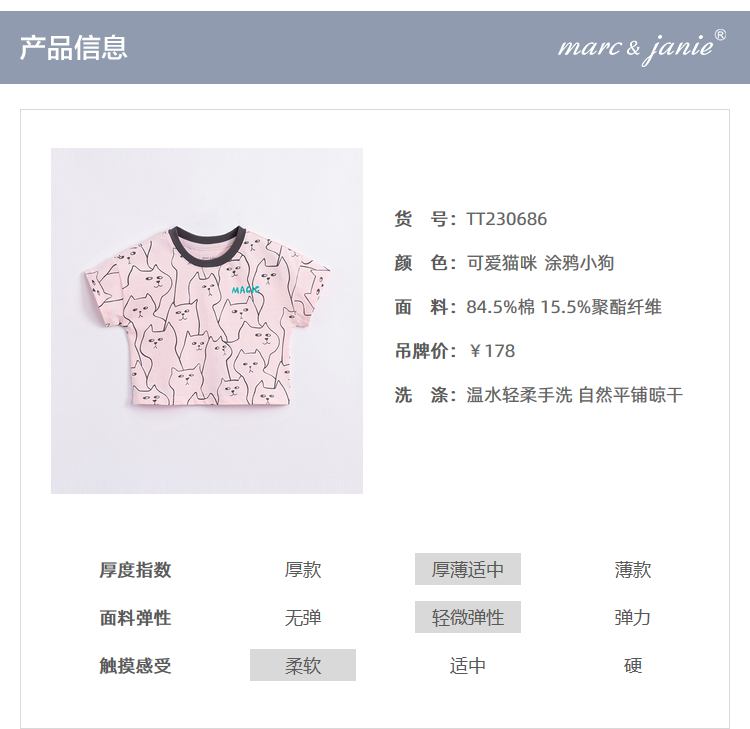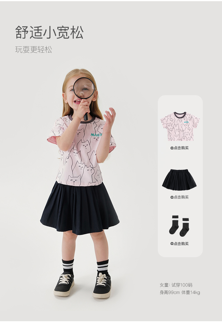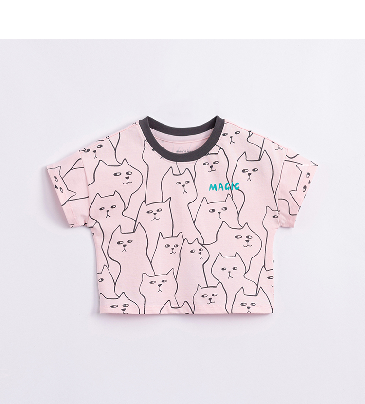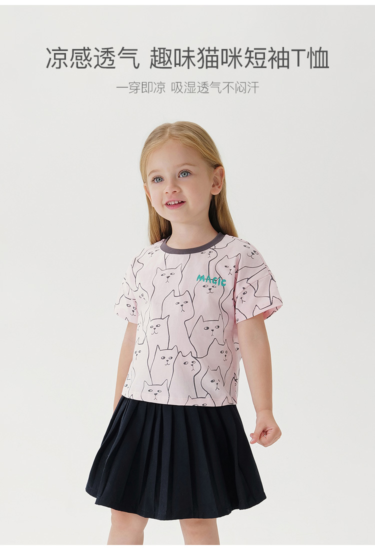 【凉感抗菌】马克珍妮夏装新款 男女童涂鸦满印透气短袖T恤230686