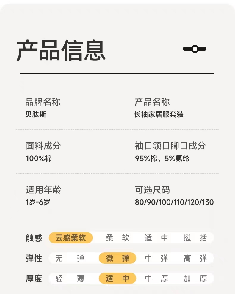 【贝肽斯】儿童家居服睡衣春秋款儿童保暖秋衣居家睡衣套装男女宝宝