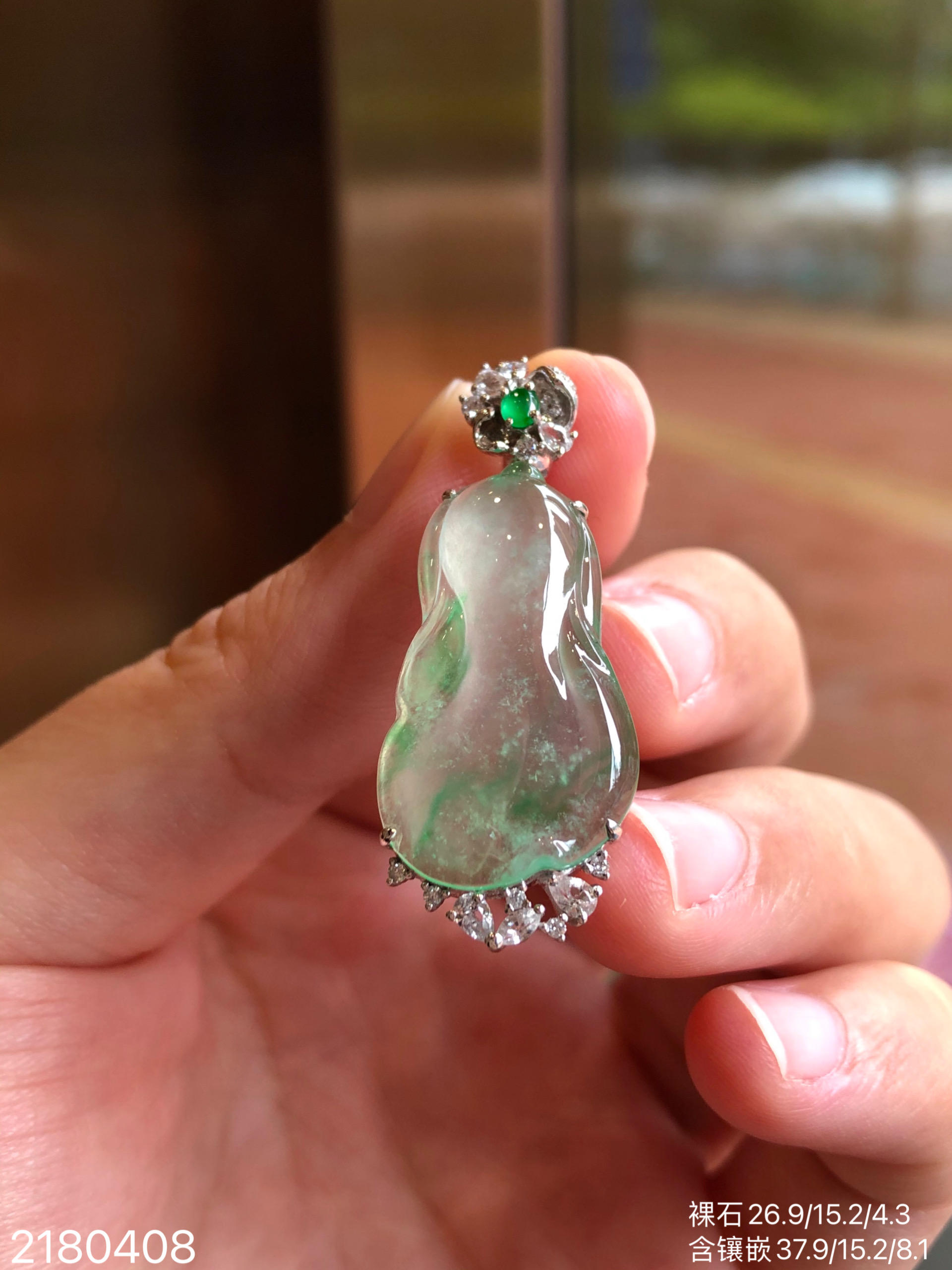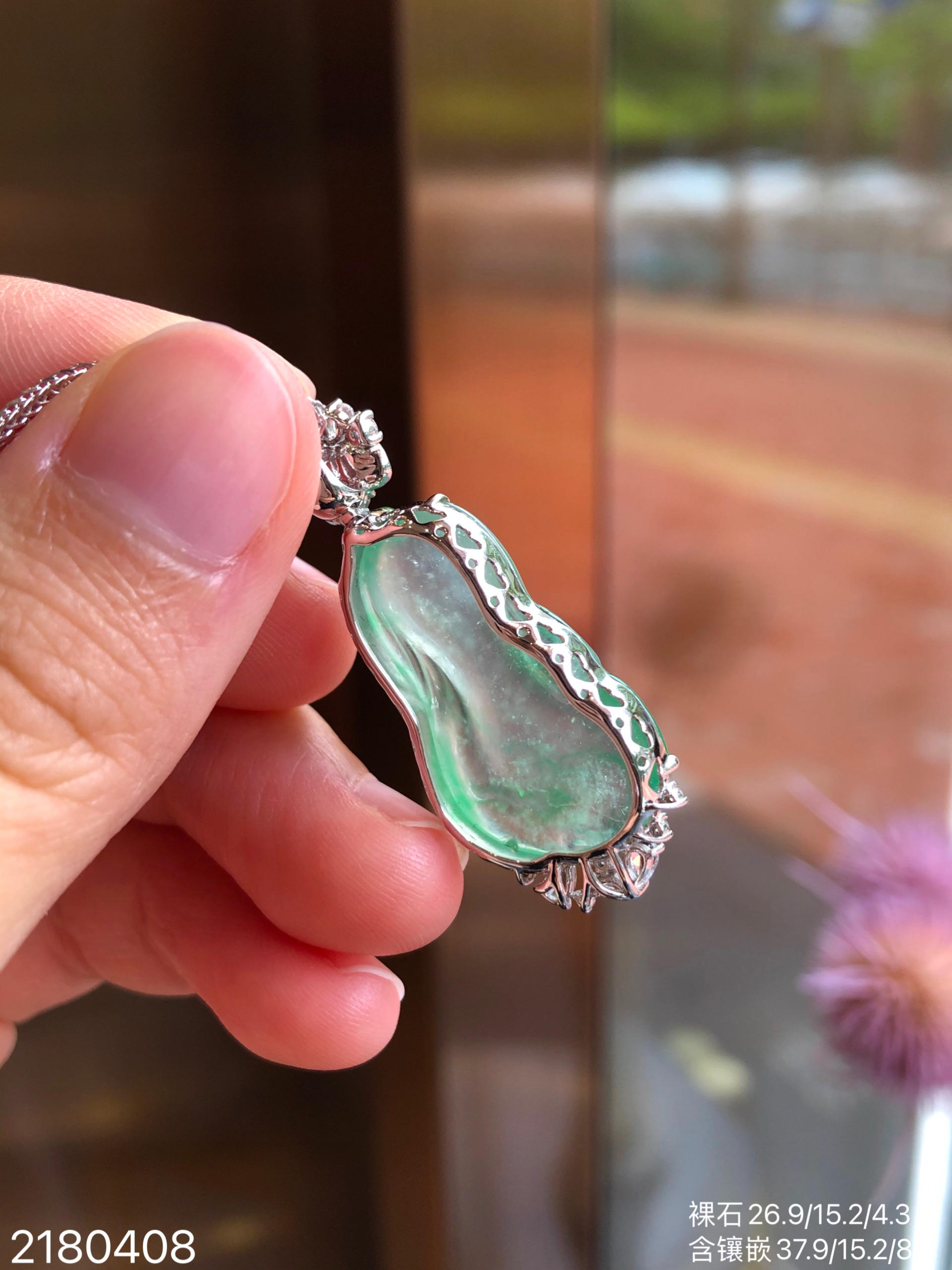2180408,玻璃飘翠白菜吊坠,29999