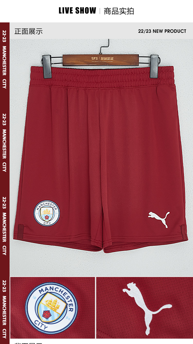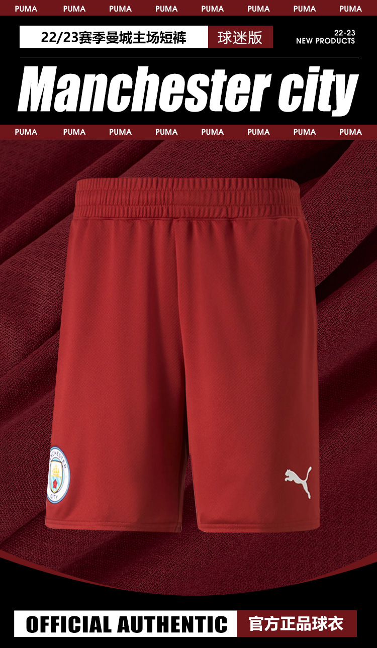 SFS彪马Puma正品 22-23曼城主场球迷版足球短裤成人男765752-05