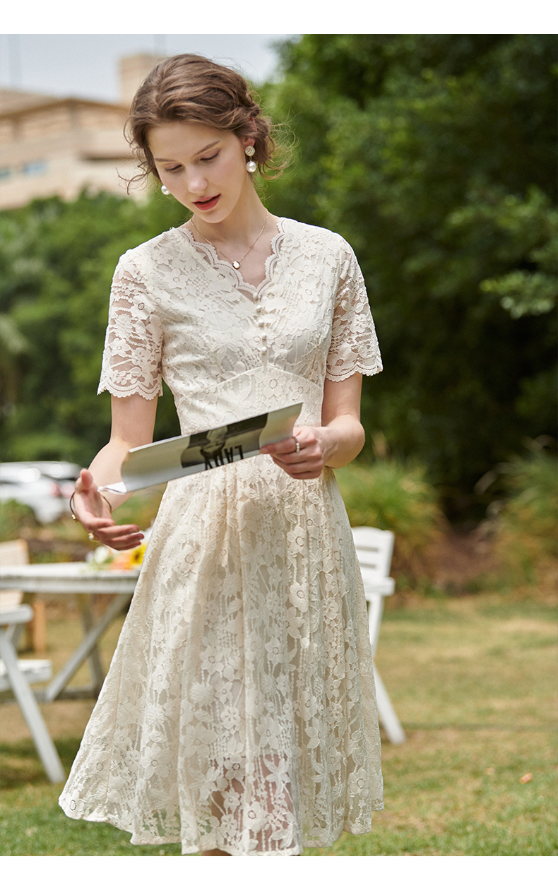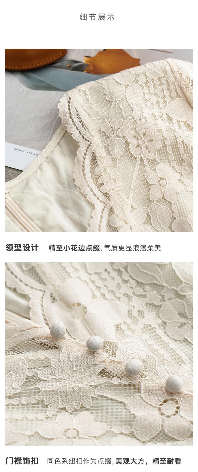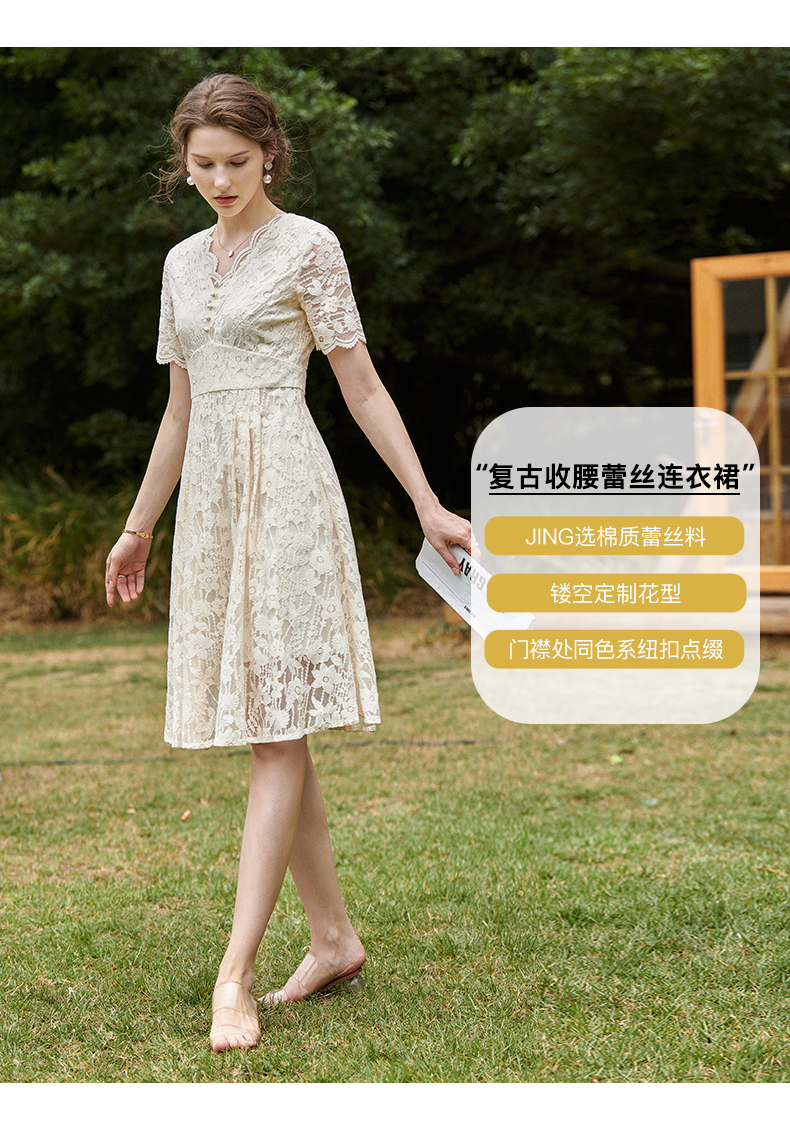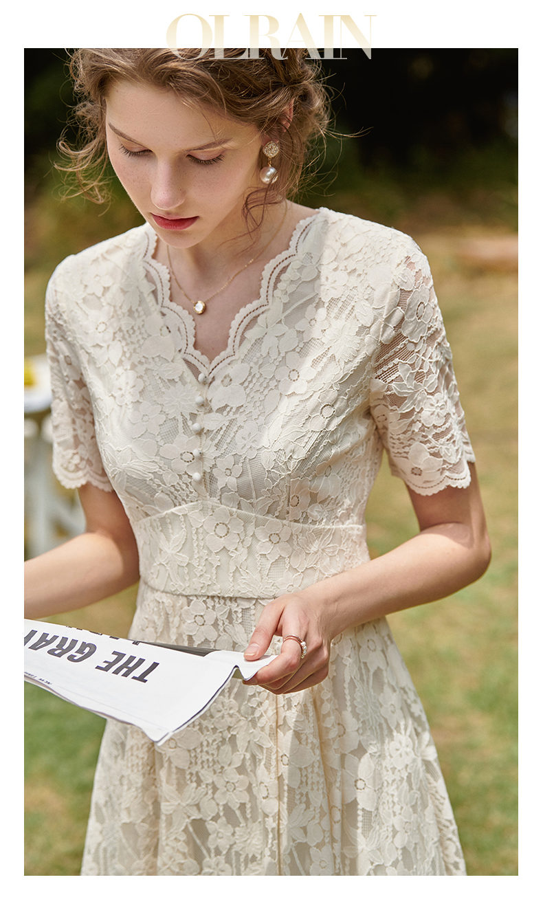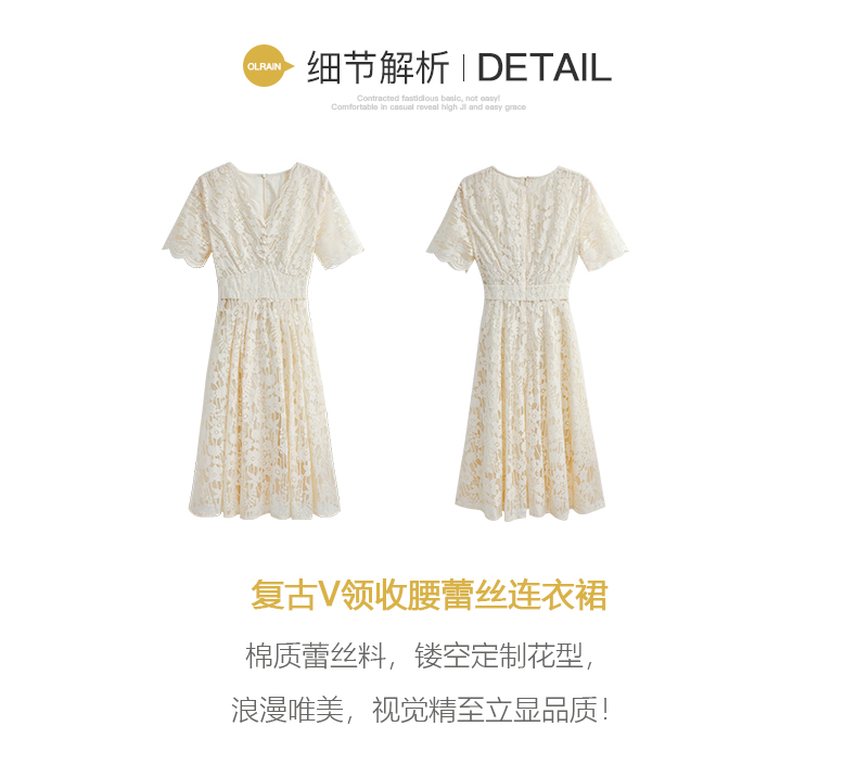欧芮儿蕾丝连衣裙2021新款收腰显瘦法式v领小个子气质复古裙