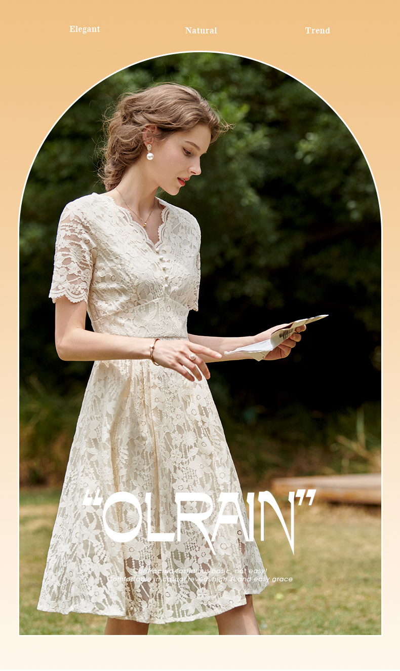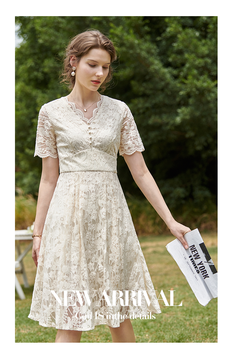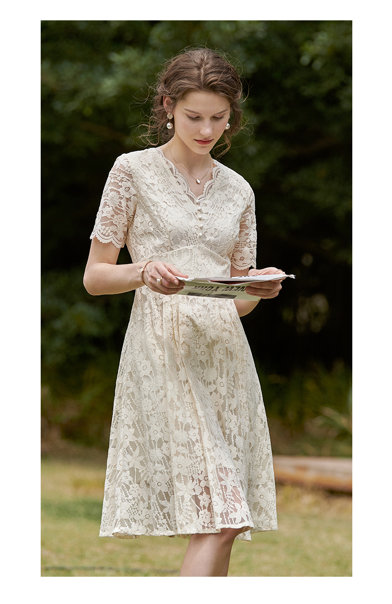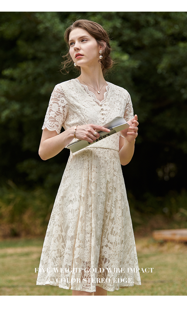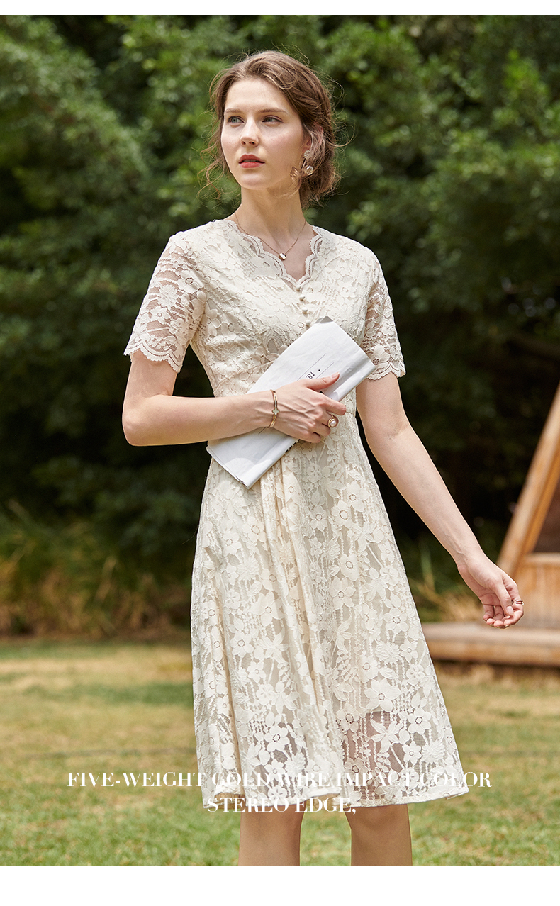 欧芮儿蕾丝连衣裙2021新款收腰显瘦法式v领小个子气质复古裙