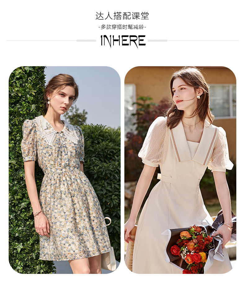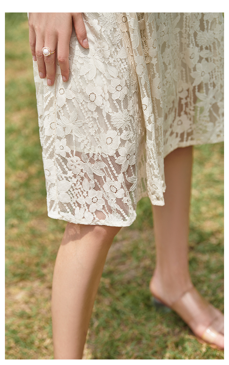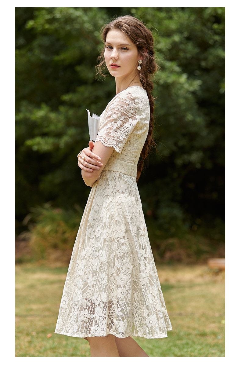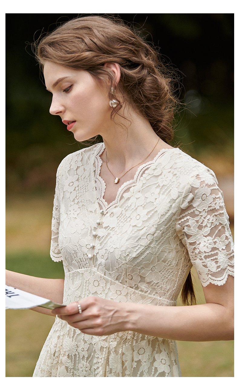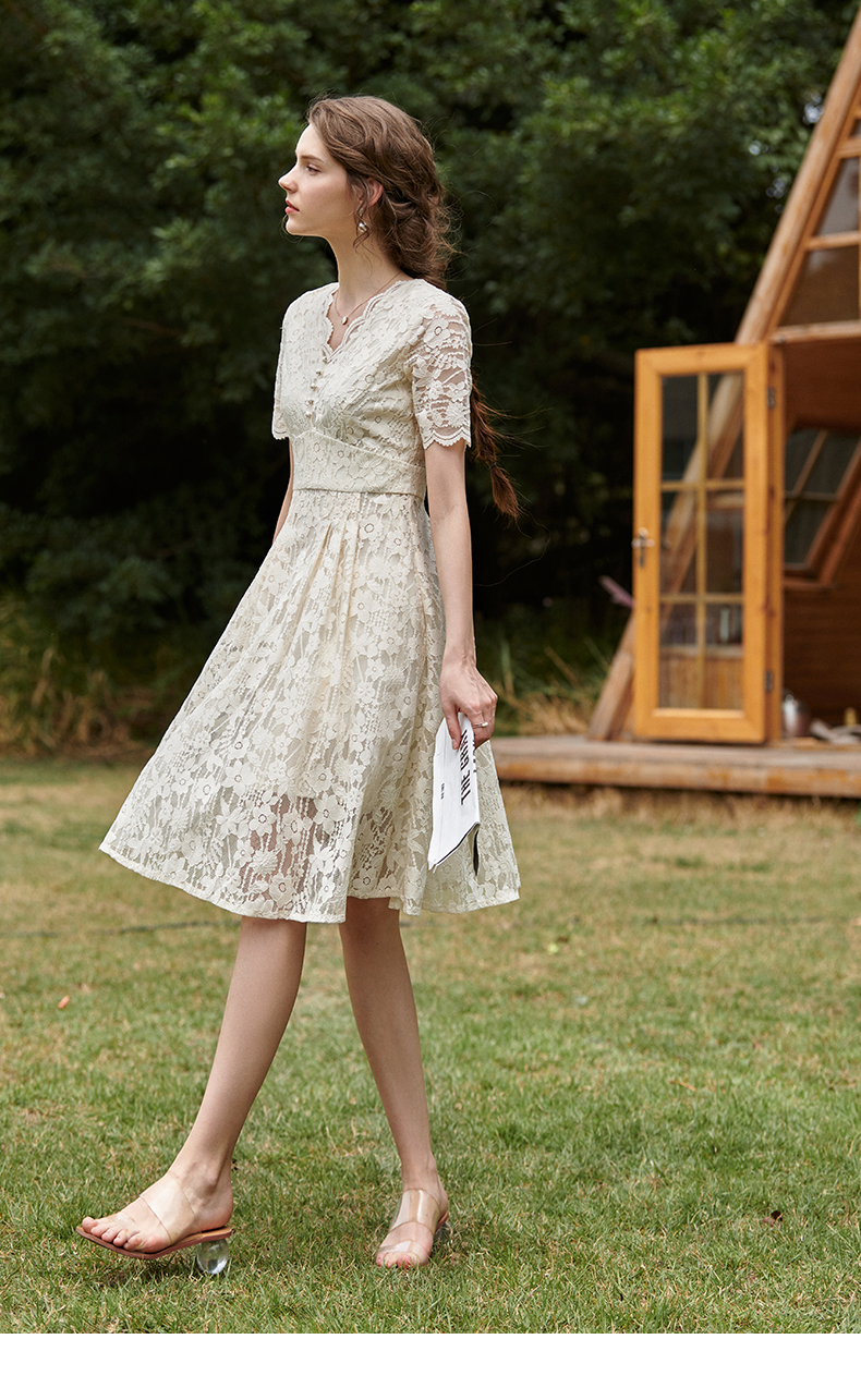 欧芮儿蕾丝连衣裙2021新款收腰显瘦法式v领小个子气质复古裙