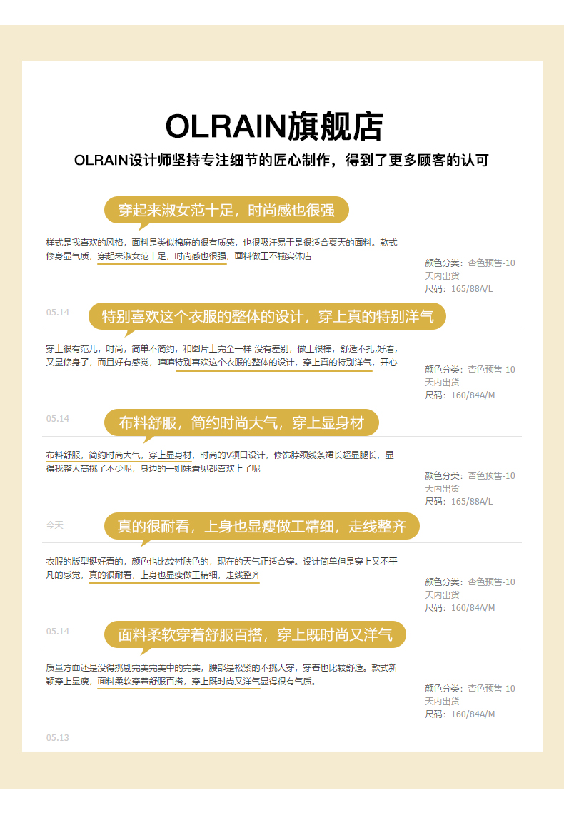 “精致”是欧芮儿olrain品牌文化的核心,欧芮儿认为,精致的女人,不但要外在动人,更要内在迷人,内外兼修,有魅力、有气质、有内涵,自信而不自傲,优雅而不矫揉,自有万种风情而不轻浮,更不故作矜持。