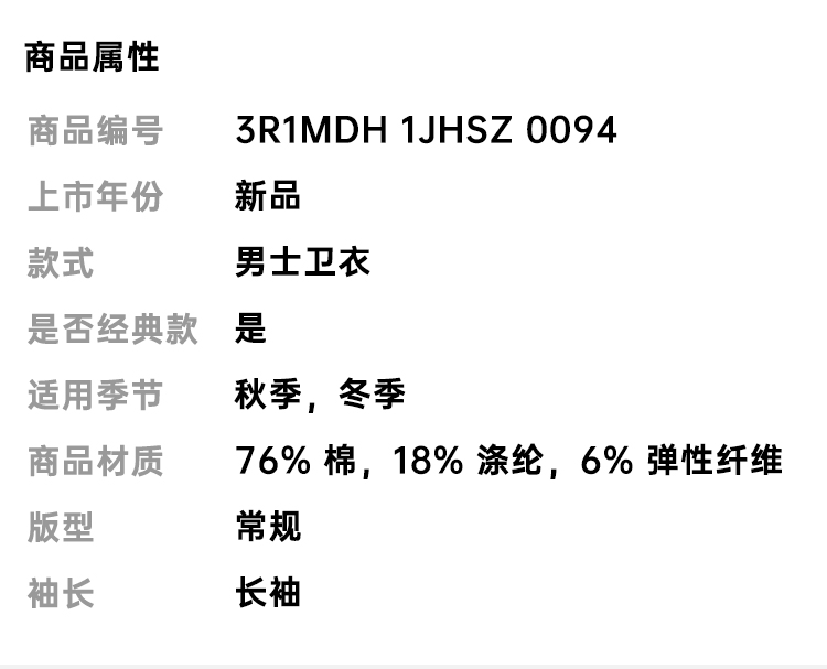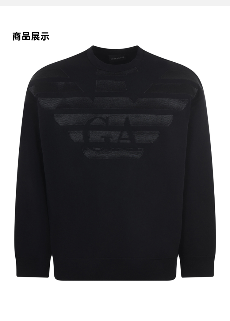 EMPORIO ARMANI 阿玛尼 男士棉质老鹰徽标印花圆领长袖卫衣 黑色 3R1MDH 1JHSZ 0094