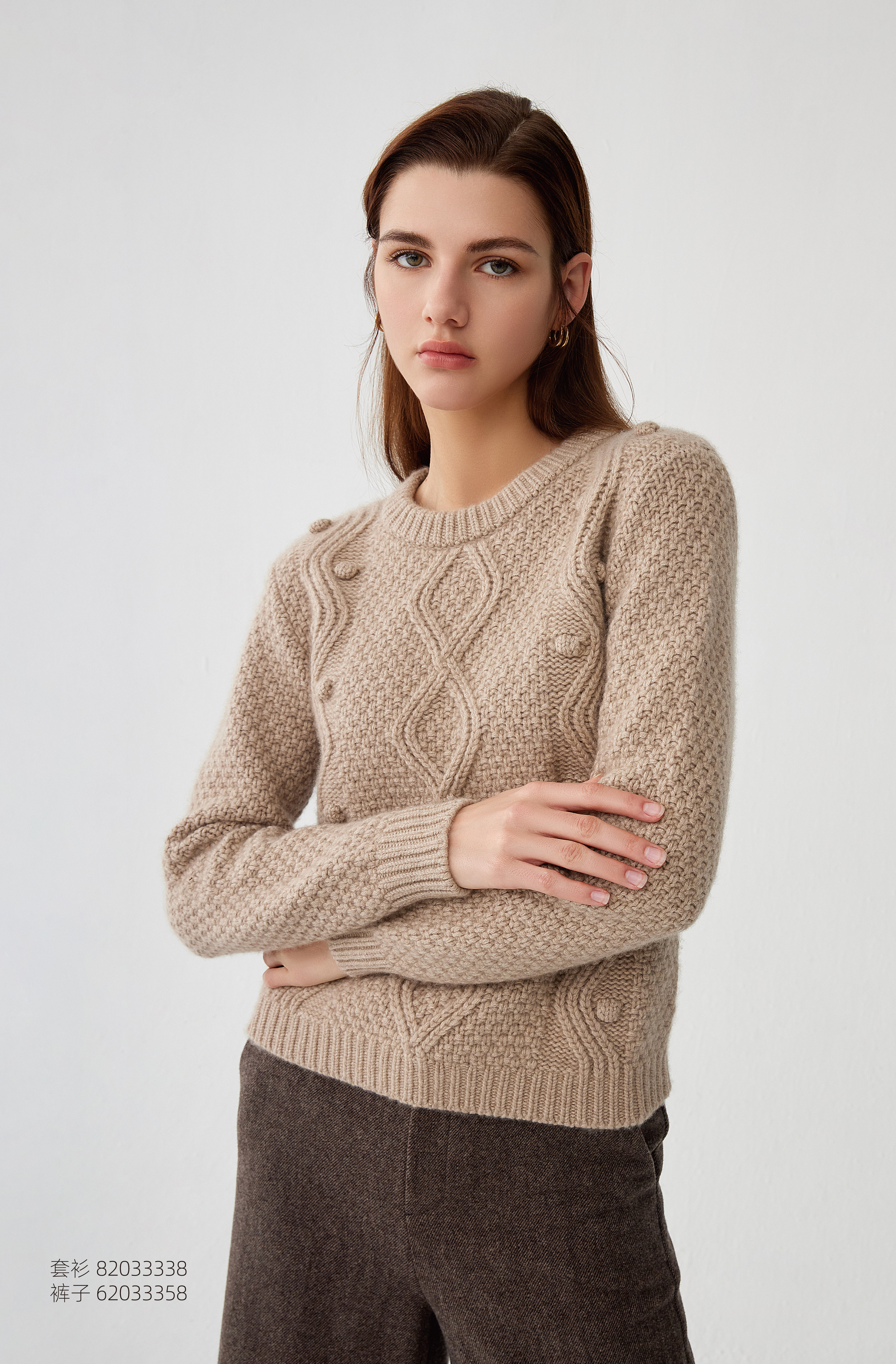 【粗棒针绞花羊绒衫】羊绒世家秋冬新品女士100%山羊绒内搭针织加厚保暖毛衣