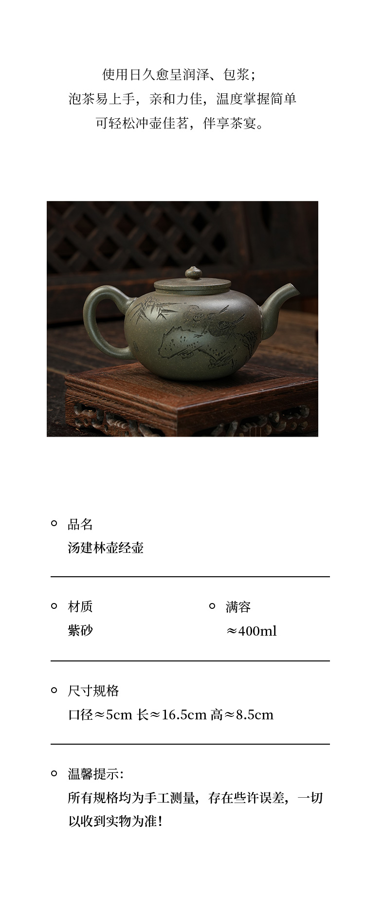 汤建林 壶经壶 宜兴紫砂原矿茶壶紫砂壶功夫茶泡茶壶茶具仿古