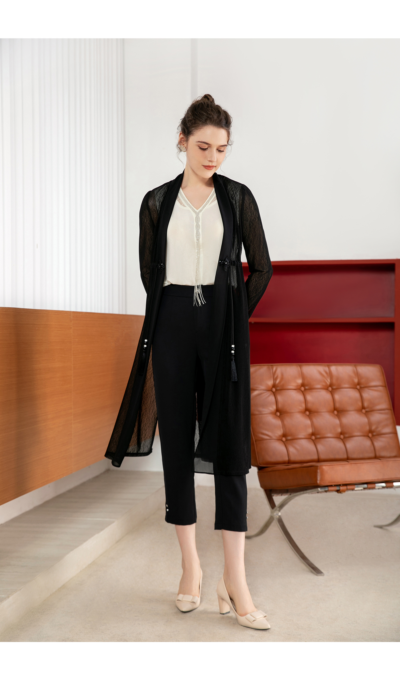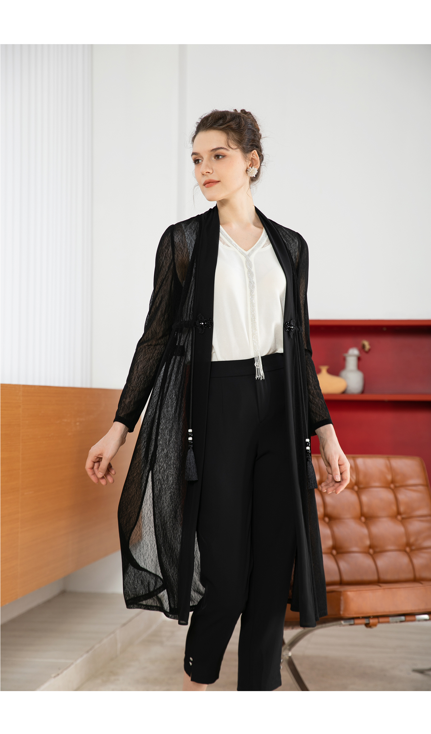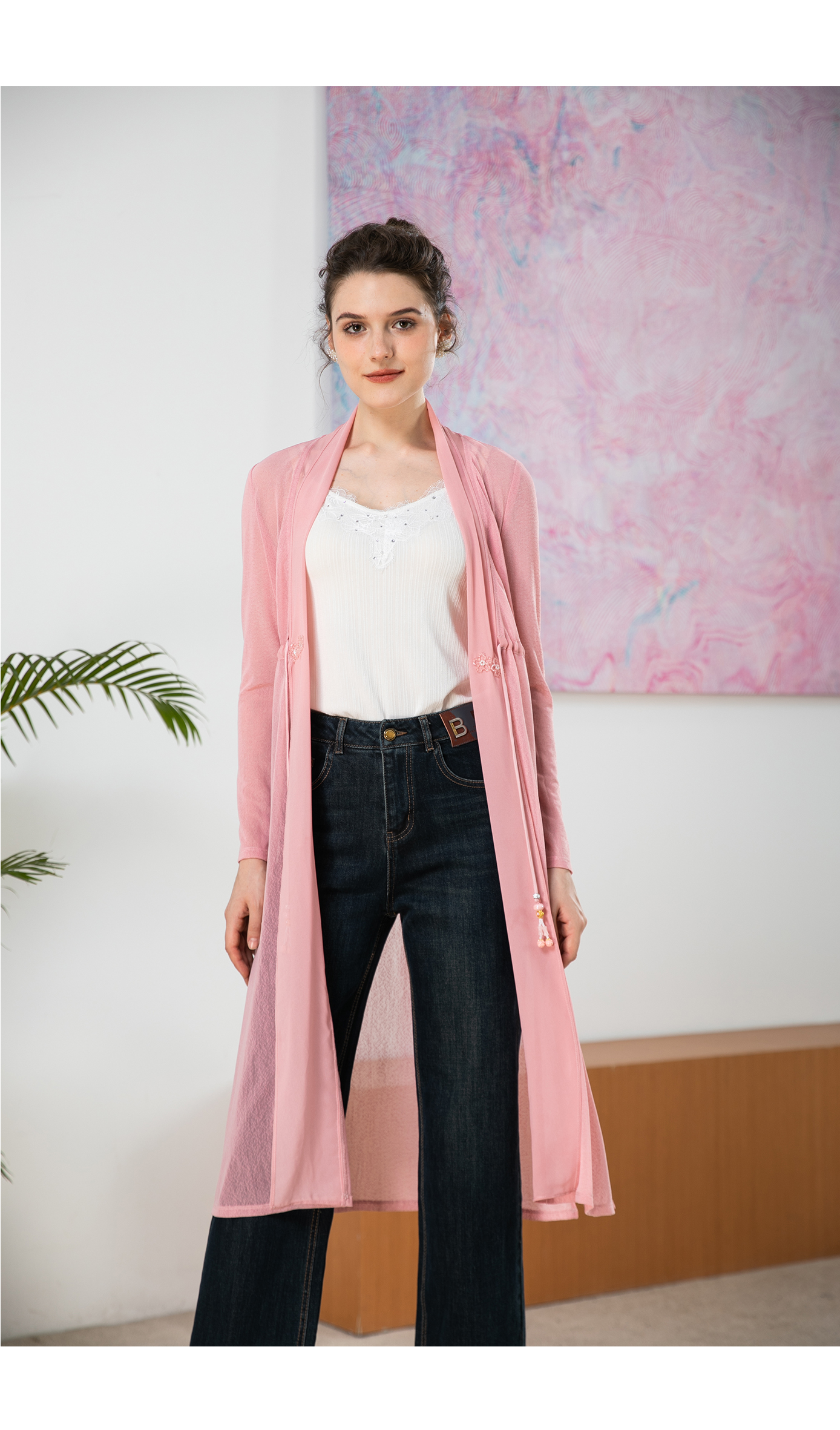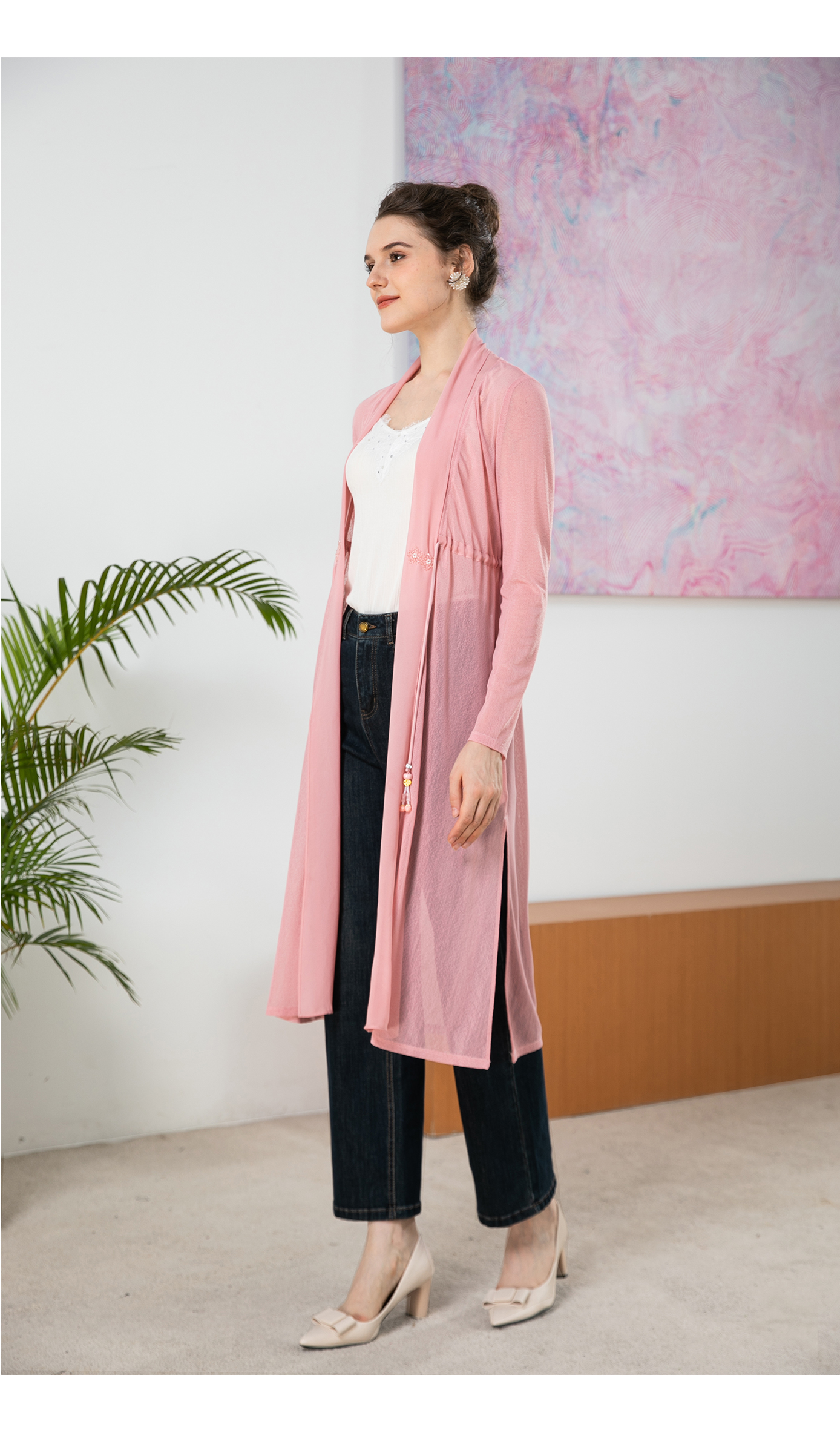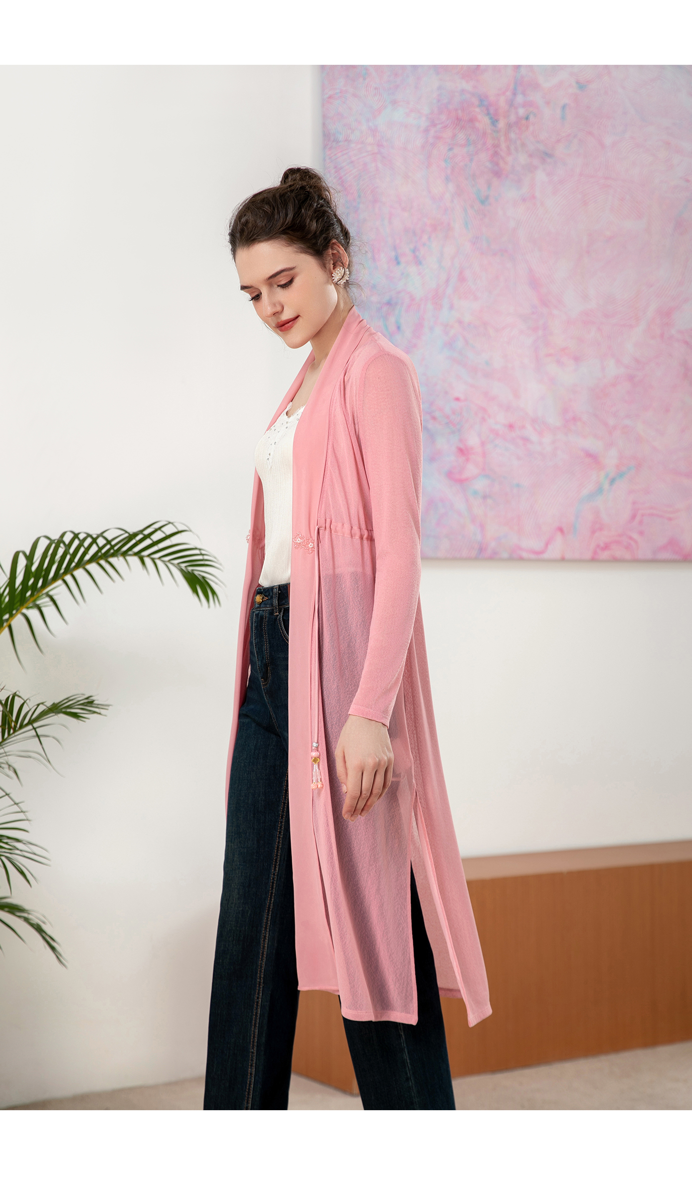 司歌弹力长开衫外套长袖国风B901293y