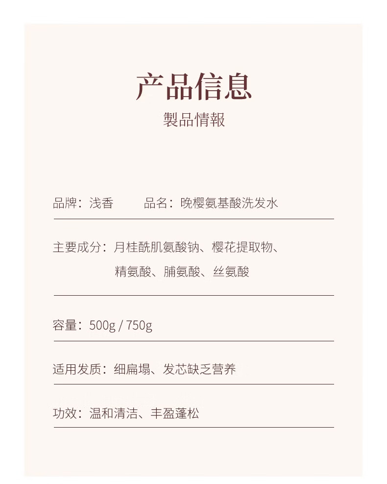 【分仓直发包邮】浅香日本氨基酸洗发水(可选:扁柏/晚樱/香榧)750g