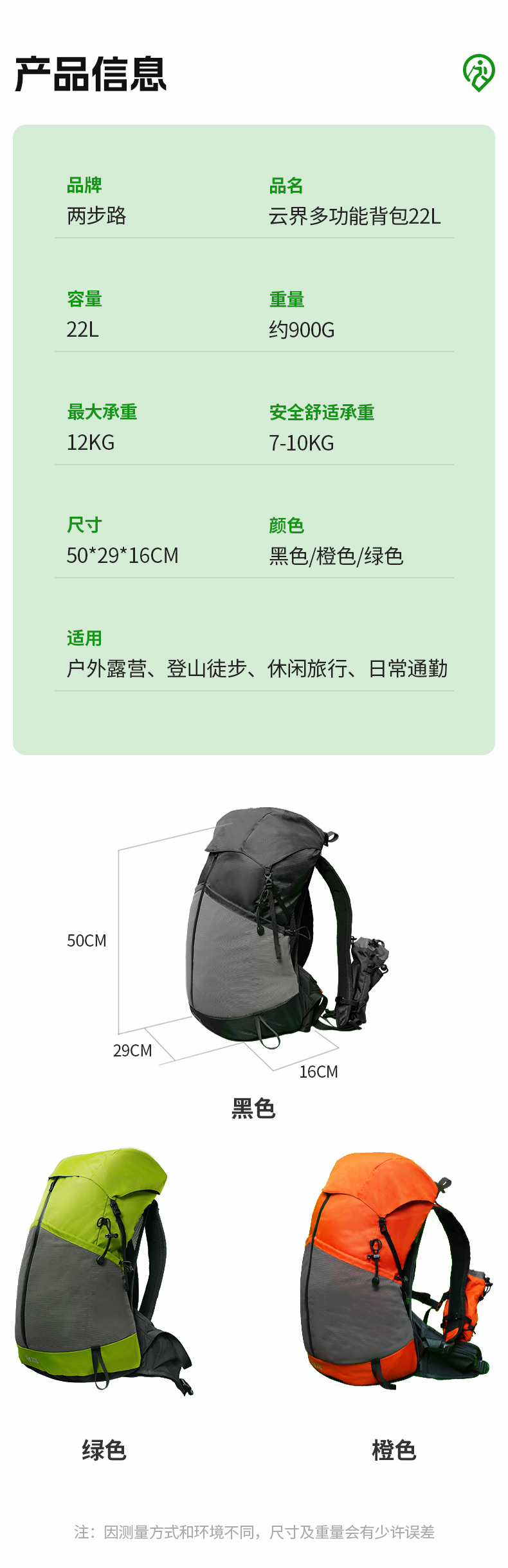 【爆款】两步路云界22L徒步登山专业多功能背包(建议同时购买可拆卸收纳包+灵动小包)