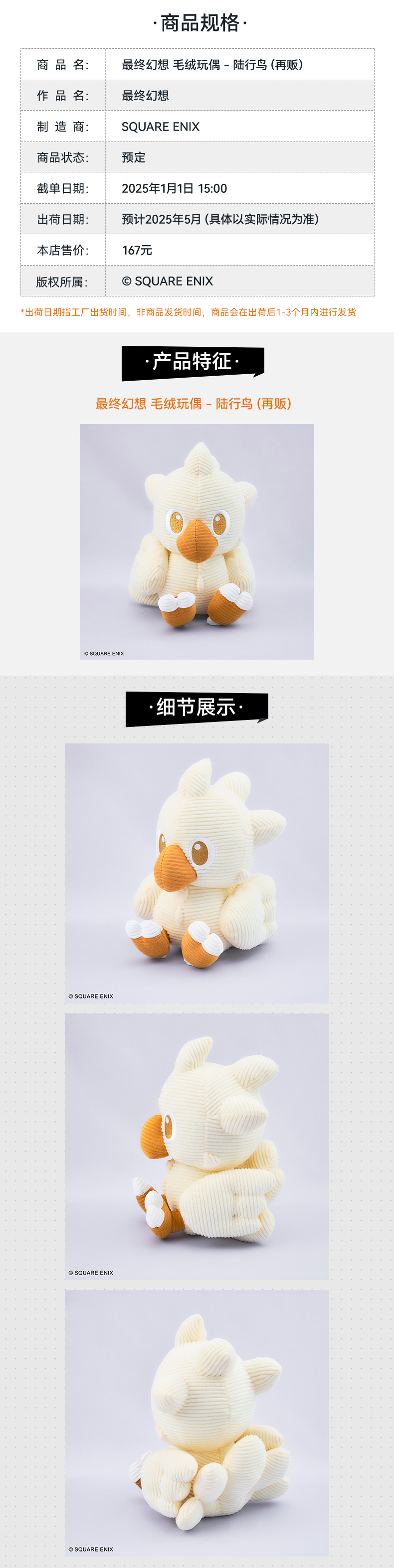 【GSC补款】最终幻想 毛绒玩偶 冬贝利/陆行鸟