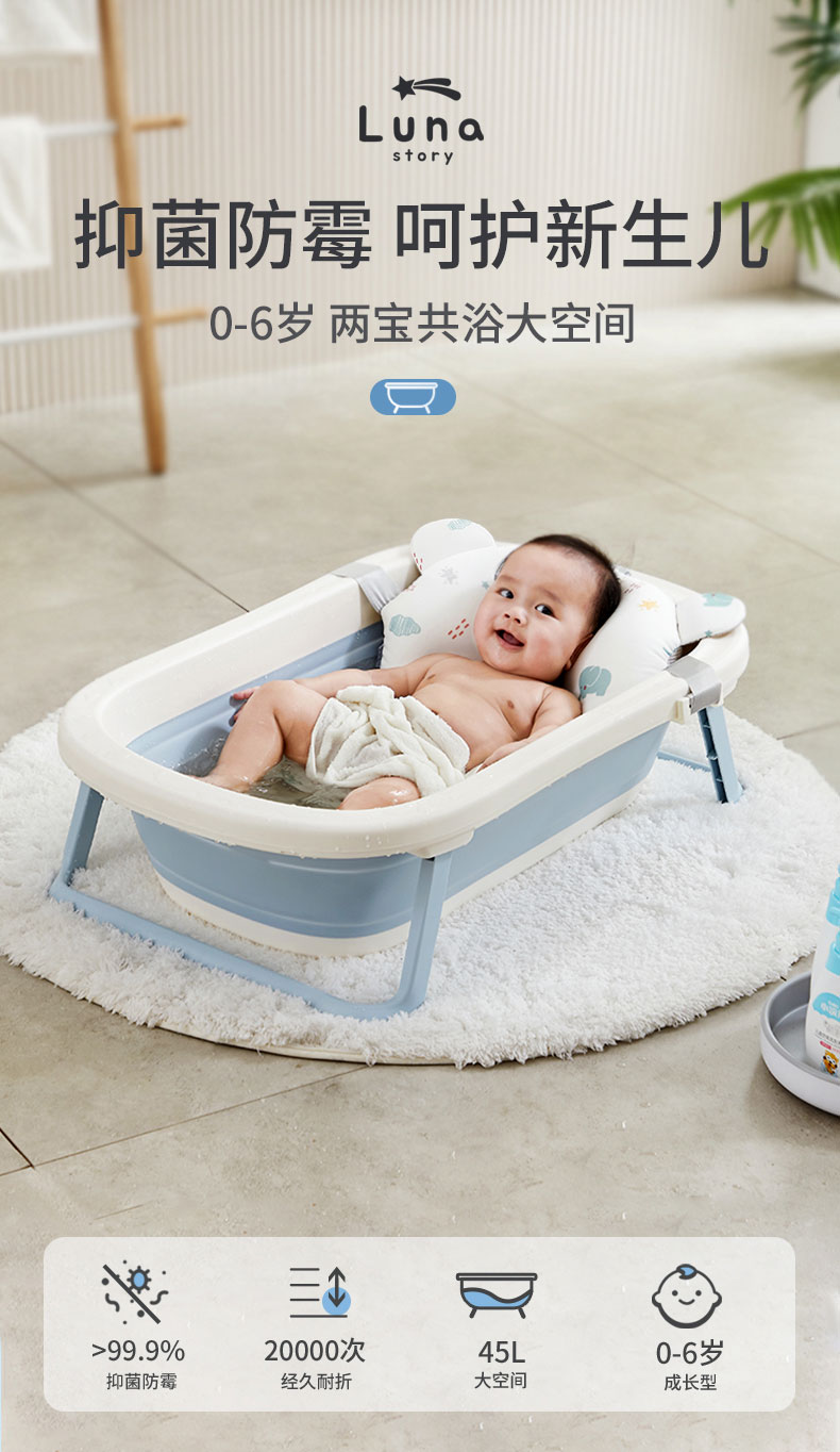 【云优选】lunastory新生婴儿洗澡盆可折叠幼儿大浴盆,特价商品不支持七天无理由,退回需支付20元发出运费且承担部分退回运费,介意慎拍!