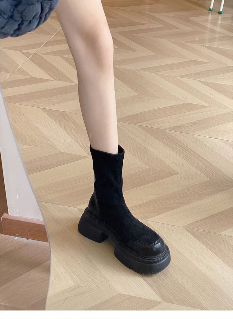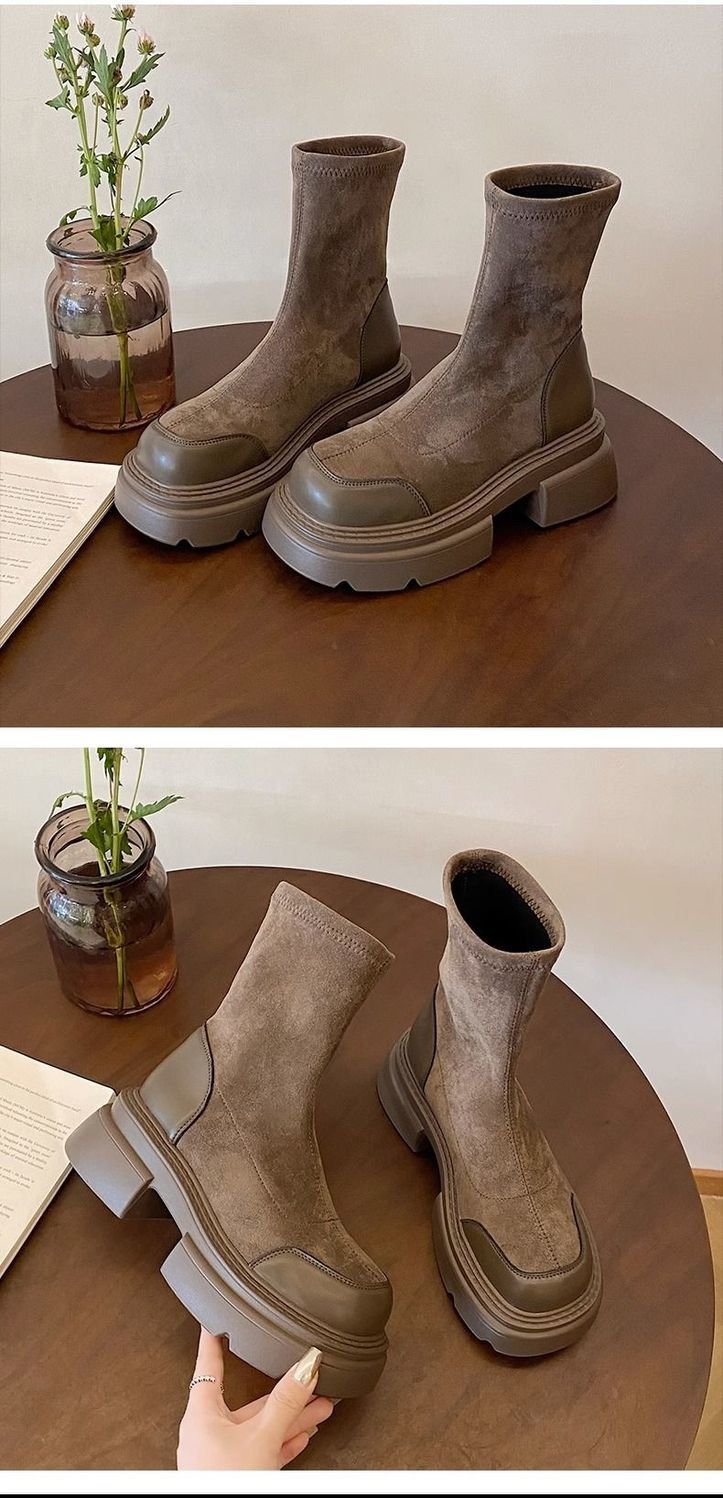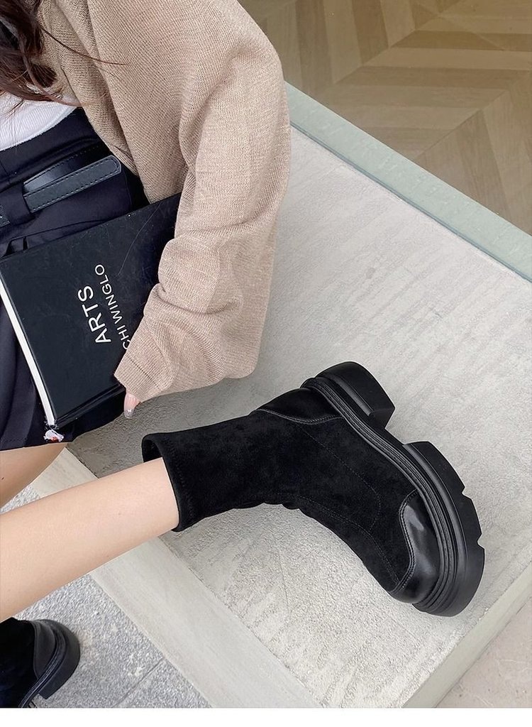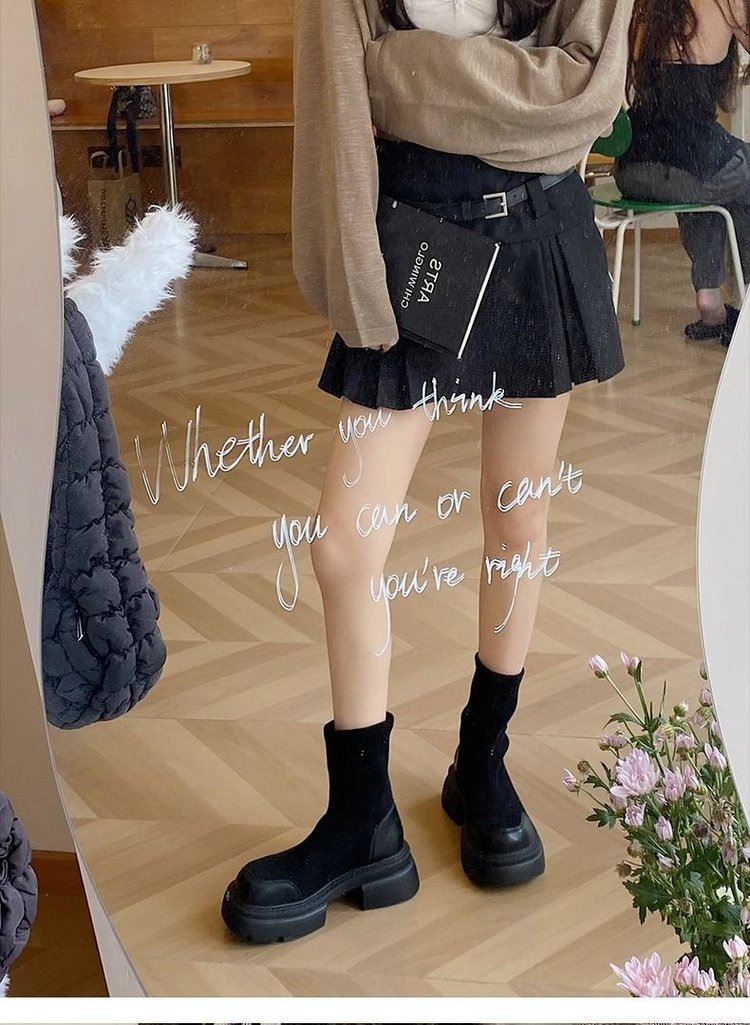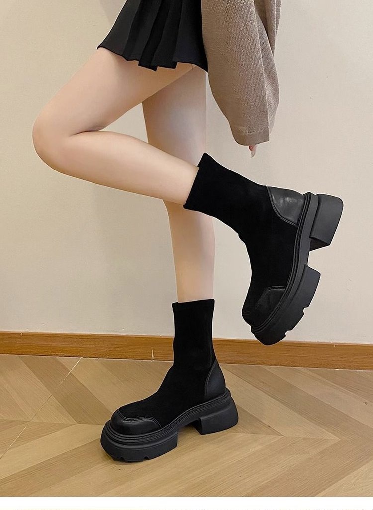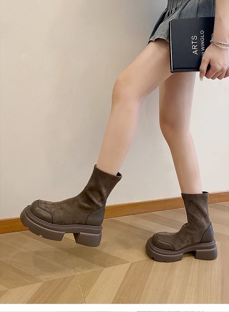 【69/双】复古英伦风显脚小厚底马丁靴女秋冬款2025新款粗跟增高套筒短靴女聚