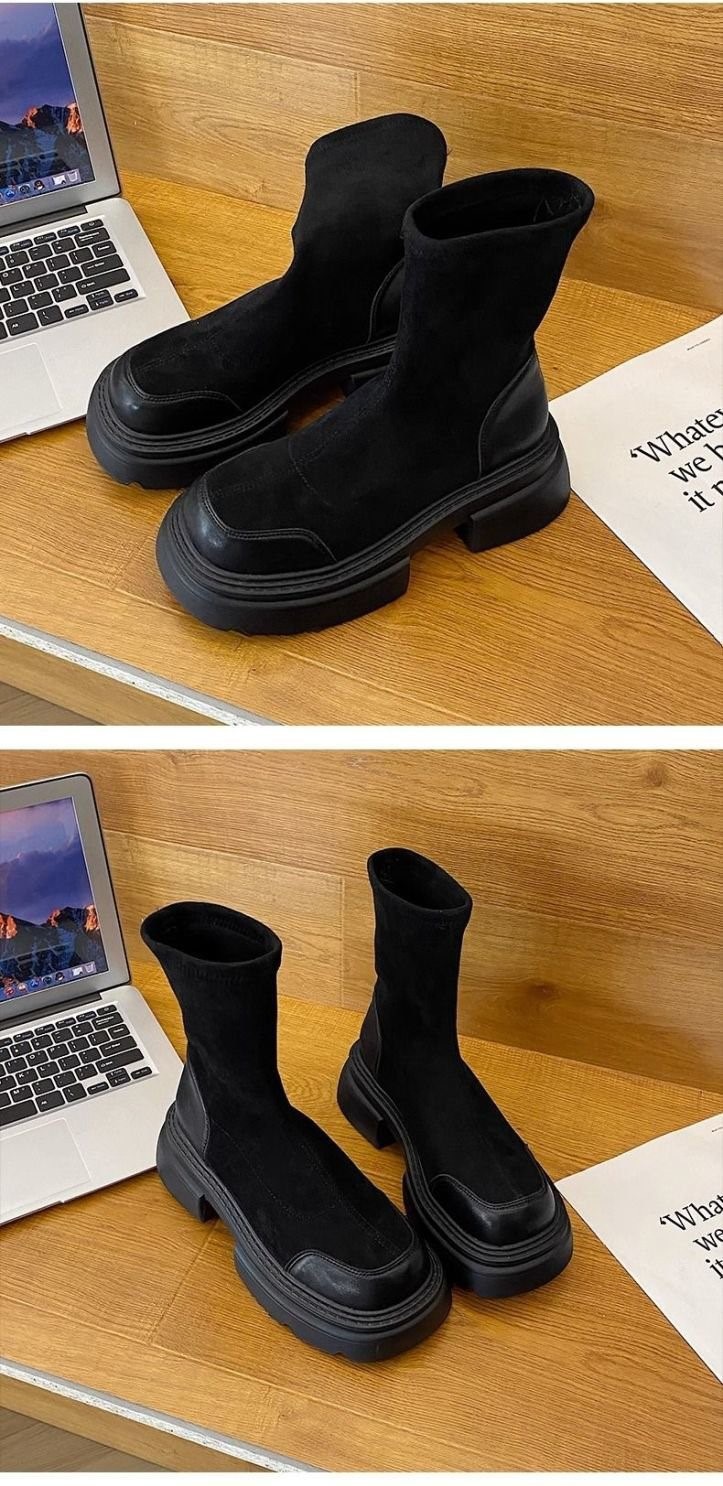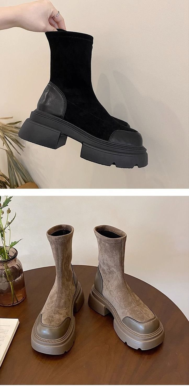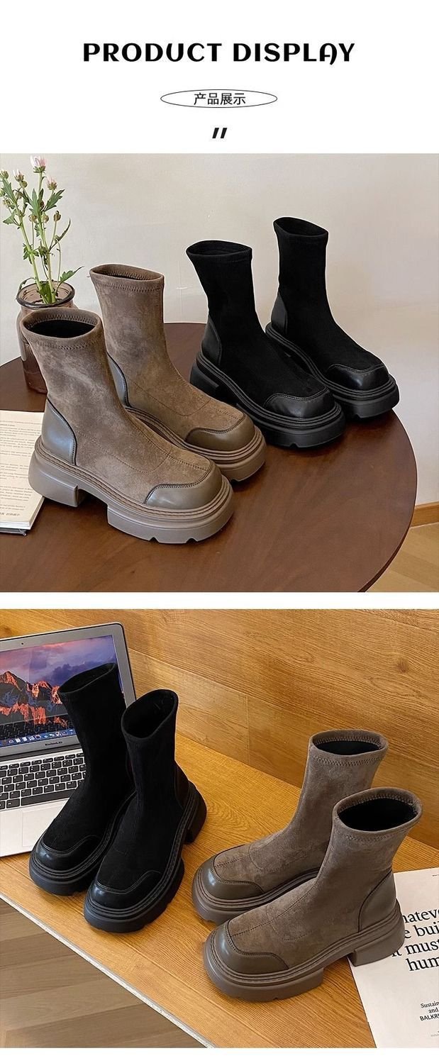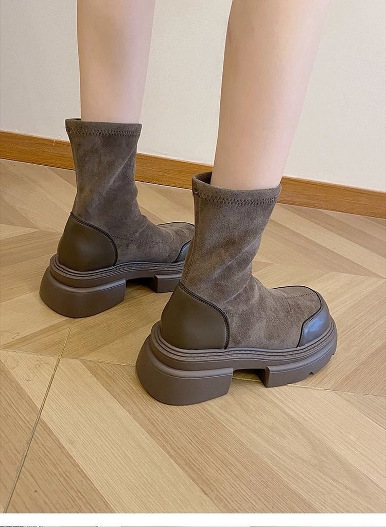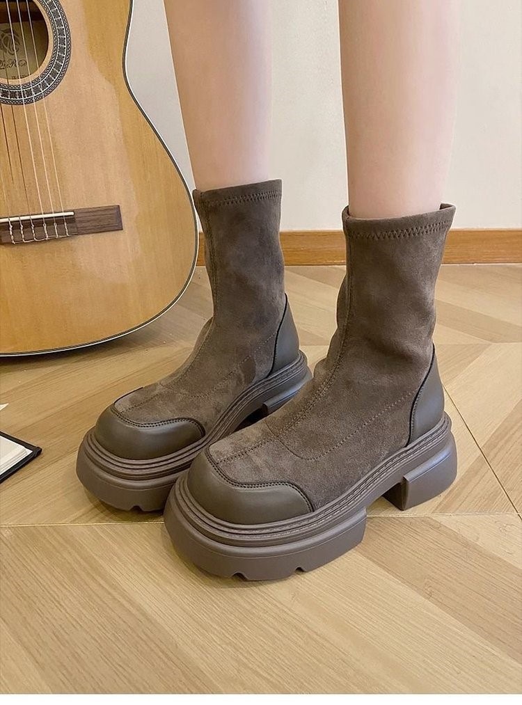 【69/双】复古英伦风显脚小厚底马丁靴女秋冬款2025新款粗跟增高套筒短靴女聚