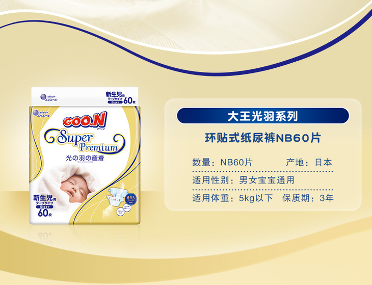 GOO.N(大王)婴儿用纸尿裤光羽系列NB60片(4包每箱)