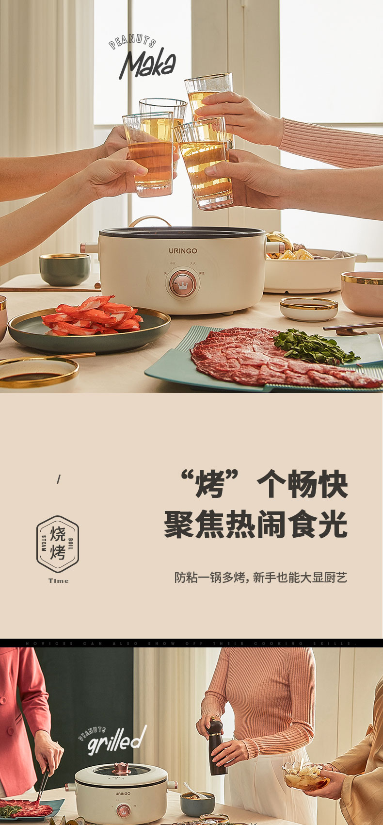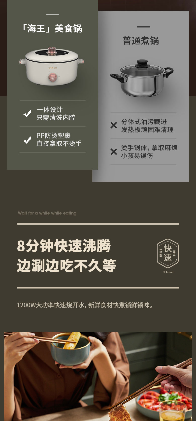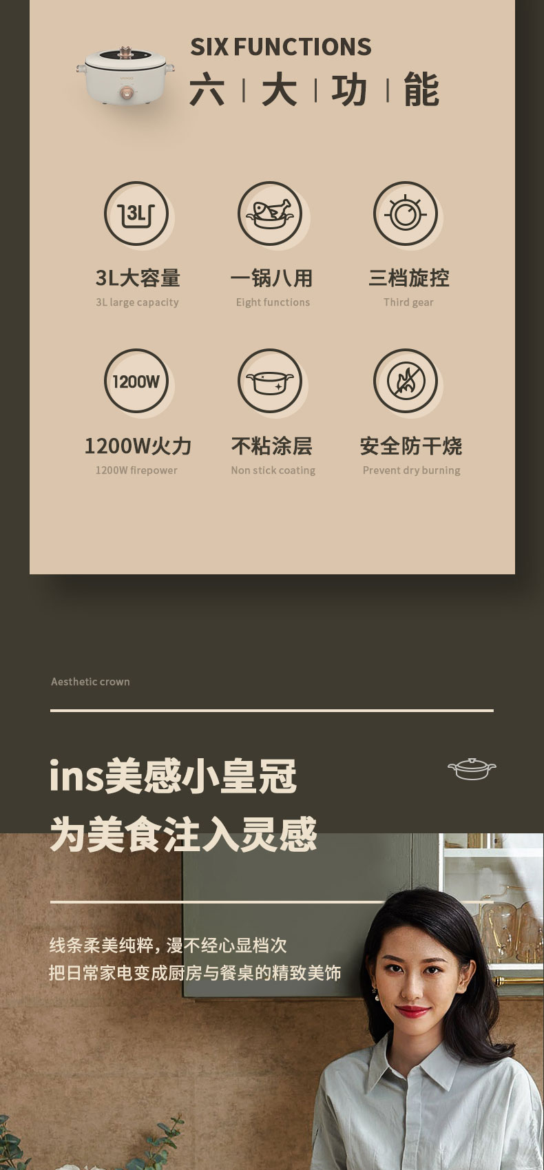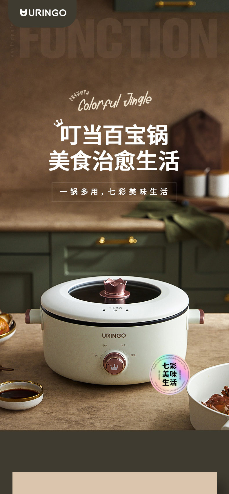 七彩叮当电煮锅家用多功能小电锅宿舍学生一体锅小型炒锅电热火锅JQR