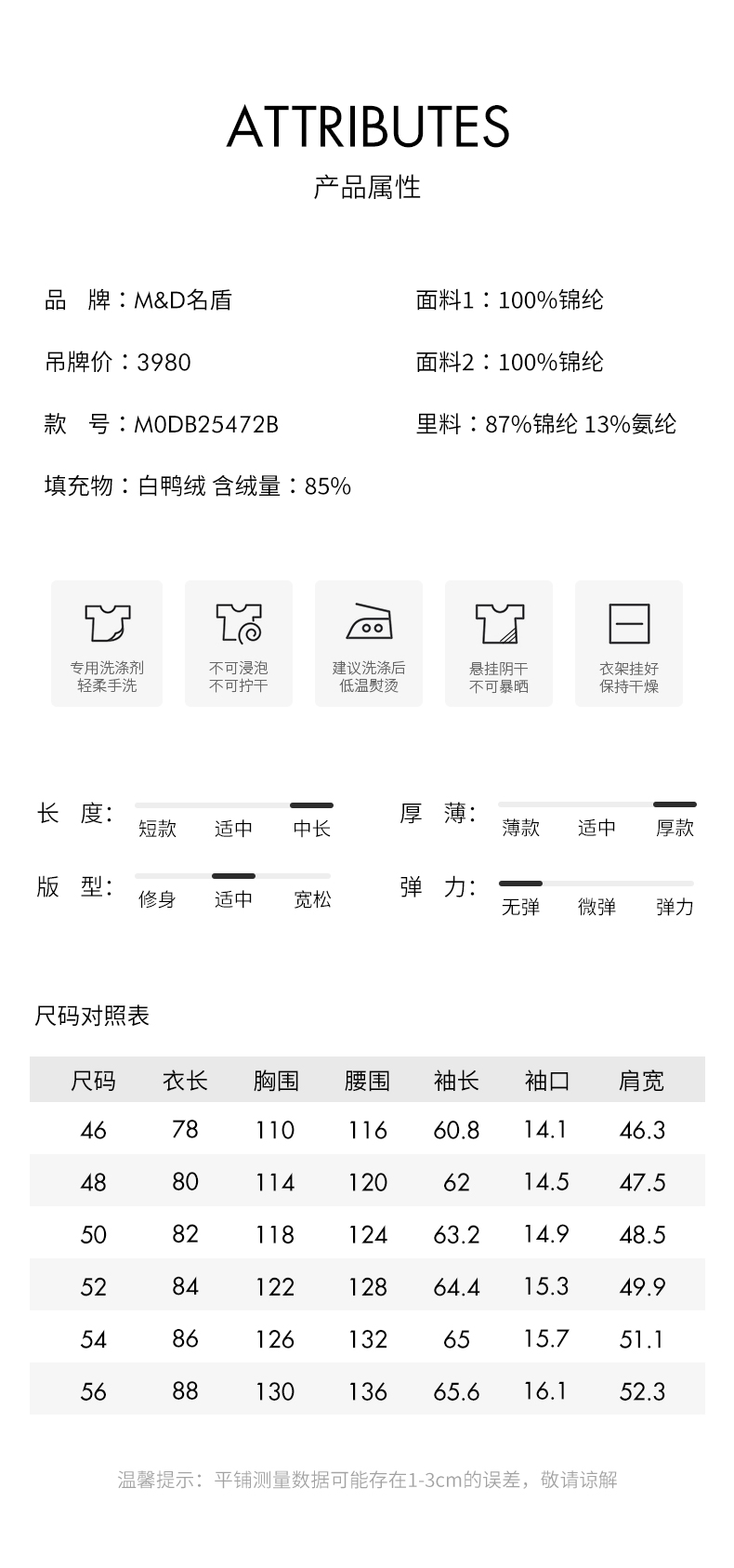 | 填充物: 白鸭绒 | 货号: M0DB25472B |