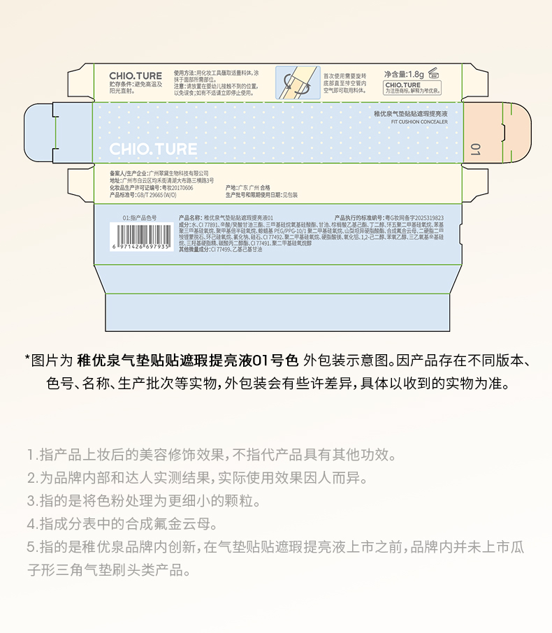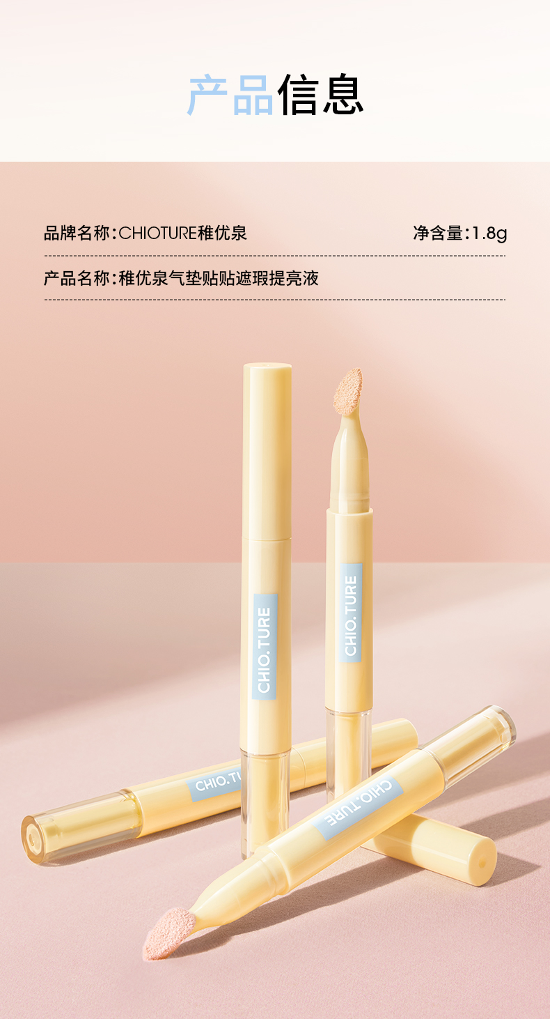 稚优泉(CHIOTURE)气垫贴贴遮瑕提亮液高光修容遮瑕哑光脸部唇部眼头