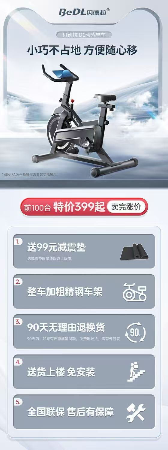 贝德拉居家锻炼健身动感单车不占地稳定好多重调节承重强健身器材