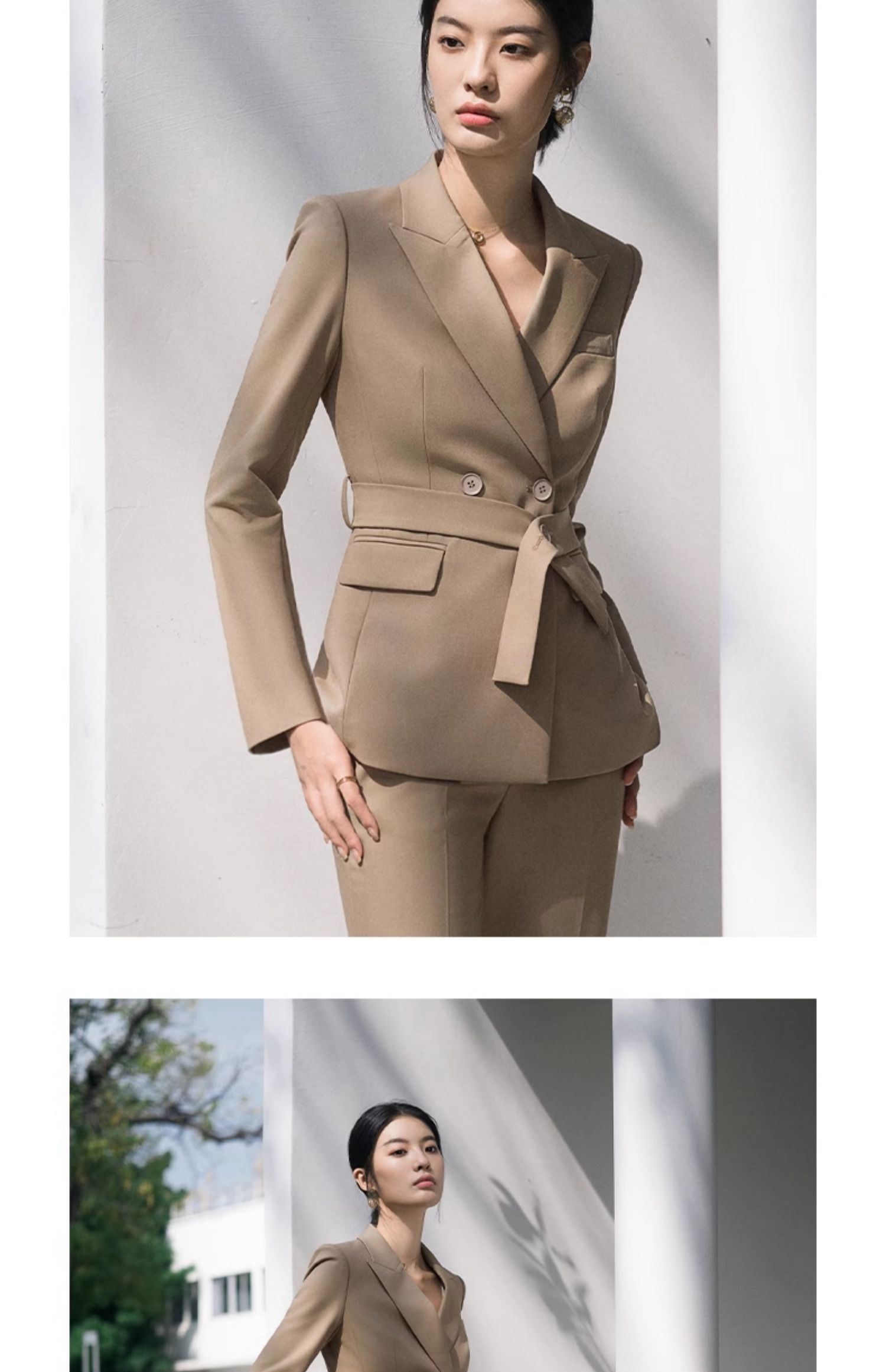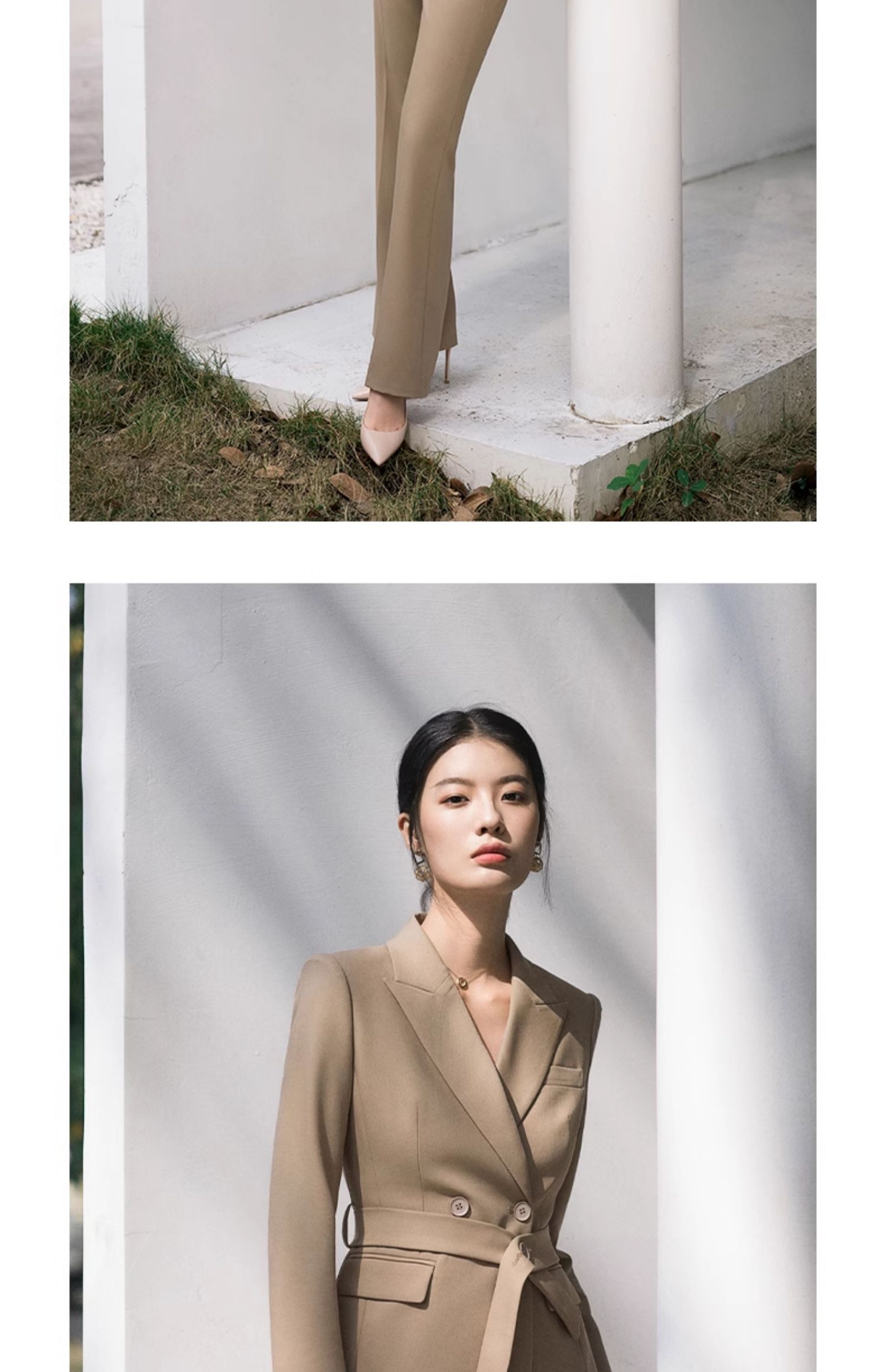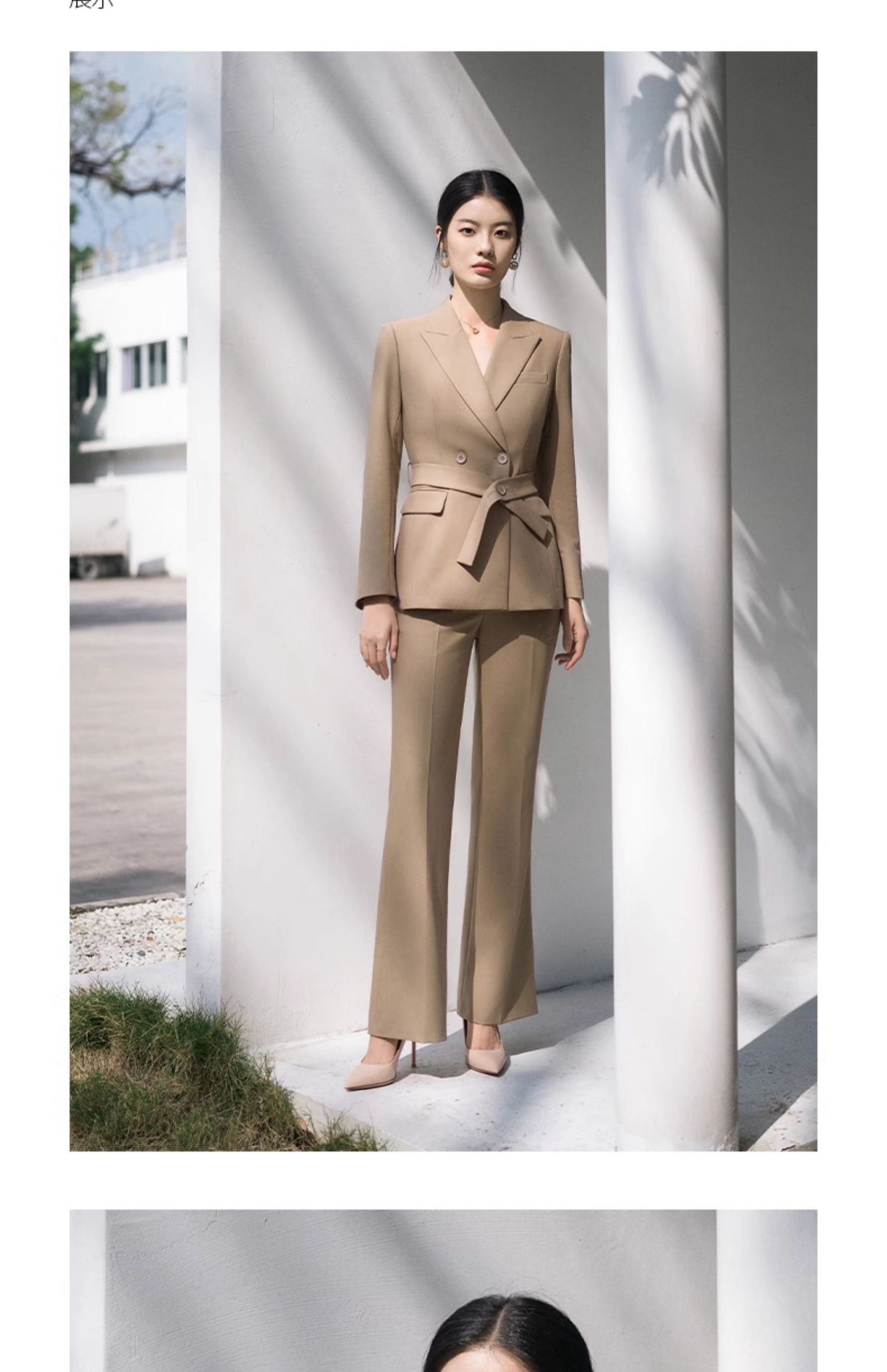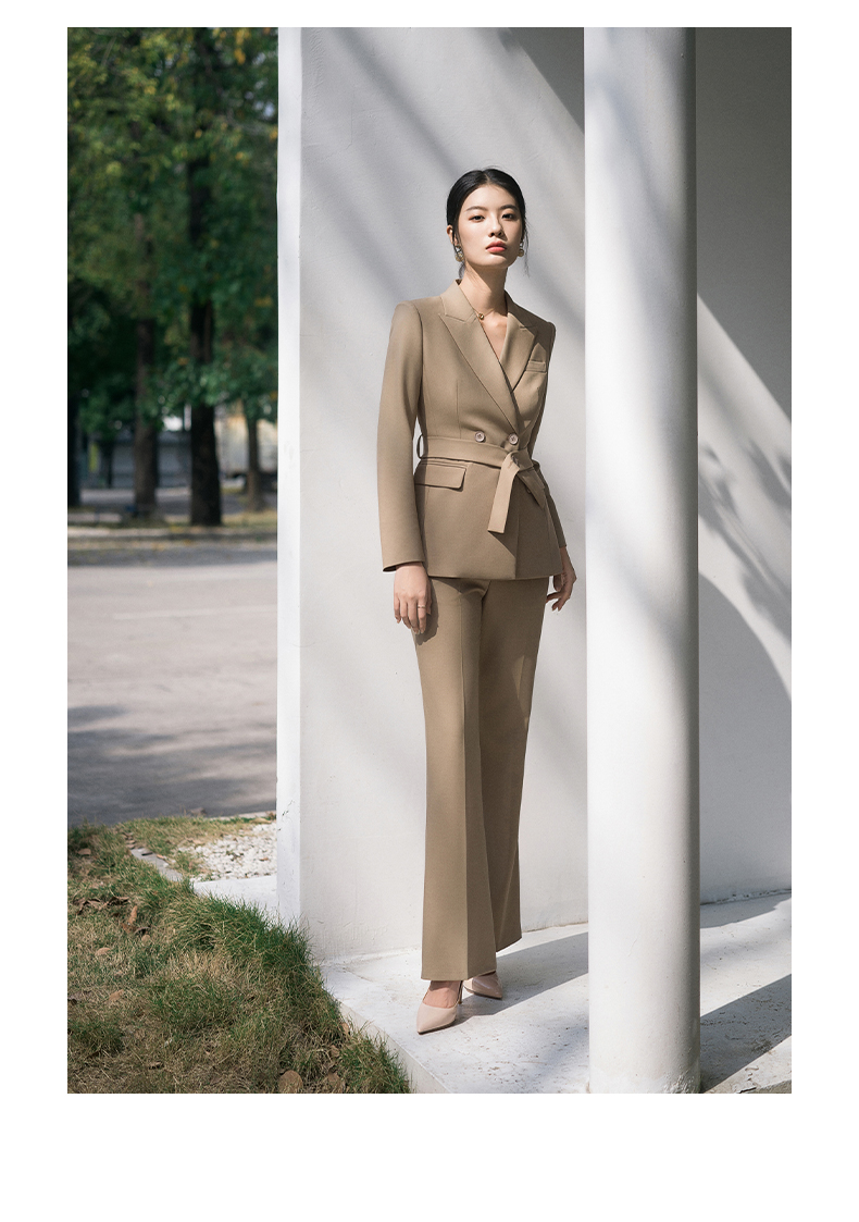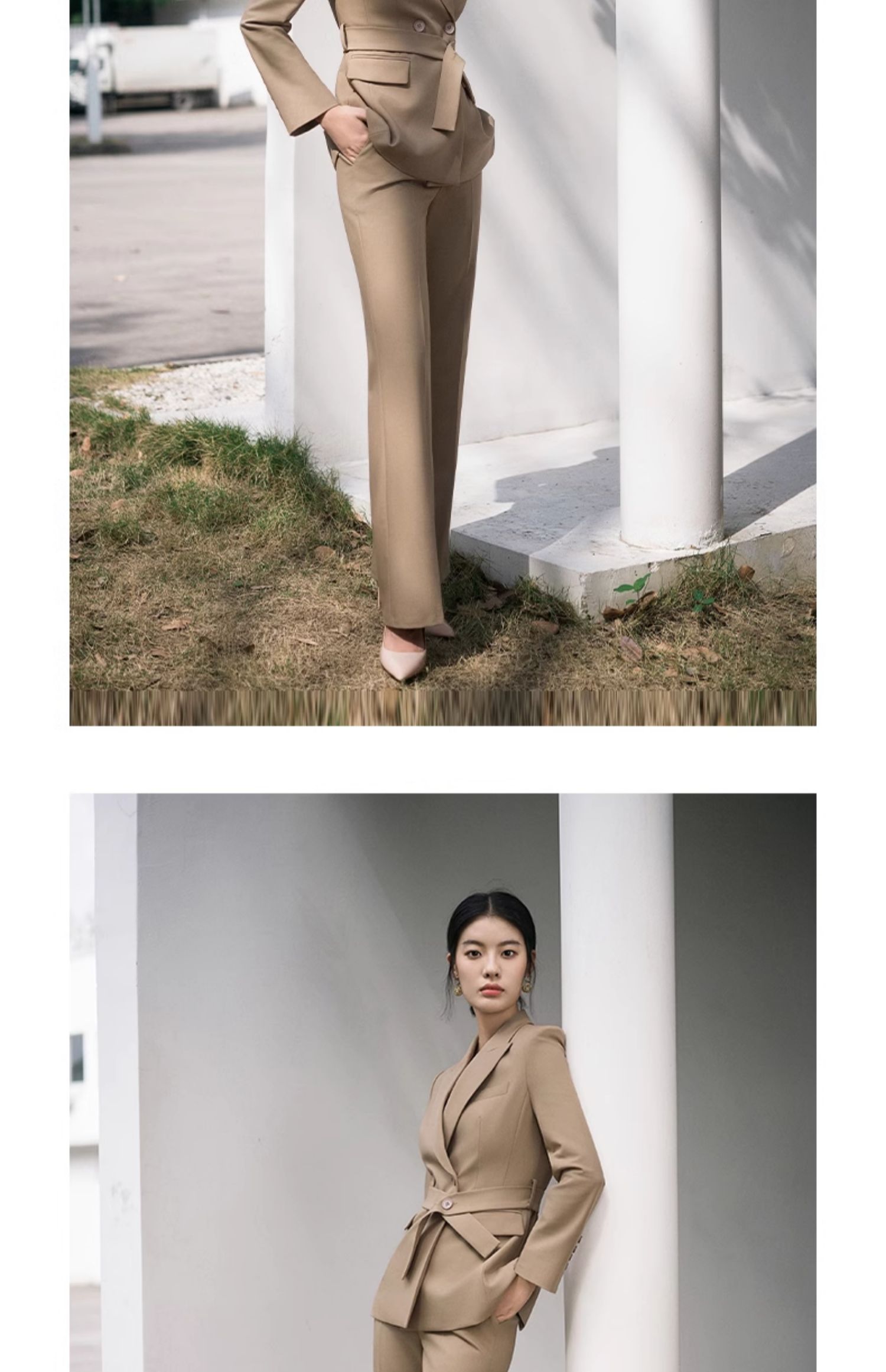 IWY/春秋季新款咖色西装套装修身显瘦正式场合主持人面试微喇裤职业装C14223+P34223