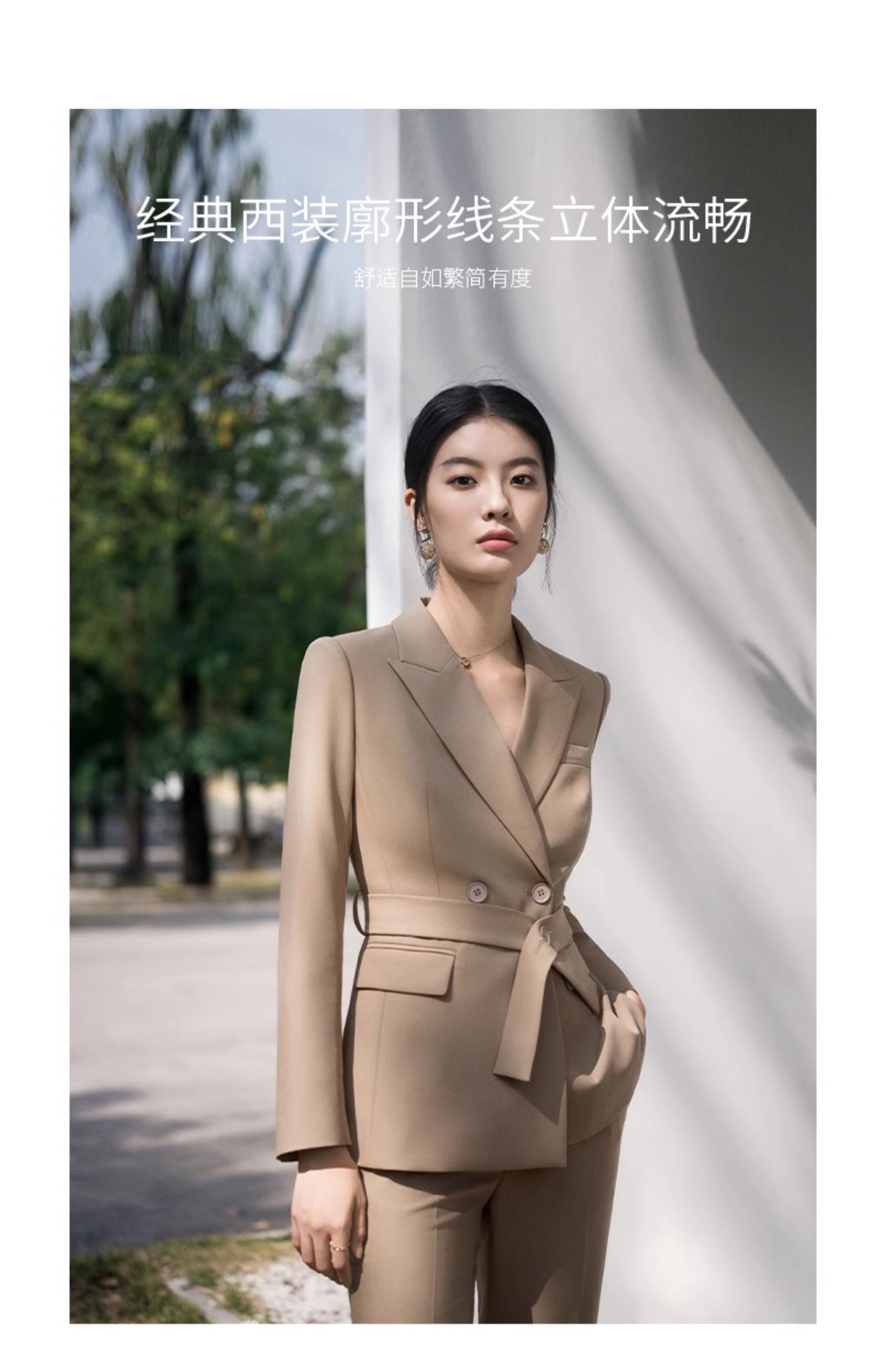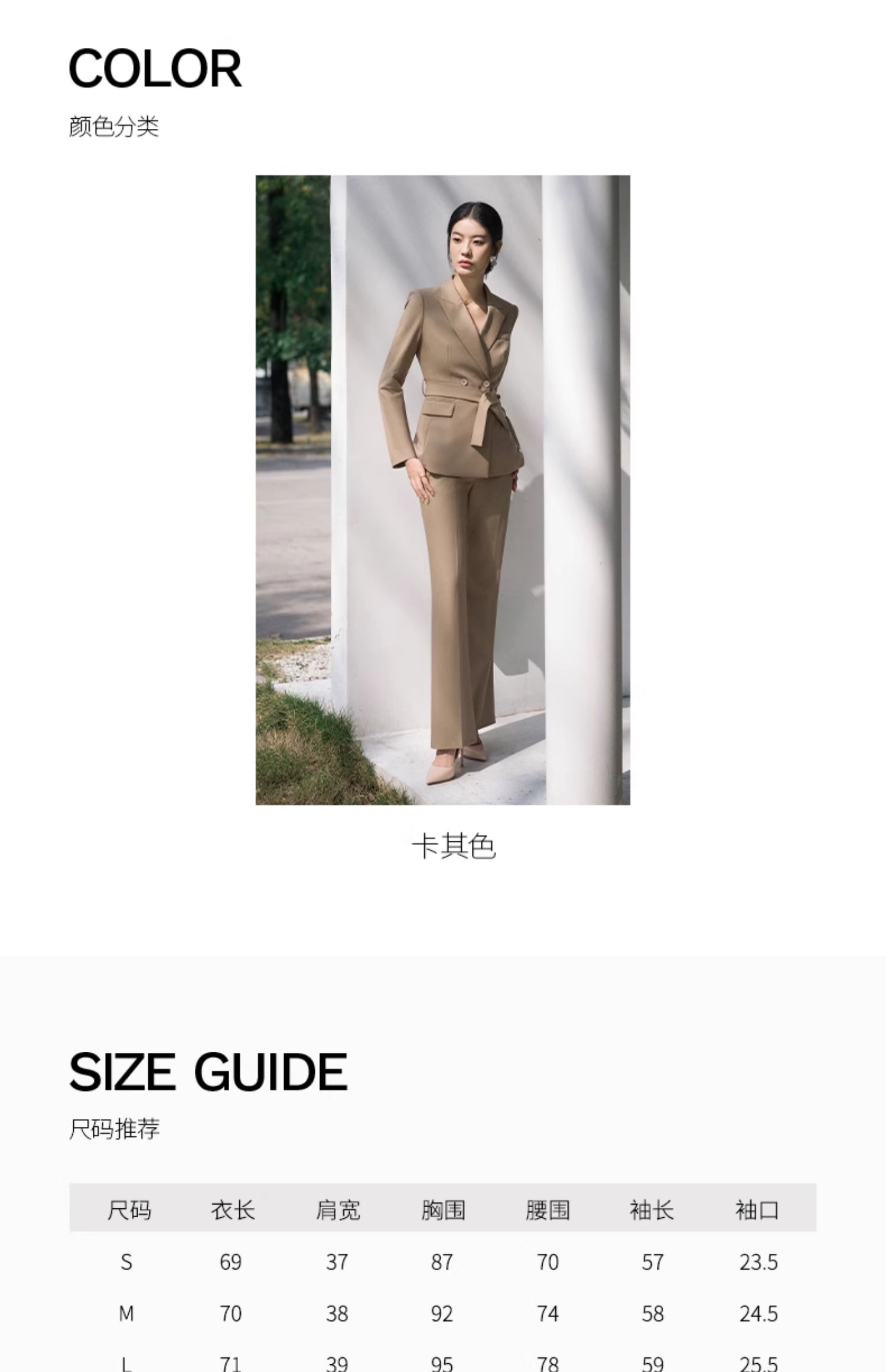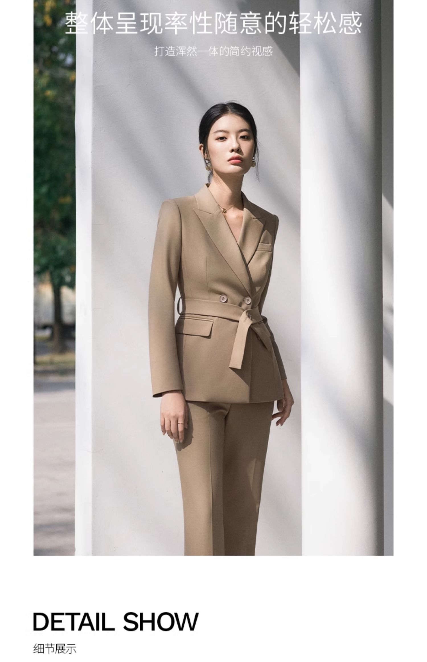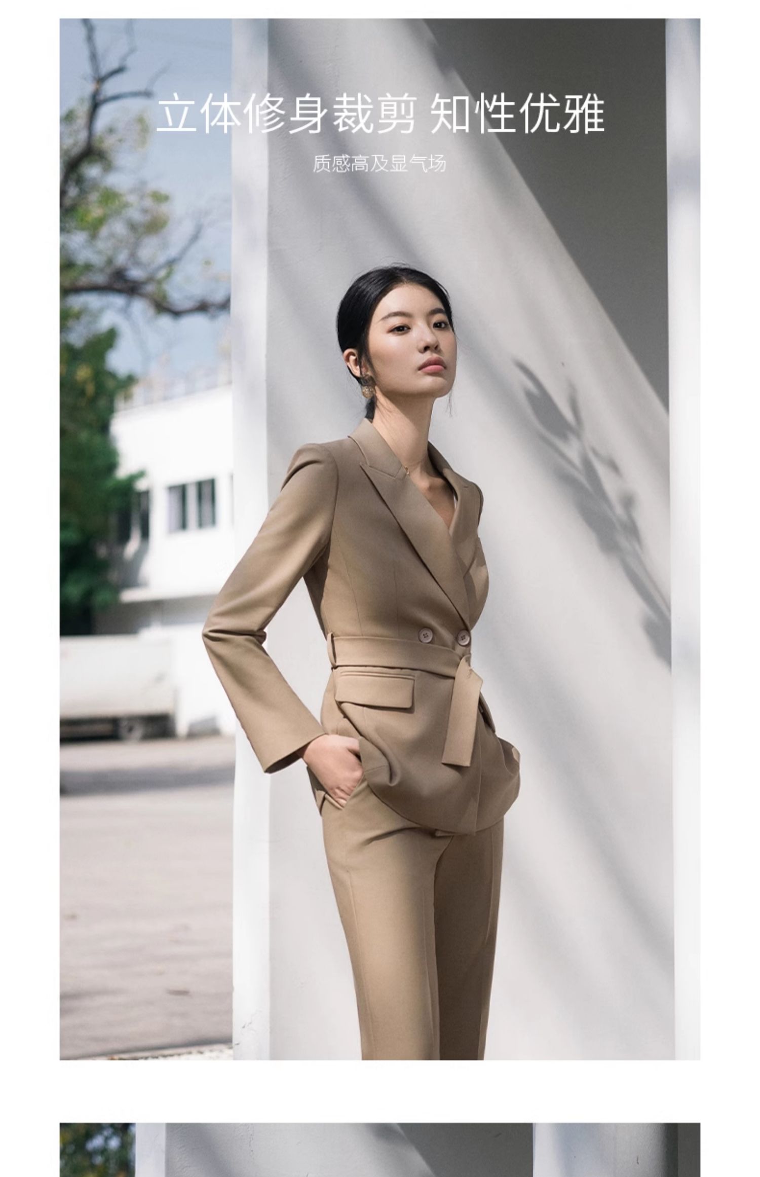 IWY/春秋季新款咖色西装套装修身显瘦正式场合主持人面试微喇裤职业装C14223+P34223