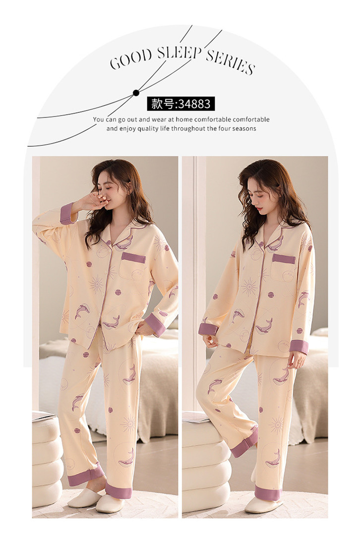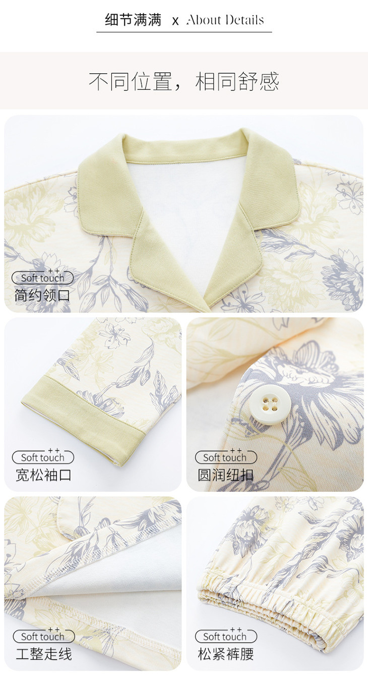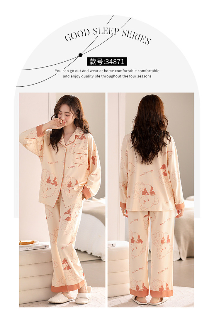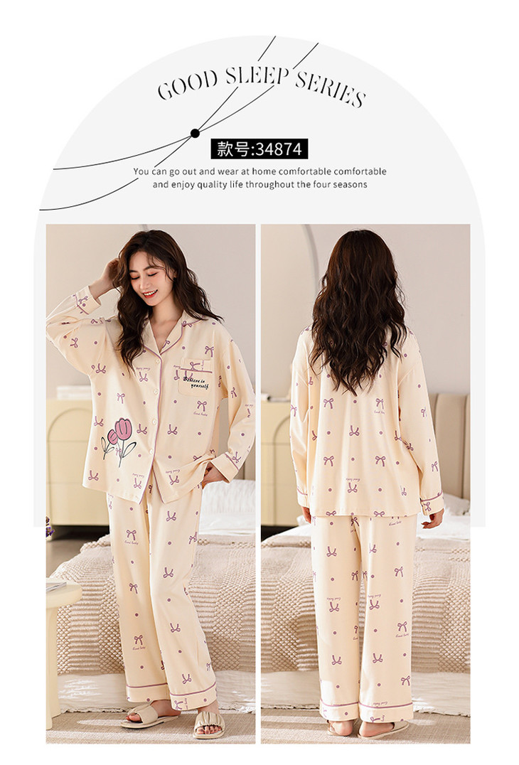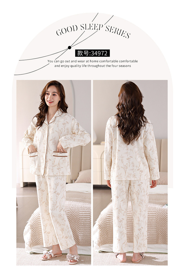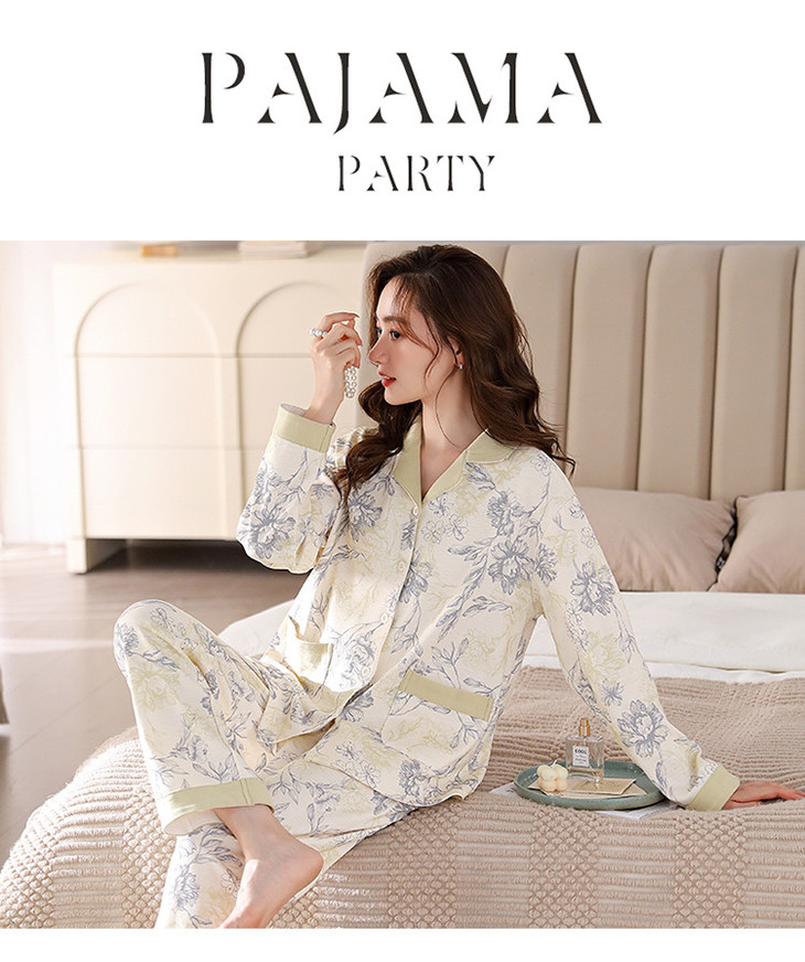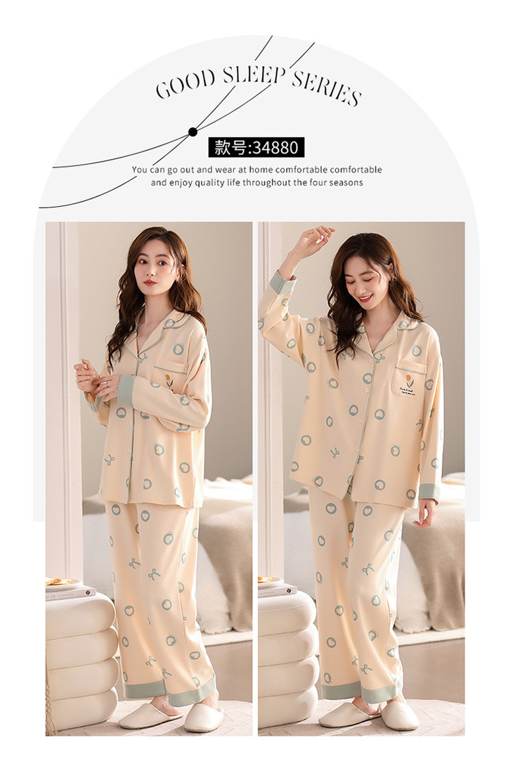 高档纯棉睡衣长袖开衫春秋款家居服大码套装