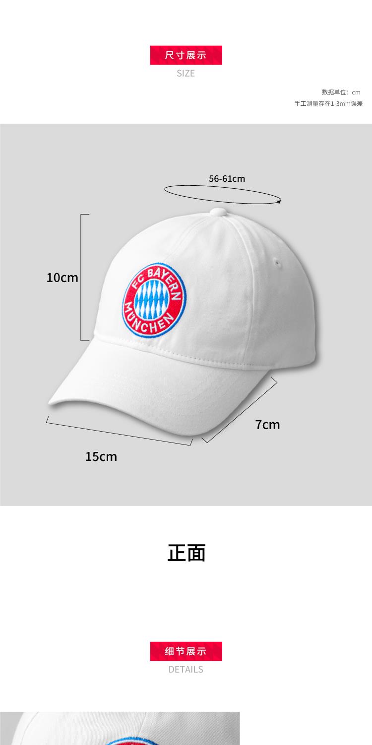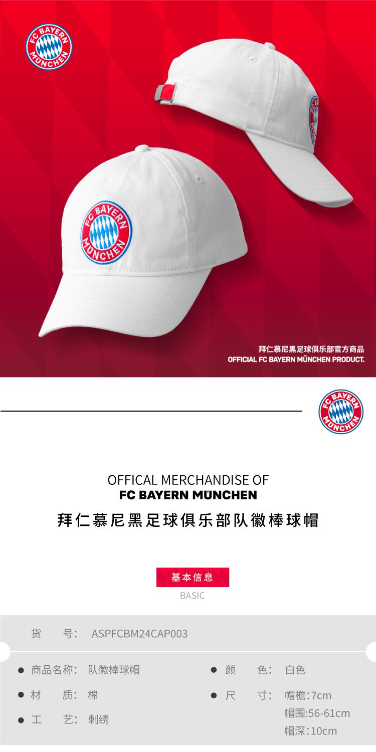【官方正版】拜仁慕尼黑足球俱乐部|白色队徽棒球帽球迷刺绣鸭舌帽