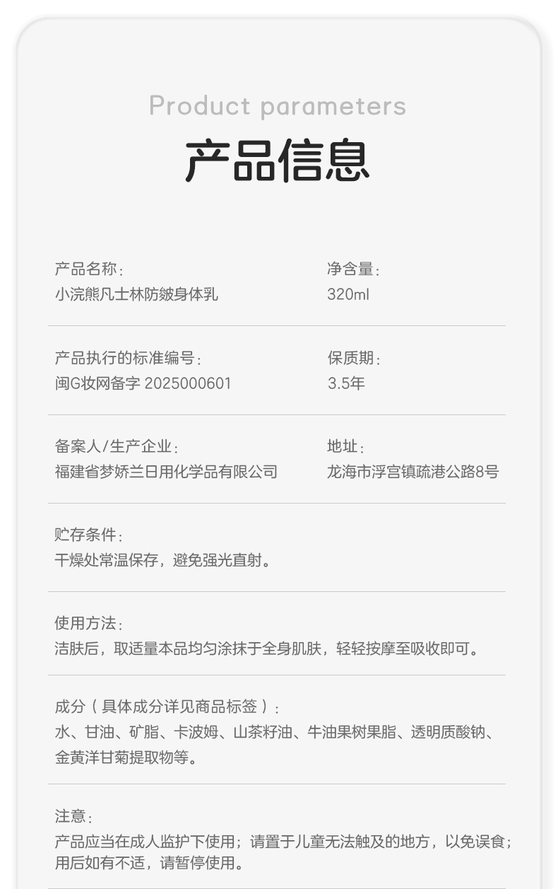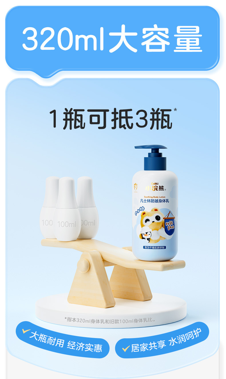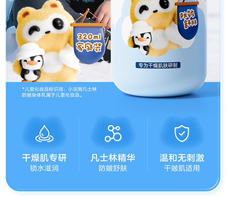 【小浣熊凡士林】儿童身体乳山茶油润肤乳 保湿滋润防鸡皮肤