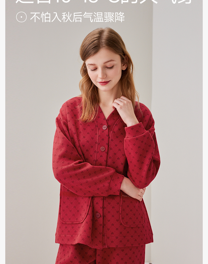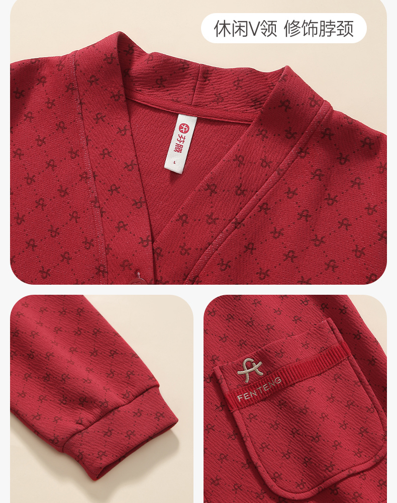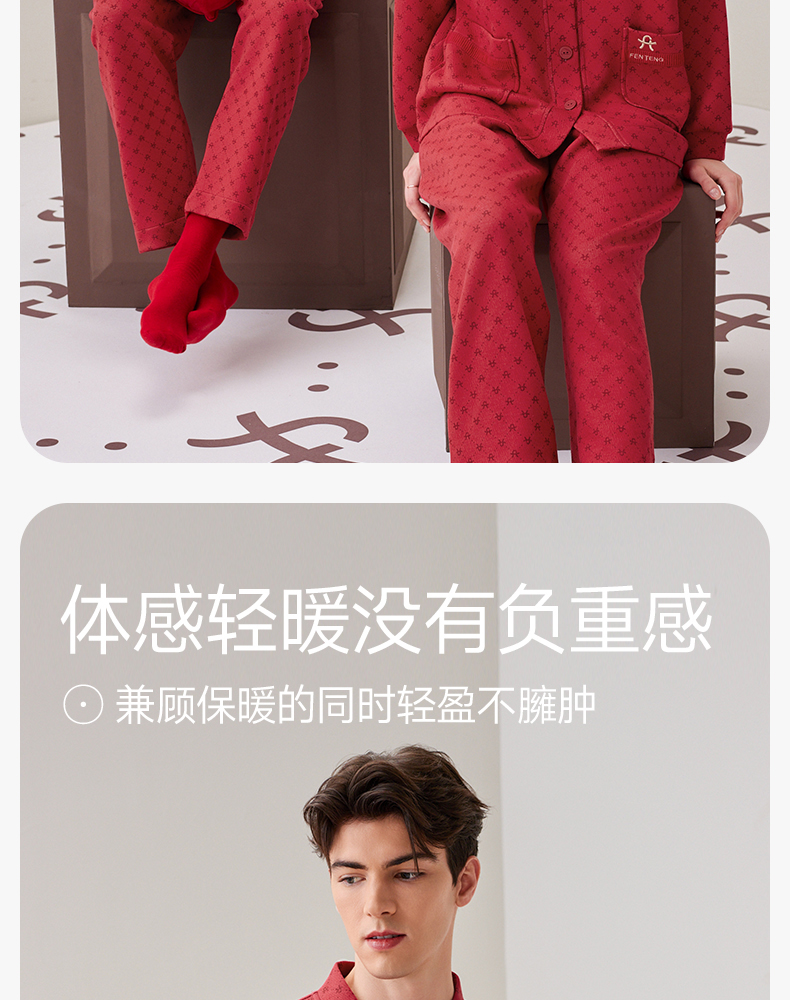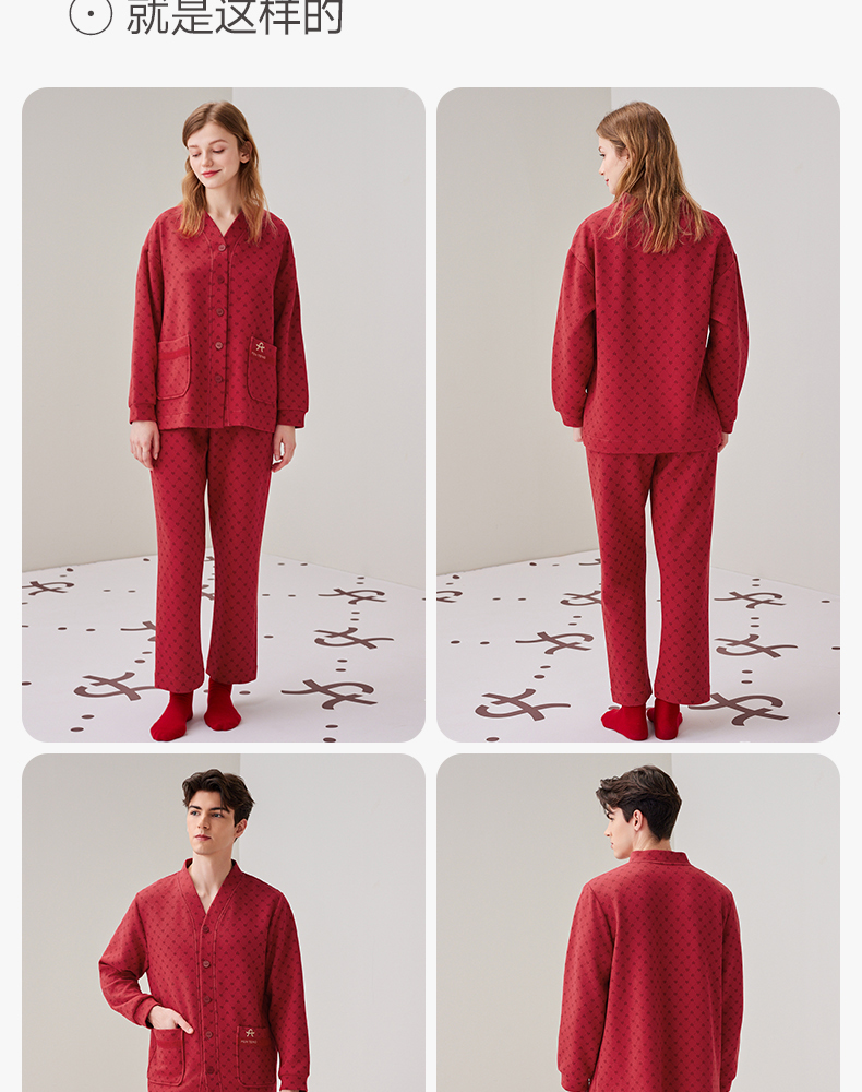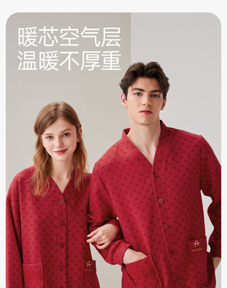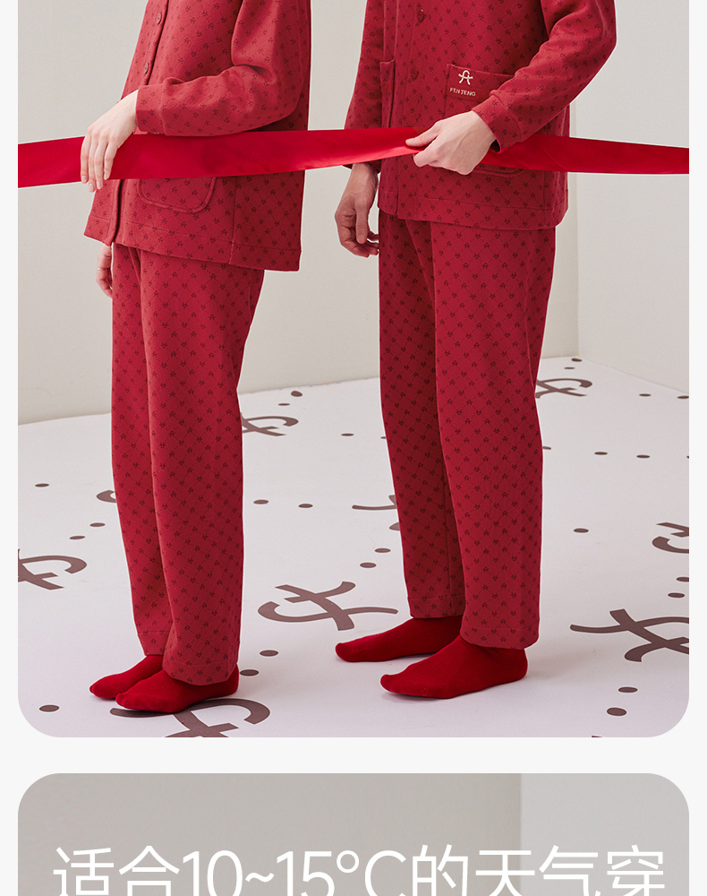 芬腾秋冬纯棉长袖红色本命年情侣家居服套装yc0107004