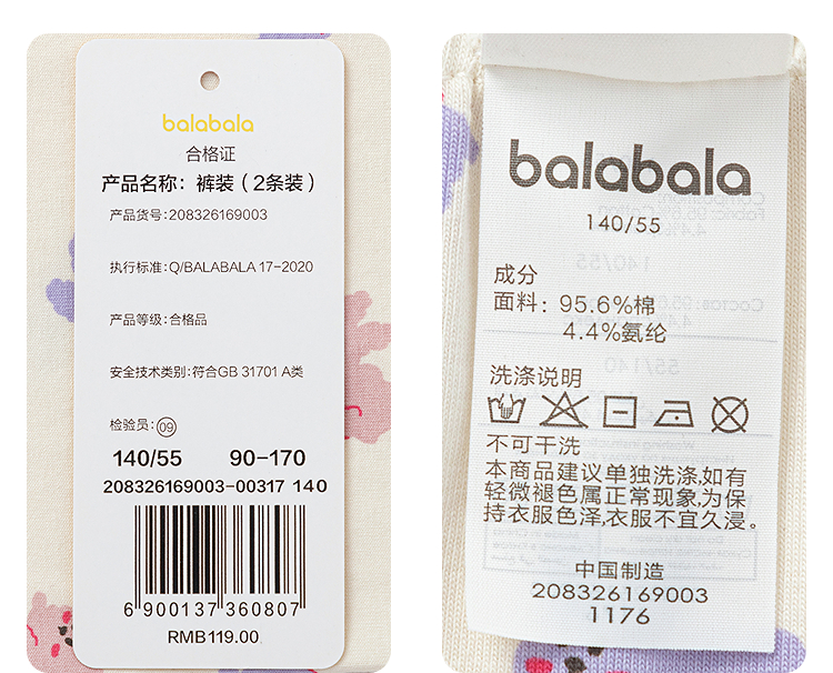 【balaOne】巴拉巴拉女童保暖裤2026新款儿童秋裤打底裤两条装