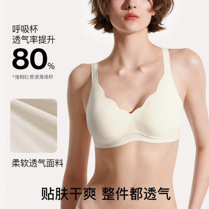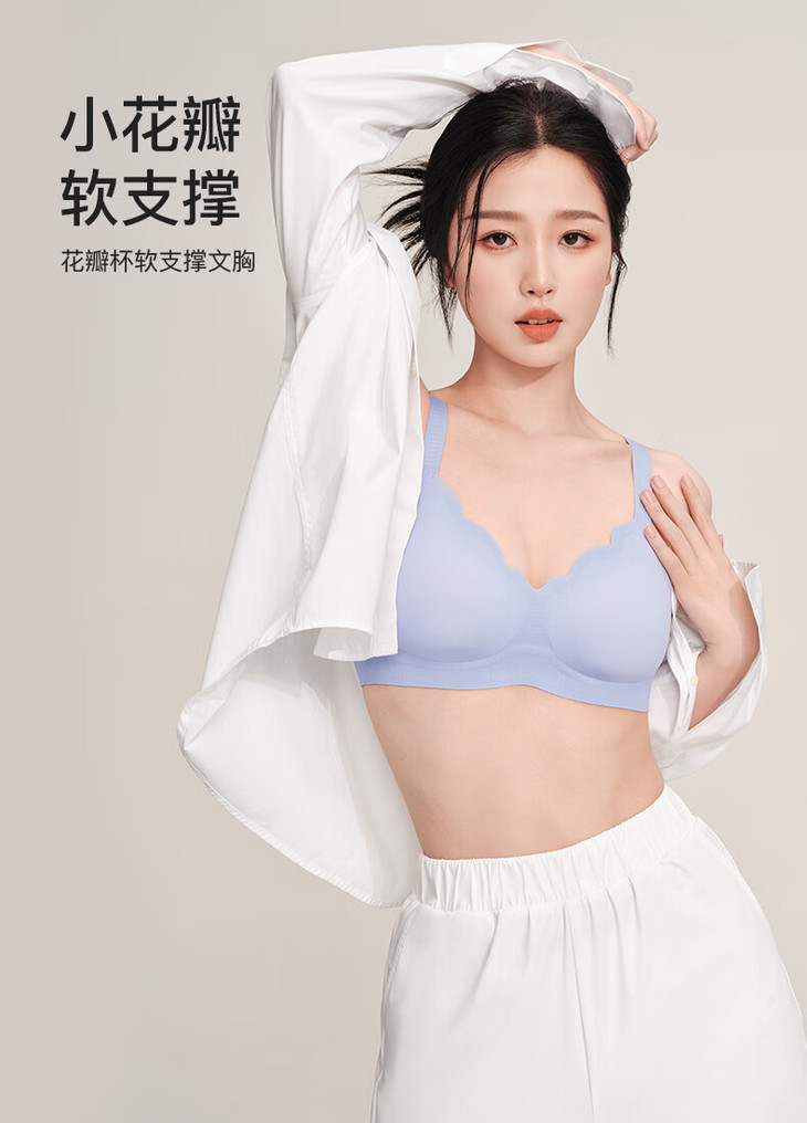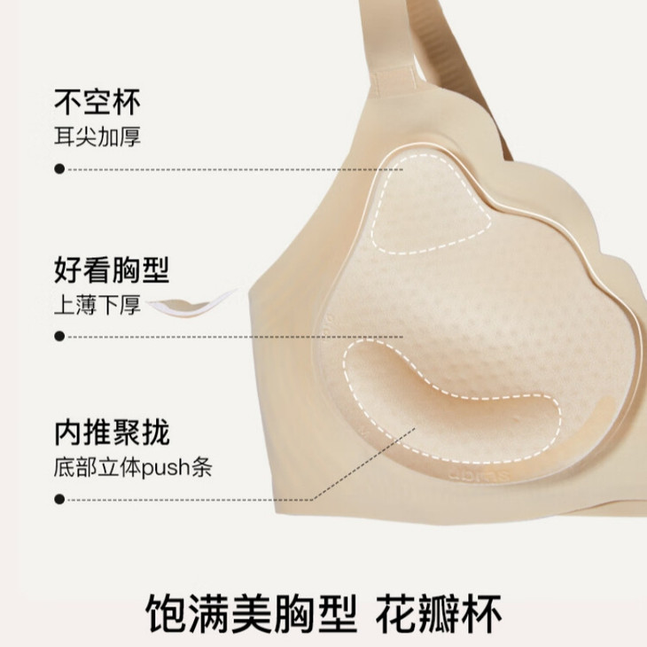 ✅内置半固定升级呼吸花瓣杯, 单只杯垫贴肤面300+可视呼吸孔, 透气率较常规水滴杯提升80%以上, 夏季不闷热; 杯垫表面无孔痕,搭配轻薄衣物不留痕, 穿着轻盈不臃肿; 杯垫上沿花瓣波浪,贴合胸部曲线不易位移, 外下侧弧形凸起加厚,支撑胸部,强化聚拢效果, 杯尖耳子处略微加厚,补充空杯,让胸型更饱满。
