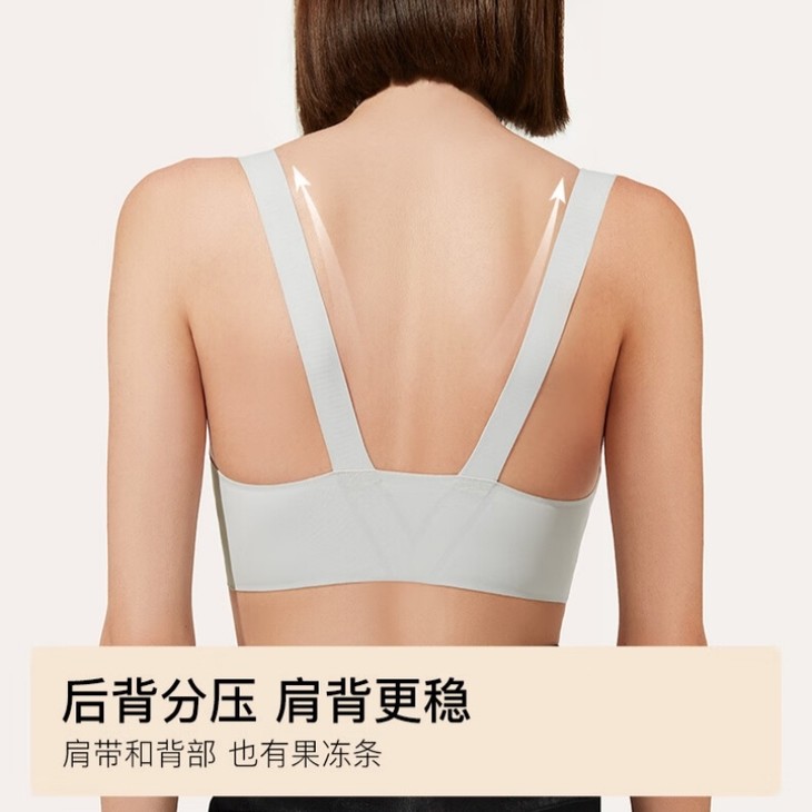 ✅肩带采用本料内夹细密纤薄果冻条, 贴肤舒适的同时让肩带更有力度,提托性更好。