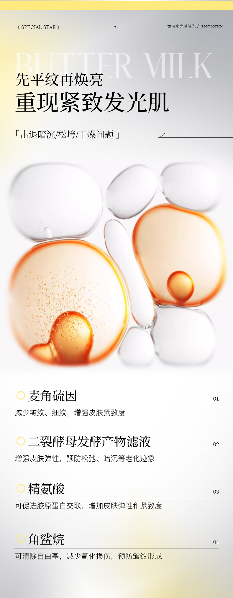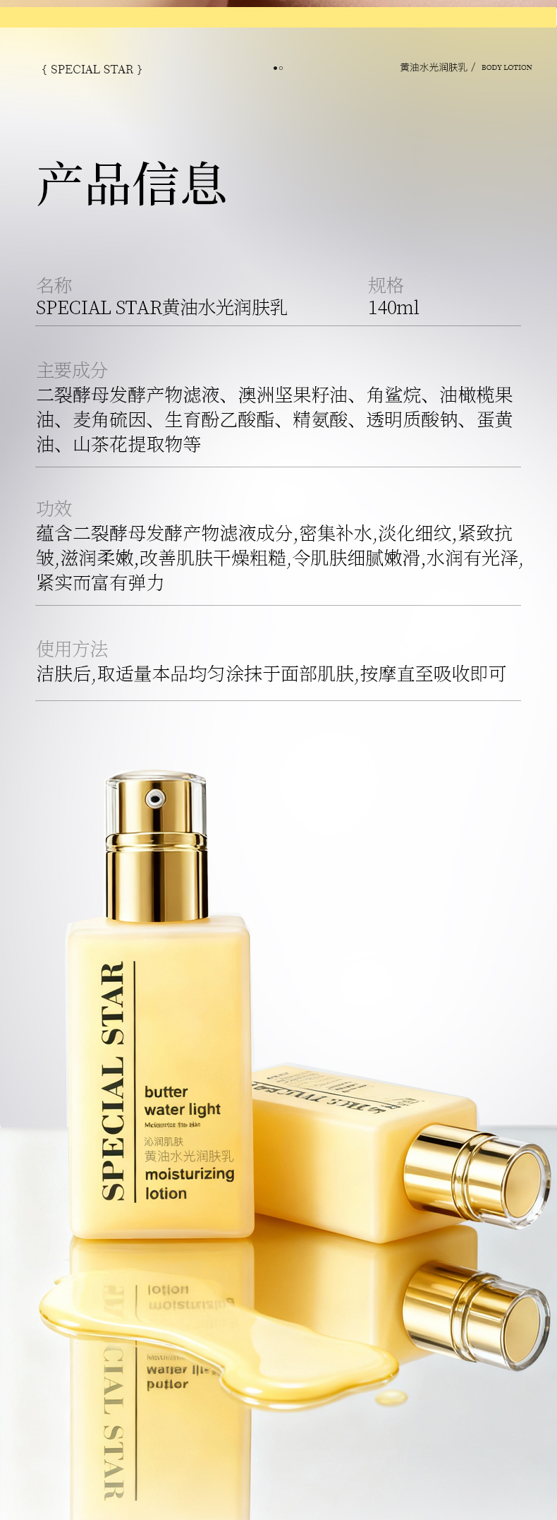 【功效】蕴含二裂酵母发酵产物滤液成分,密集补水,淡化细纹,紧致抗皱,滋润柔嫩,改善肌肤干燥粗糙,令肌肤细腻嫩滑,水润有光泽,紧实而富有弹力
