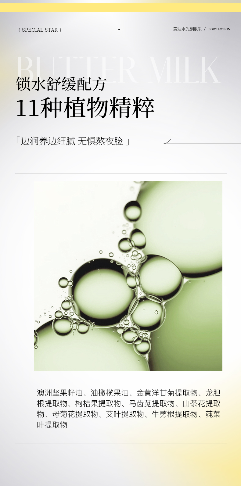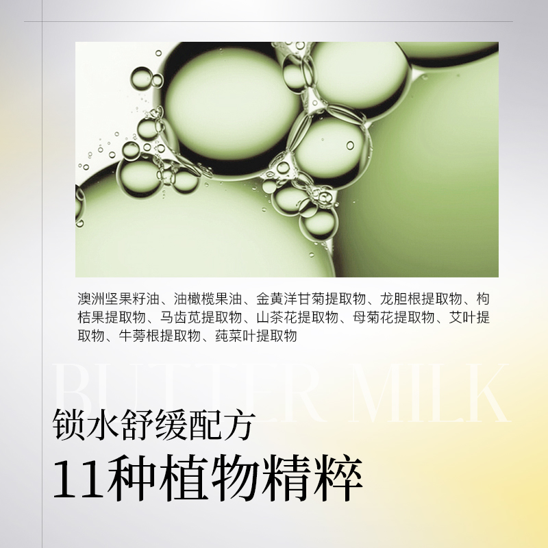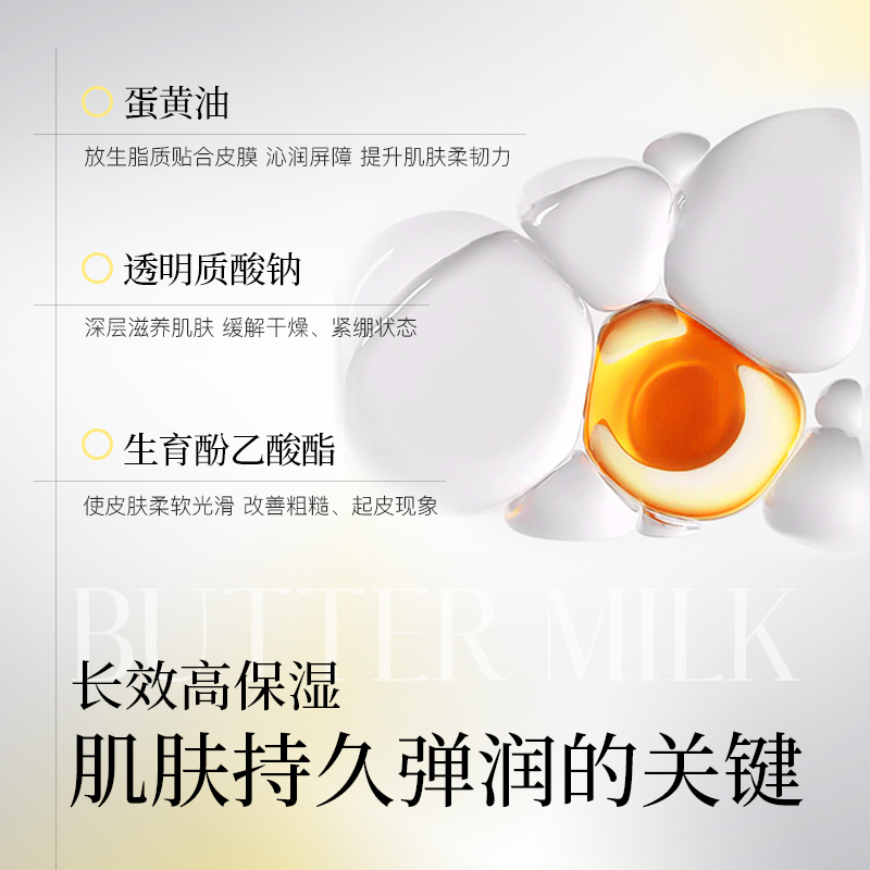【主要成分】二裂酵母发酵产物滤液、澳洲坚果籽油、角鲨烷、油橄榄果油、麦角硫因、生育酚乙酸酯、精氨酸、透明质酸钠、蛋黄油、山茶花提取物等