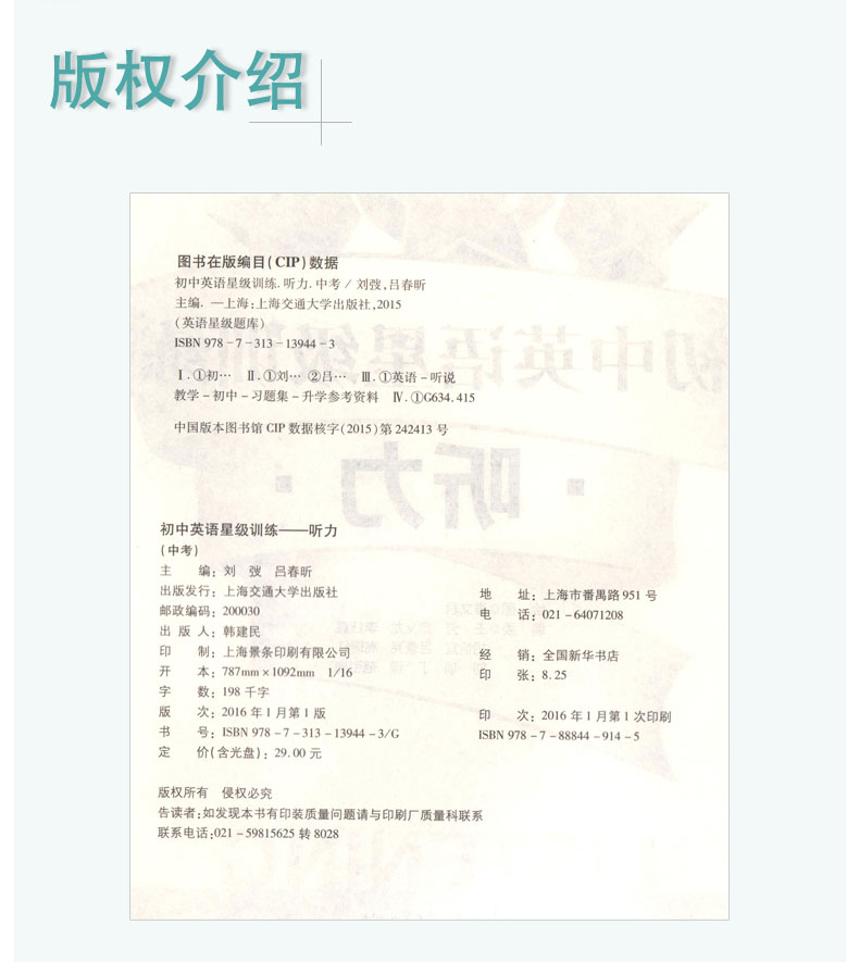 交大之星 初中英语星级训练 听力 中考/九年级 9年级英语听力专项练习 中考新题型 上海初中英语题库听力训练 上海交通大学出版社