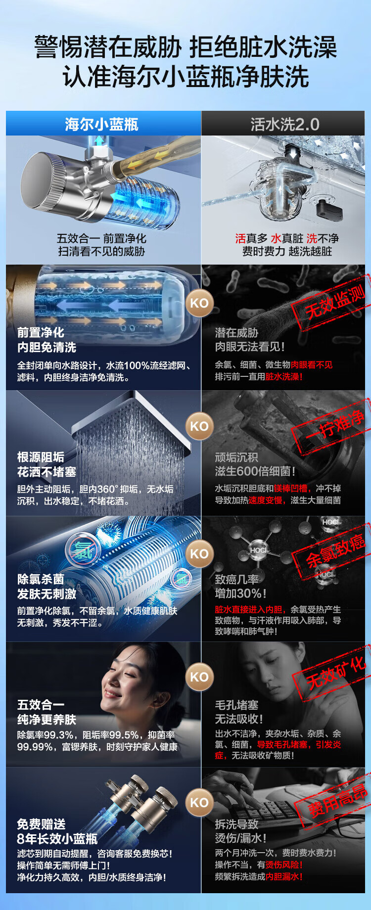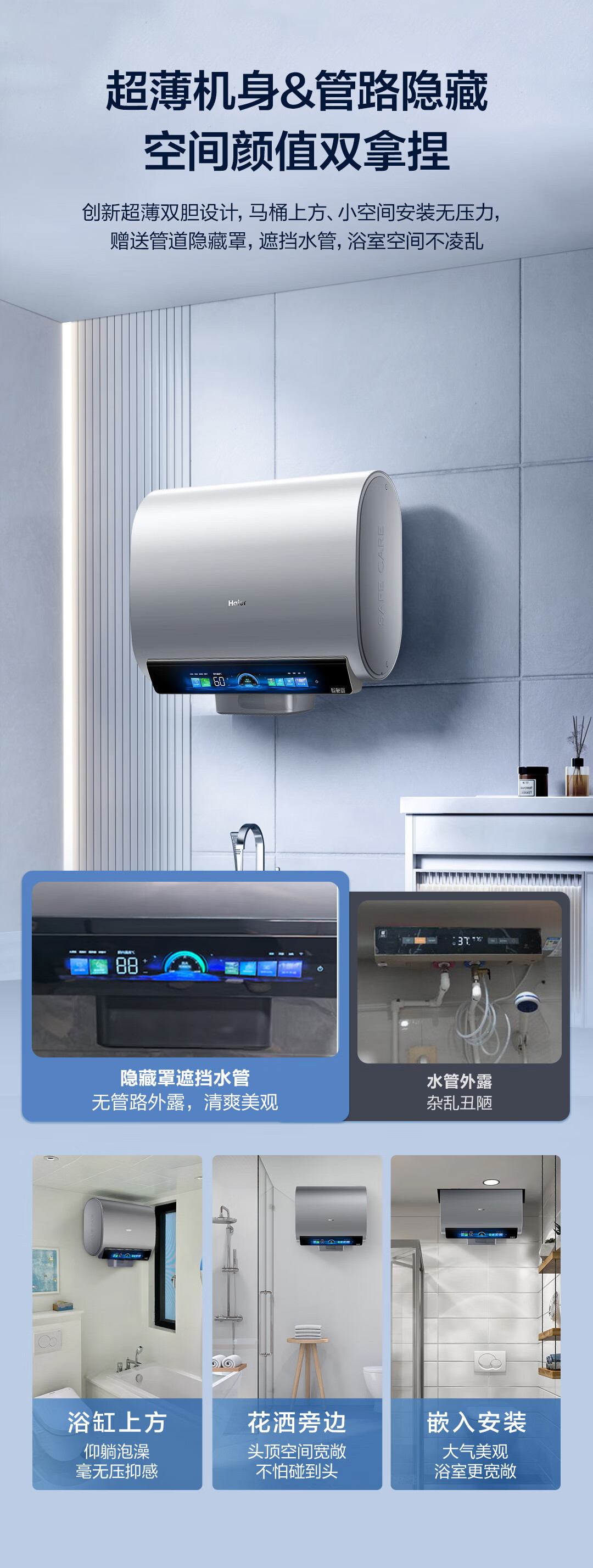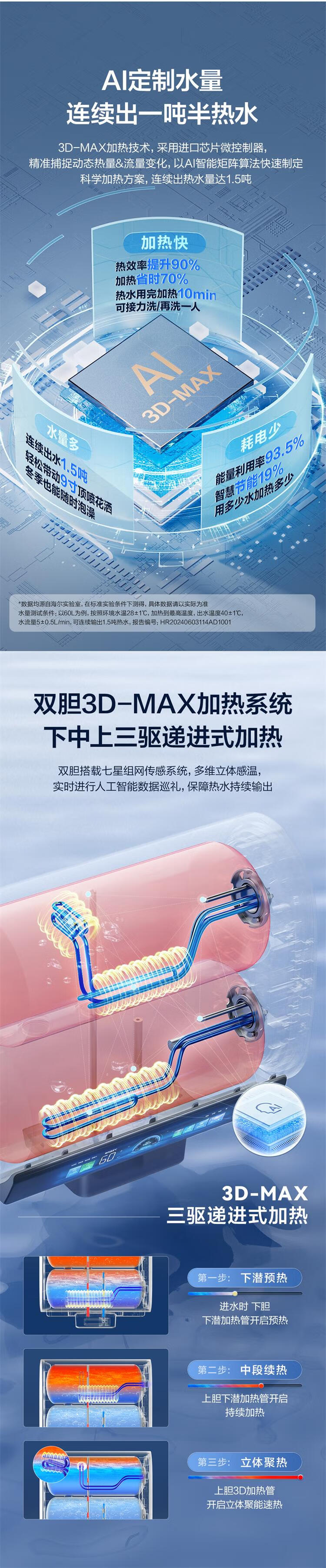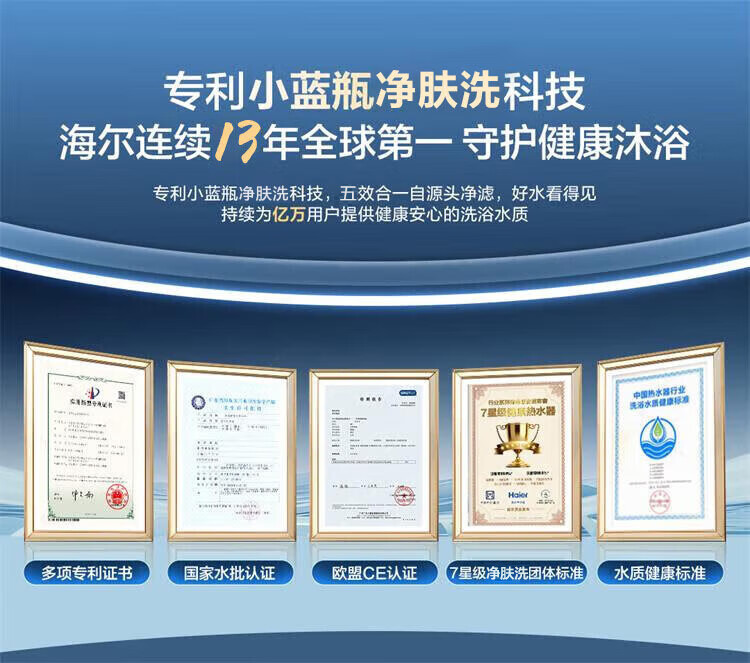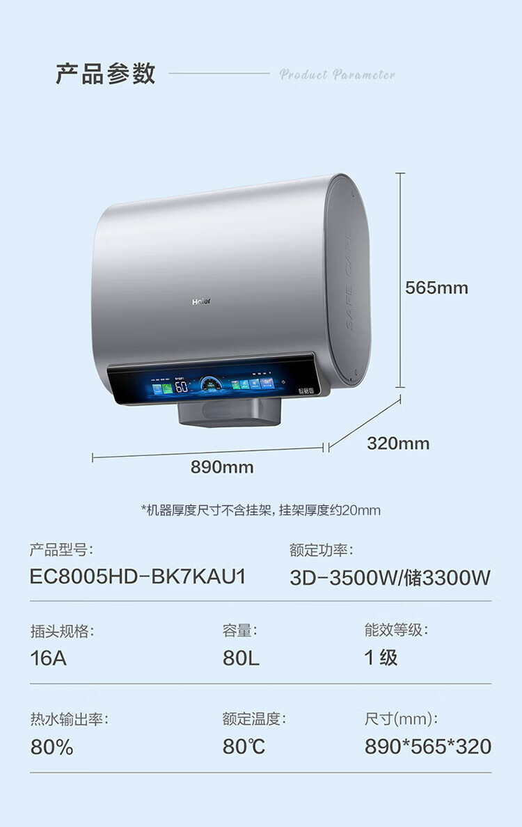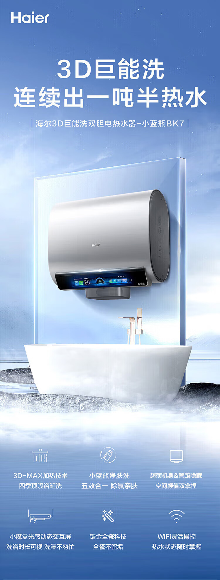 海尔(Haier)麦浪套系电热水器 国家补贴双胆扁桶80升BK7 富锶小蓝瓶净肤洗 3D巨能洗3300W速热家用一级能效