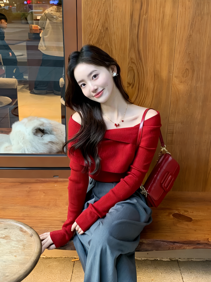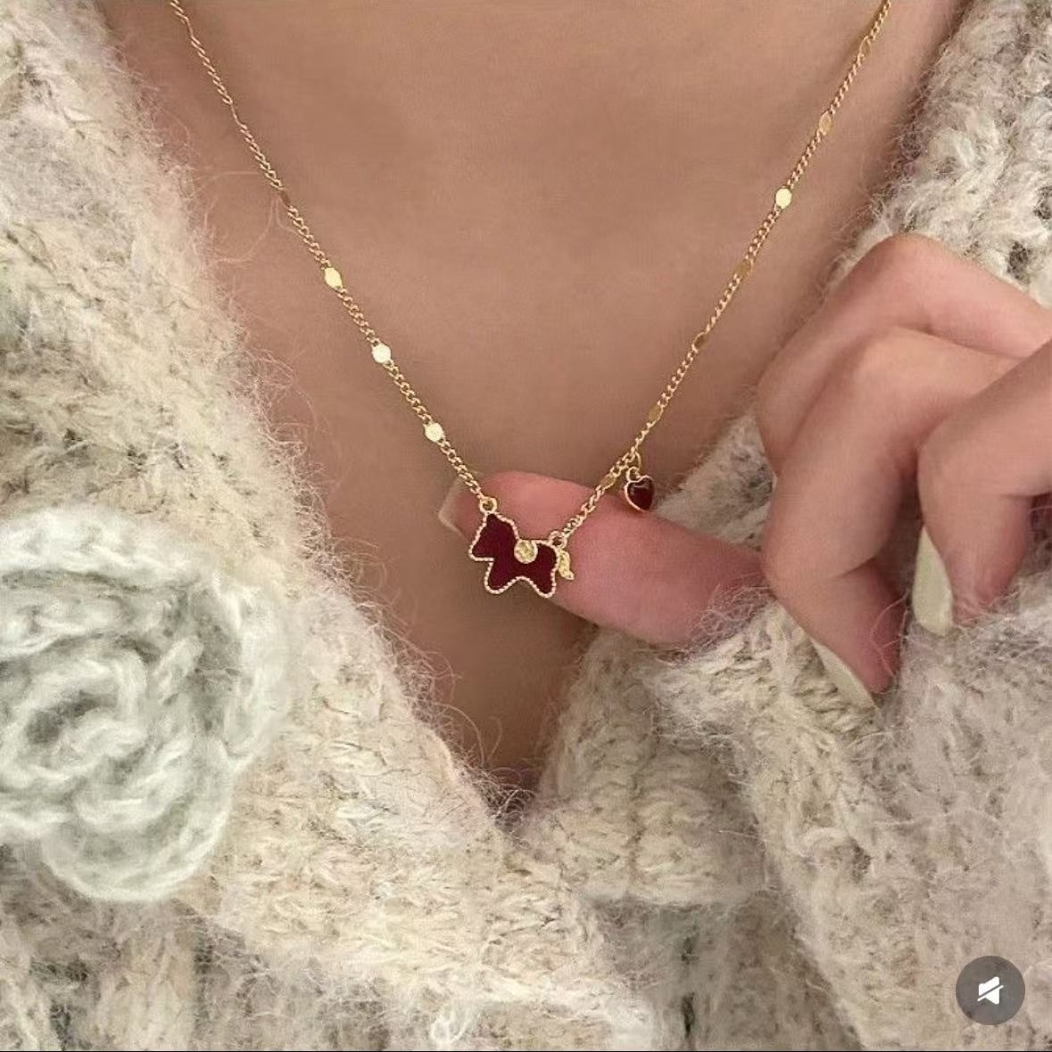 「红色项链」真的好衬人!好显白!! 一戴上,平平无奇的素毛衣,立马变精致了~~ 简直是点缀穿搭的“小心机”!