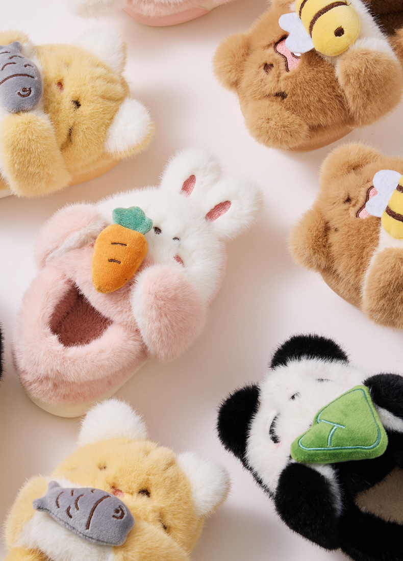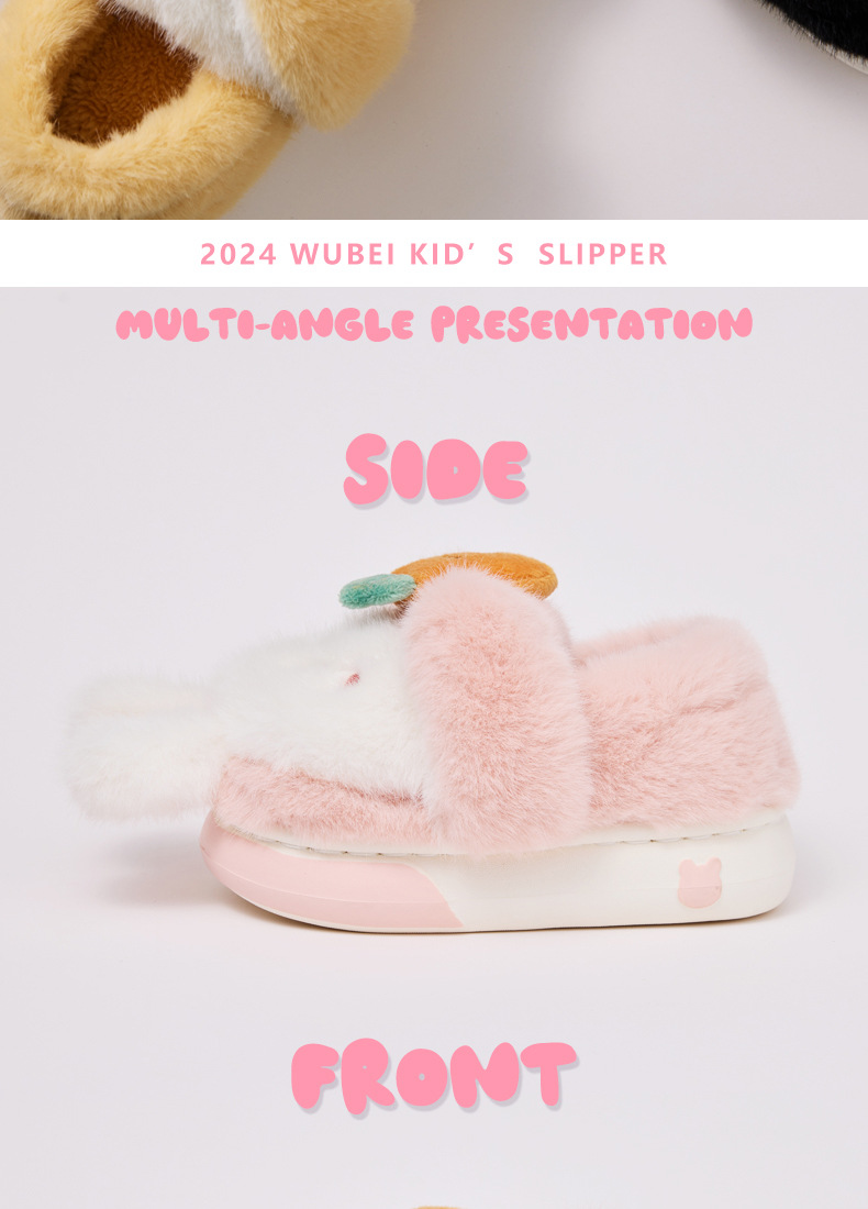 【敲可爱❗️锁温保暖】新款儿童棉拖鞋冬季卡通可爱女生毛绒立体兔子小童幼儿园包跟拖鞋。ja