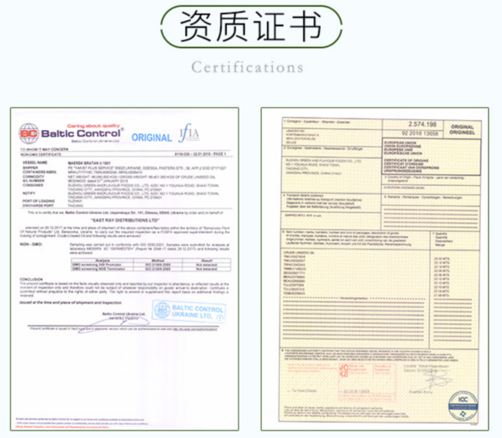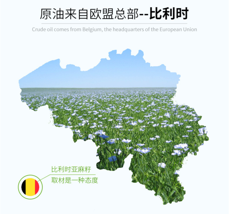 绿香远亚麻油的亚麻酸含量高达50%以上 是市面上大多数油的5-10倍 亚麻籽油属于优质食用油,适合家庭各类人群 绿香远亚麻油原油来自欧盟总部比利时 食品安全检测严格,生态环境良好 比利时受沿岸流经的北大西洋暖流的影响 属温带海洋性气候,全年温和多雨,气候湿润 产出的亚麻籽富含Ω-3脂肪酸,非常适合榨油